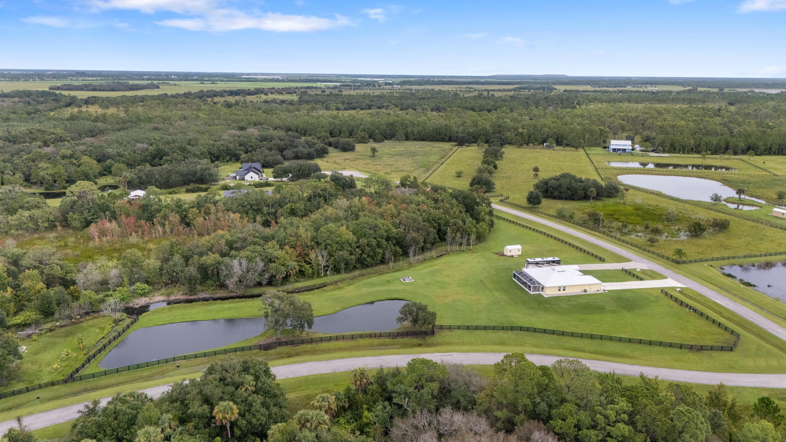 Here is a pristine 2022 custom CBS home situated on 5 acres in the upscale ranchette community of Bridlewood Ranches. This 3-bedroom, 2.5-bath residence spans over 2300sqft under air, boasting marble floors throughout, a formal dining room and a quartzite-finished open kitchen with island just off the home's formal living area. The expansive master suite, approximately 700sqft, features a walk-in closet, dual vanities, a soaking tub, and a marble stone shower. On the guest side of the home, you'll find the 2nd and 3rd oversized bedrooms, 1 & 1/2 bath and laundry room. Enjoy the peaceful country sunsets and wildlife viewing, including deer and turkey, from your new screened porch. Also a separate RV parking area with hookups and garden shed is included.