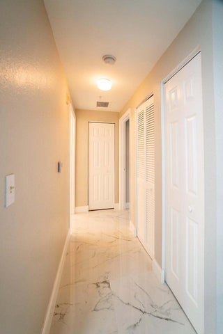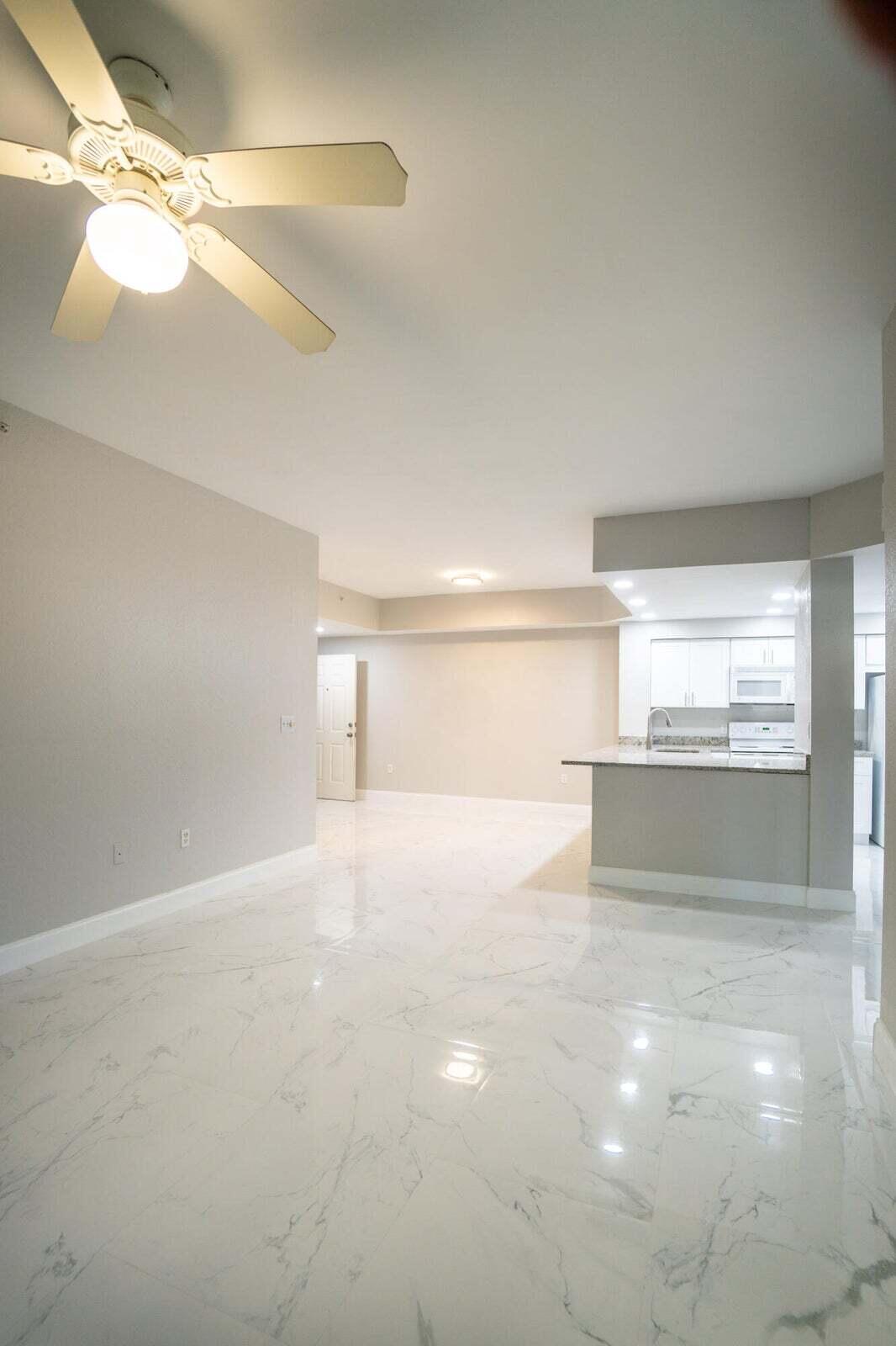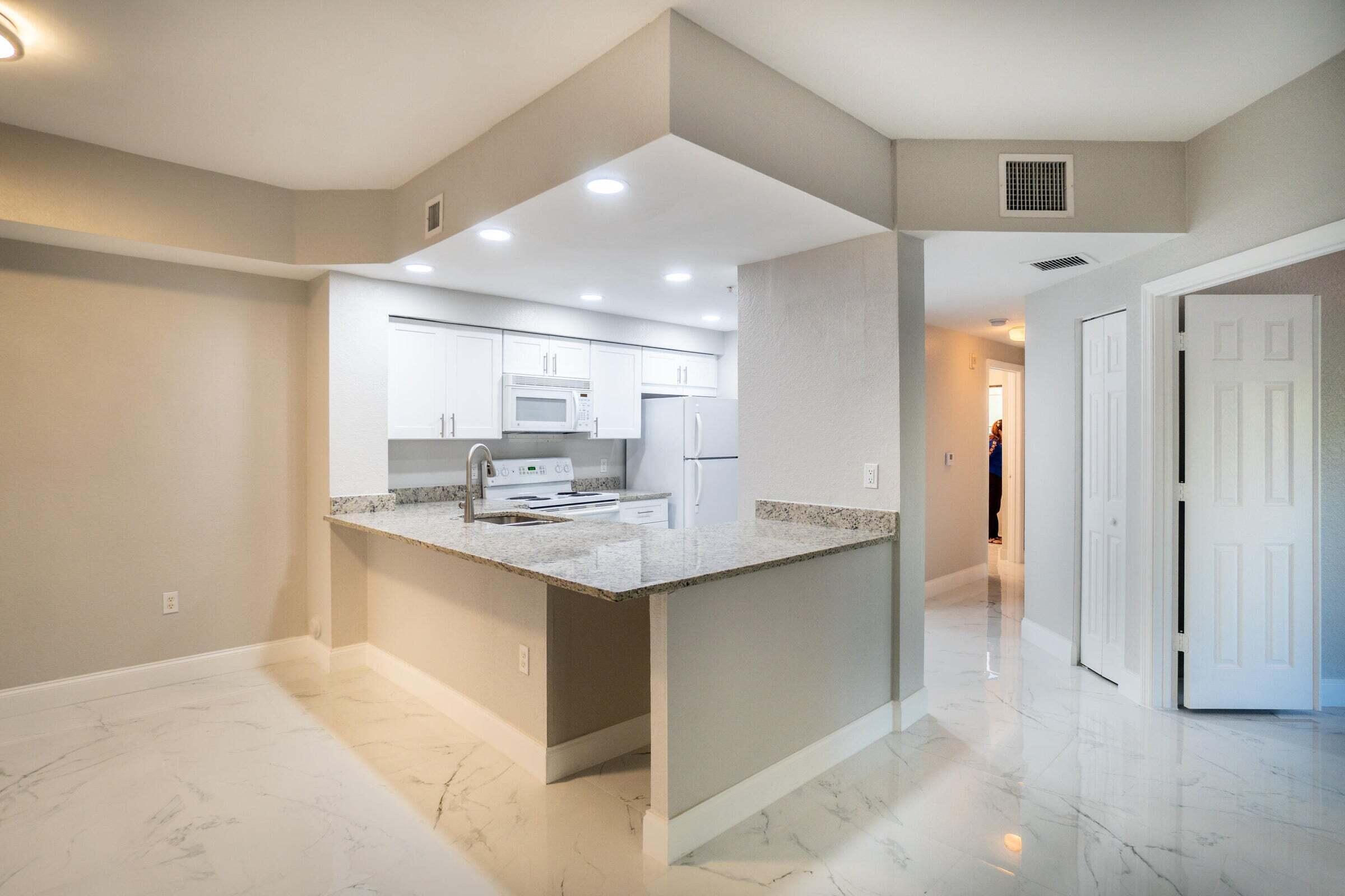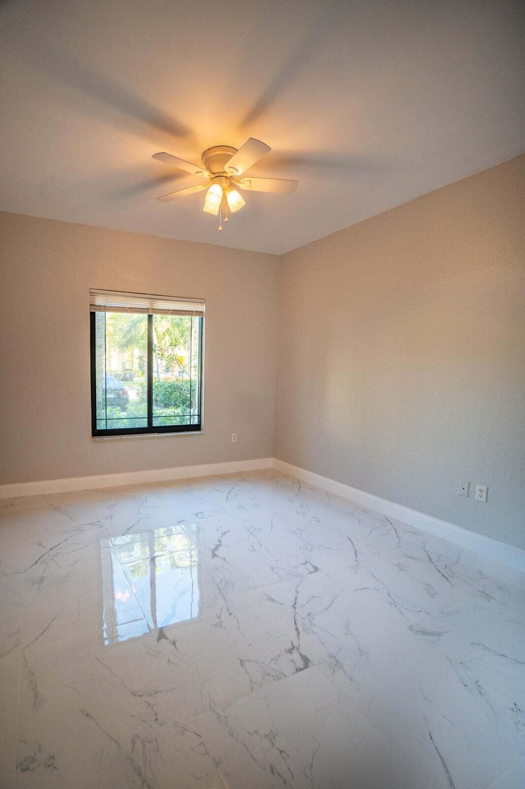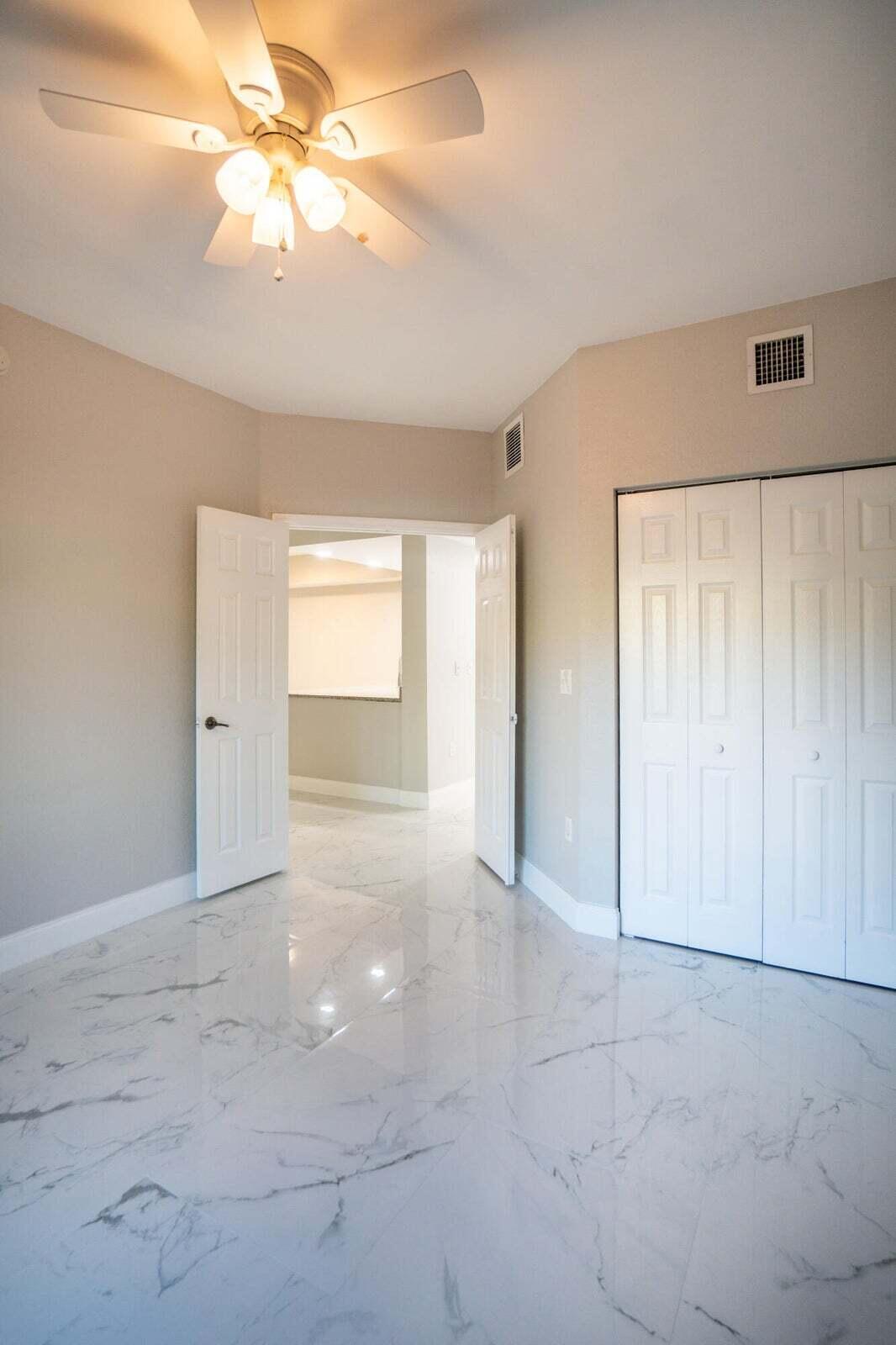 Gorgeous First floor unit with White tile and an off white freshly painted. Kitchen has brand new soft close cabinets with granite countertops. Full size washer and dryer with shelving and clothes rack in separate utility room. 3 Bedrooms with ceiling fans. Owners Suite and third bedroom both have walk in closets. Also all doors and windows are full hurricane impact. The community has a pool, spa, gym, library and a tennis court. This condo is close to Gardens Mall, Downtown Gardens and i95. Credit Score must be a 650 minimum required from the HOA