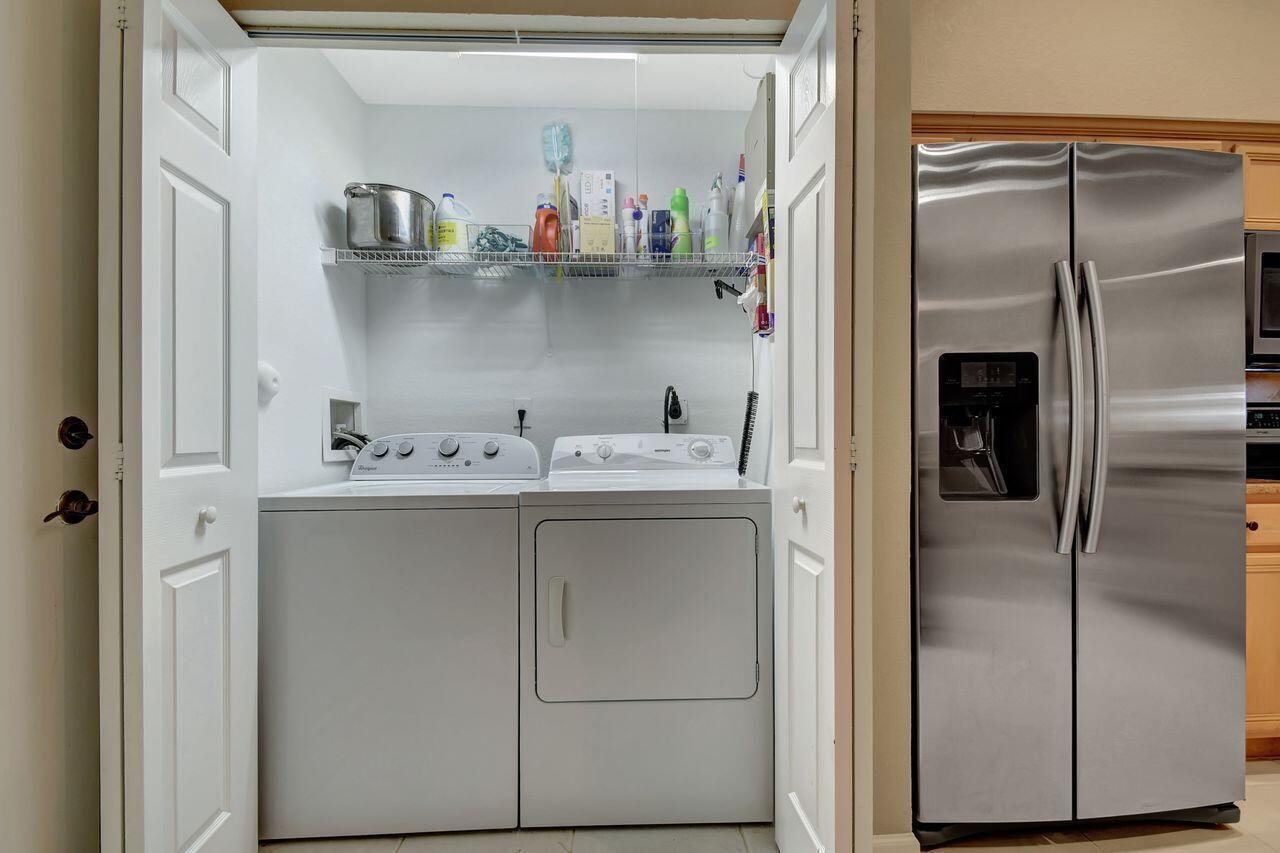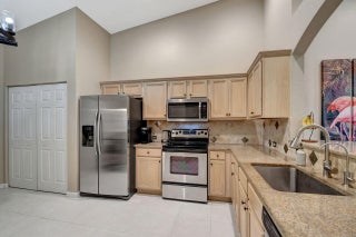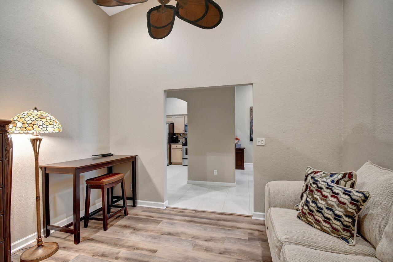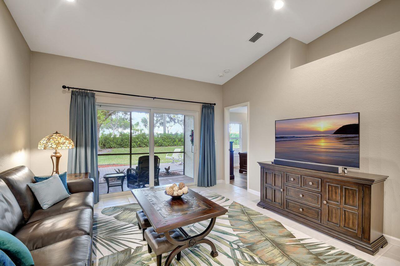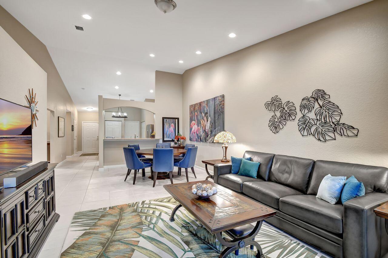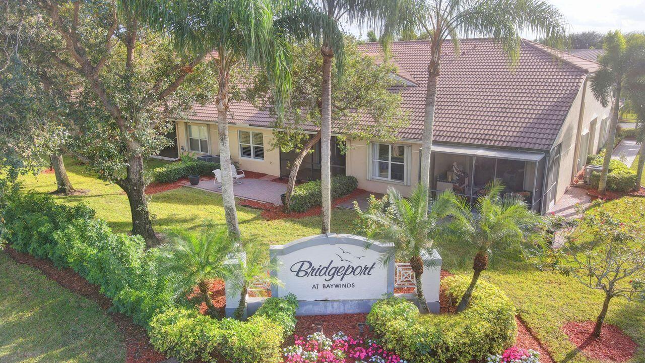 Impact windows & slider (2023), newer A/C, water heater & disposal! Inviting 2BR/2BA villa with den and 1-car garage in Bridgeport at Baywinds. Features include neutral tile floors, open kitchen with tumbled marble backsplash, upgraded light wood cabinetry, separate dining area, and den that can serve as a 3rd bedroom. Vinyl plank floors in bedrooms, fresh paint, plantation shutters, and a screened patio with extended paver area overlooking a serene backyard. Just steps to the clubhouse and pools! Resort-style amenities, cable w/ DVR, internet, landline, ADT, and 24/7 manned gate. Near shopping, dining, beaches, golf, downtown WPB & PBI airport.