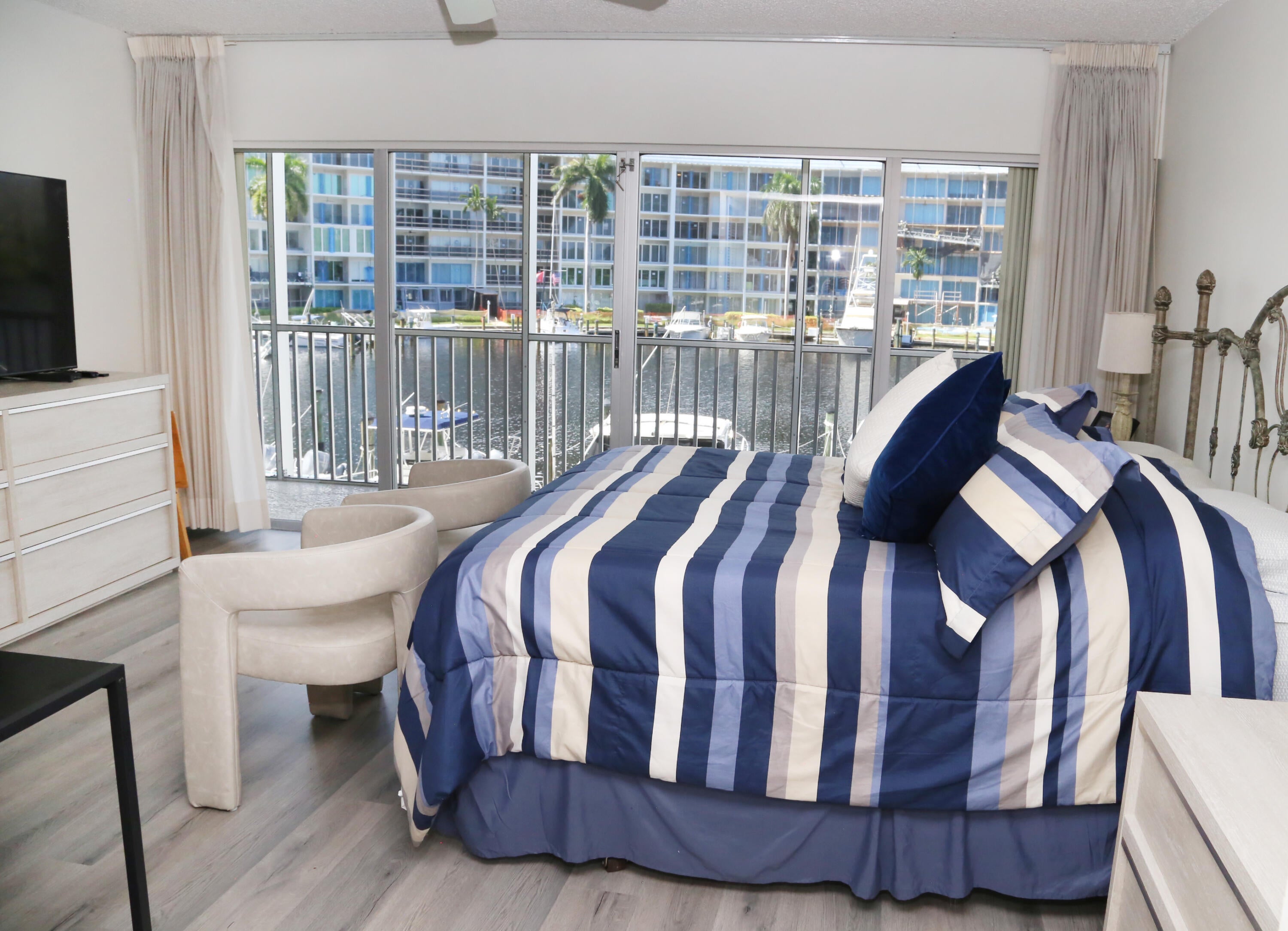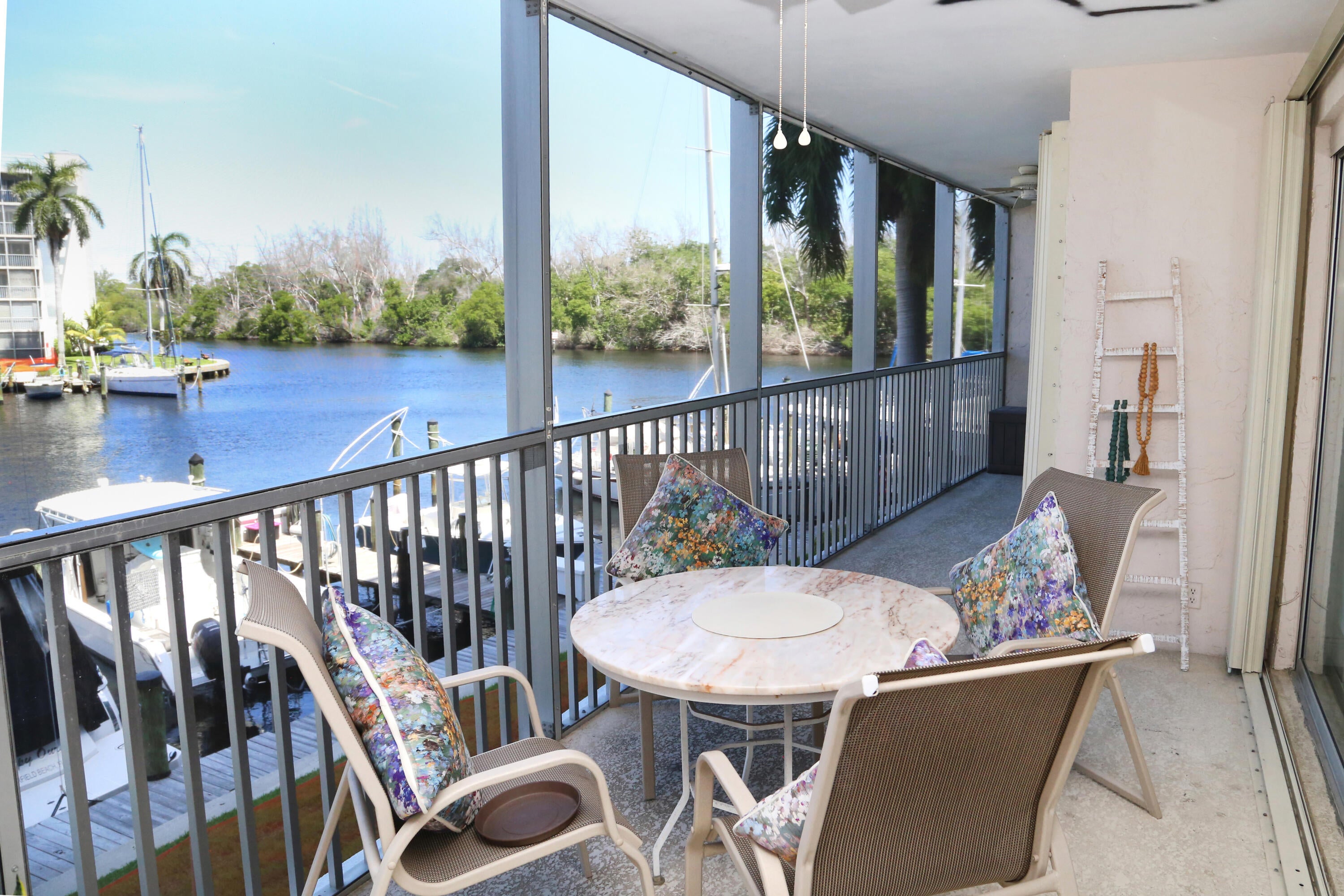 Beautiful 2 bedroom furnished waterfront unit with a truly striking view of long water and Marinas. Enjoy the views from the large balcony that extends from living room to the primary suite. Watch the boats go by on their way to the nearby intercoastal. Light and bright condo is clean and well kept. New floors and comfortable furnishings throughout. Kitchen is fully equipped and includes washer and dryer in the unit. Many shops and restaurants within walking distance. Hillsboro Cove is an active 55+ waterfront community with all the amenitities to enjoy your stay; clubhouse, gym, library, pool, BBQ grills kayak storage, jet ski dry dock. Walking distance to the sandy beach, Sullivan Intercoastal Splash Park, supermarket, drugstores, beauty salons, restaurants and more! Book a showing tod