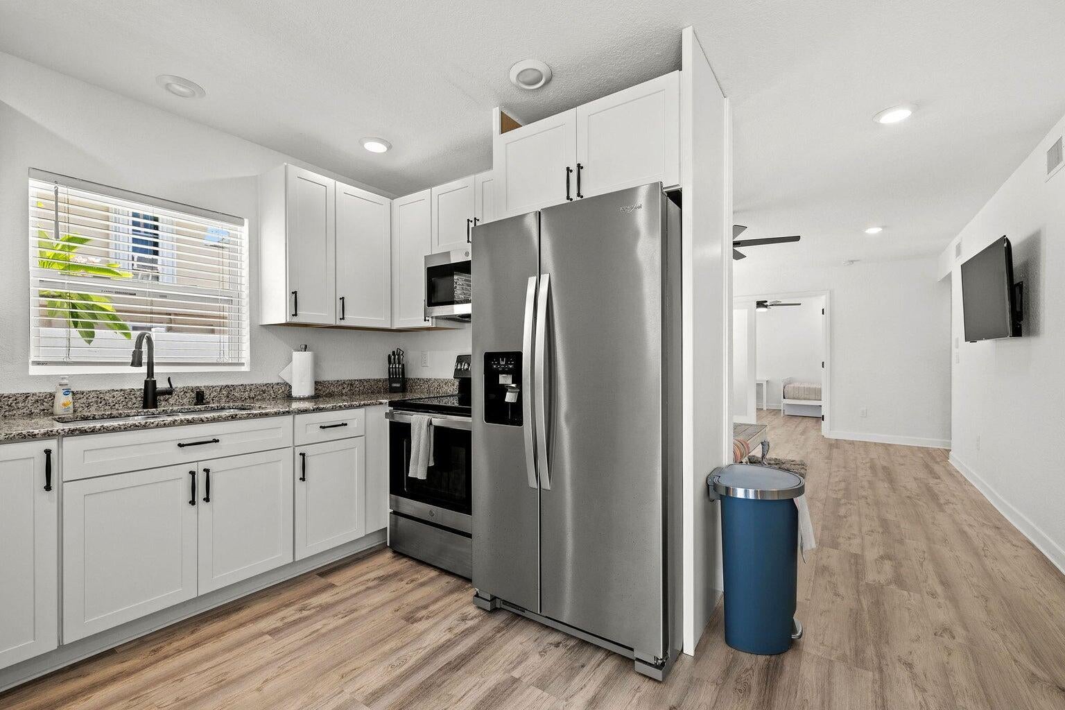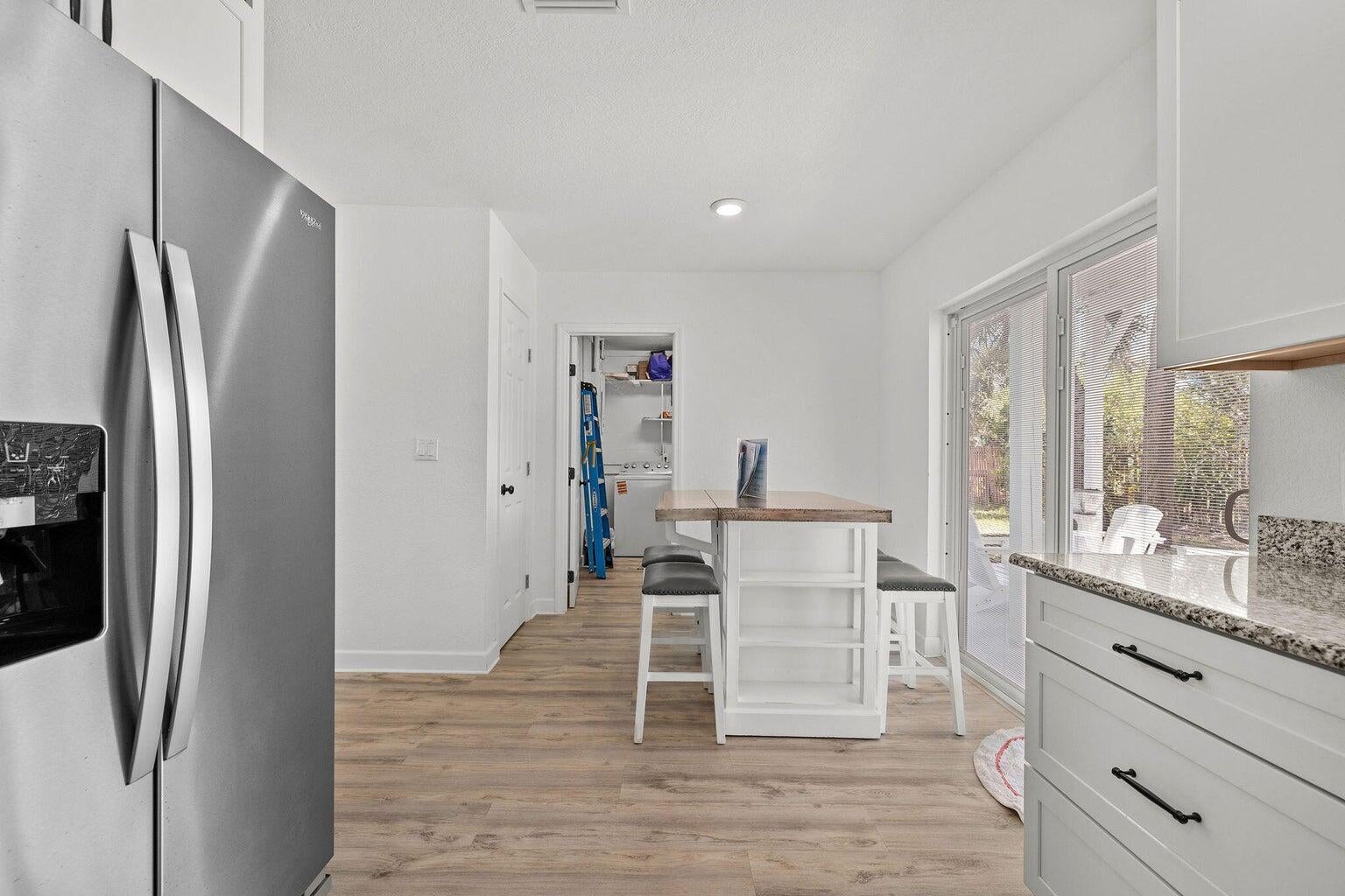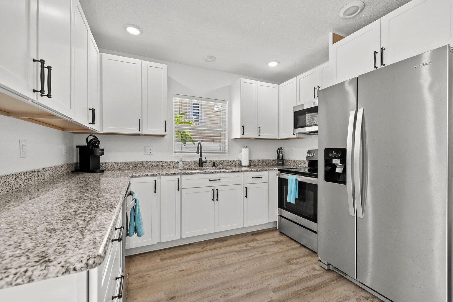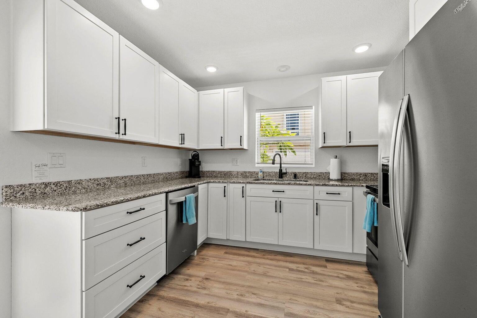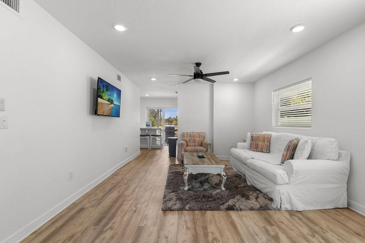 Tastefully coastally furnished 3-bedroom ground-floor unit in a quiet, non-association triplex on gorgeous Hutchinson Island. This rare find offers 3 spacious bedrooms, a full bathroom, and a laundry room with washer/dryer. Enjoy the private fenced entry patio, then step through sliding doors to a rear open patio featuring cozy outdoor furniture, a gas grill, and a fireplace--perfect for entertaining or relaxing. Walk across the street to the beach or stroll to Hutchinson Island's many restaurants, shops, and attractions. With its ideal location, privacy, and charm, this home offers a true island lifestyle. Call today to schedule a tour!