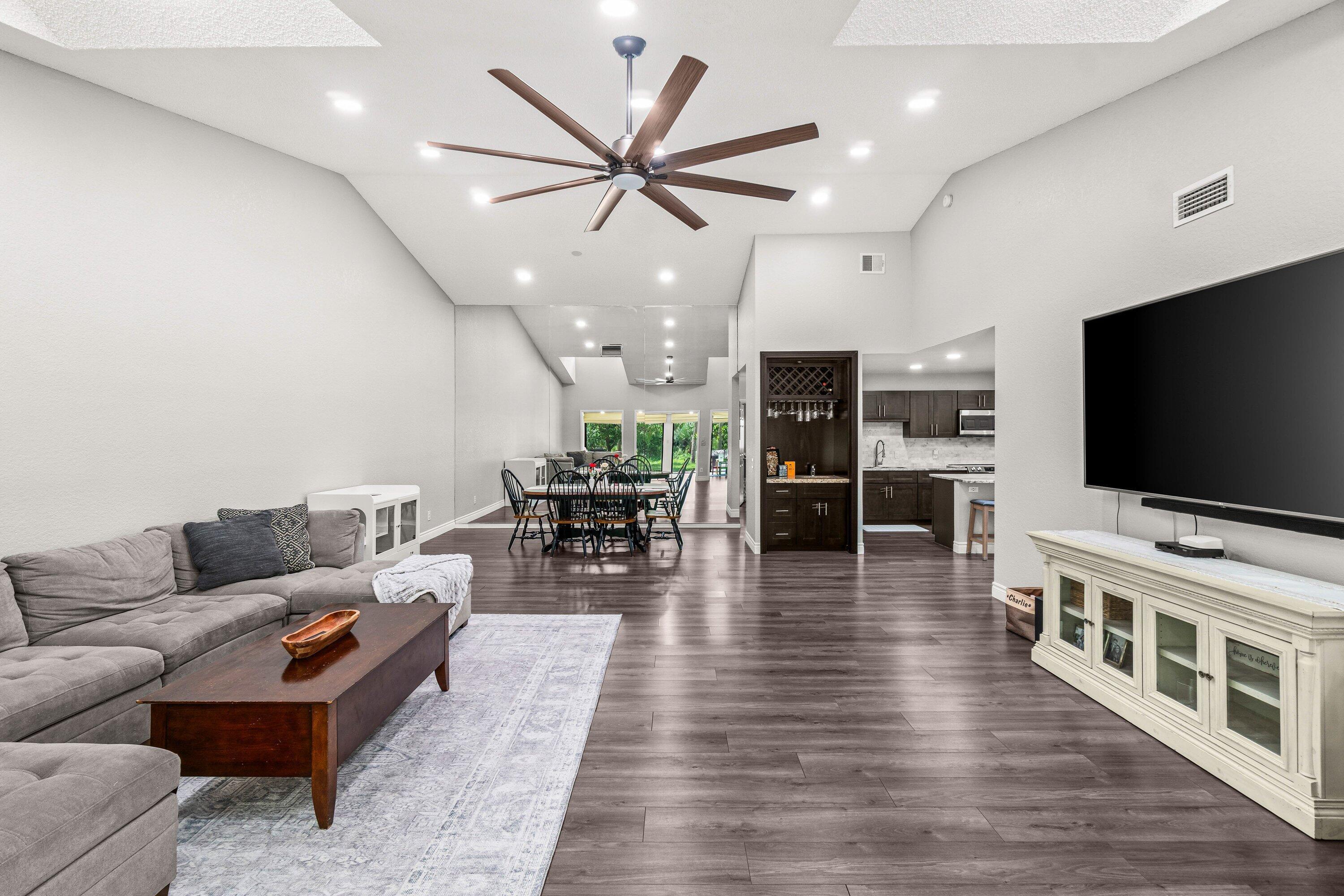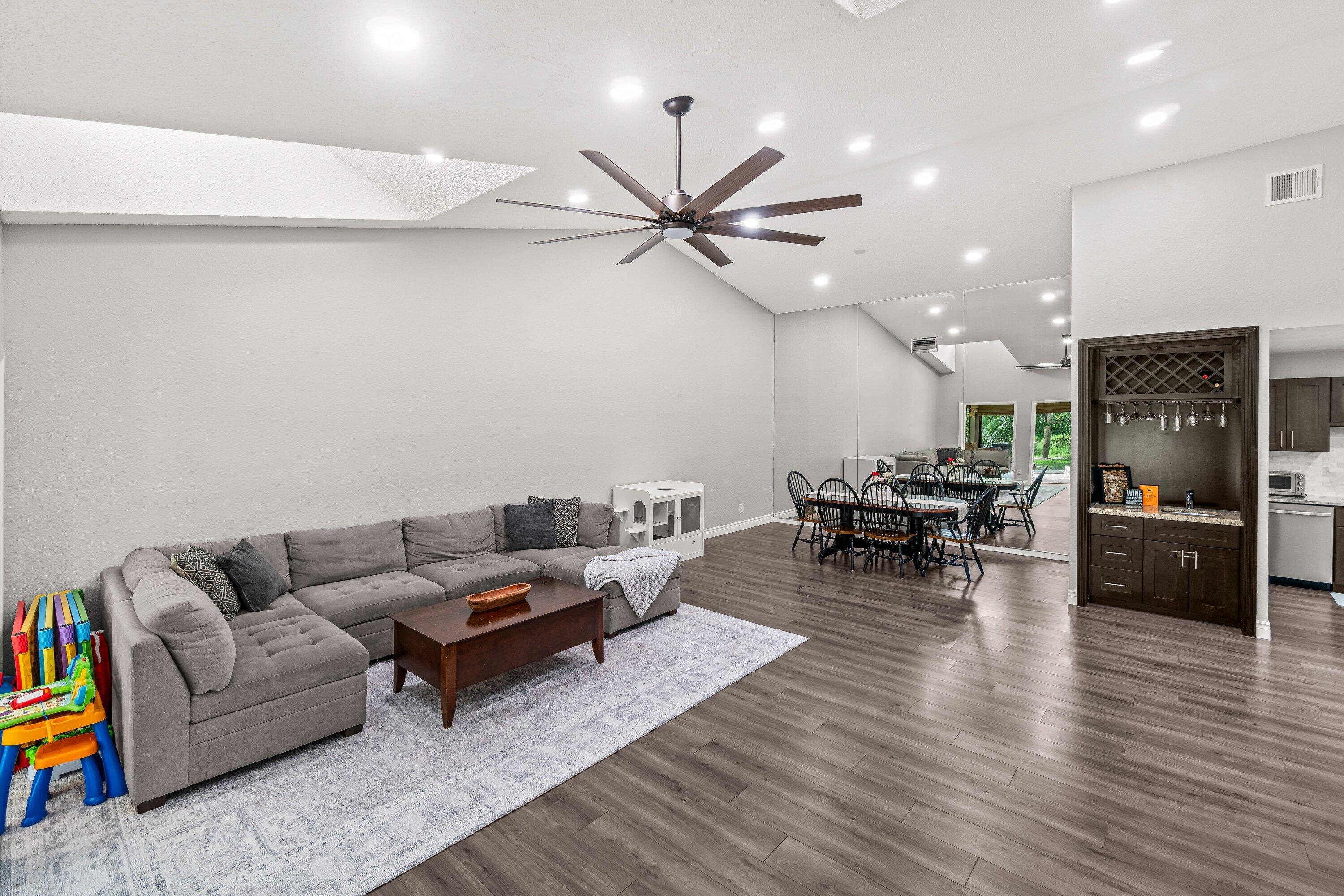 Renovated & Open Concept 3BR, 2.5BA villa with over 2,000 sq ft and lovely outdoor patio in the beautifully manicured Fountains Country Club where there is No Mandatory Membership! This home features soaring ceilings, laminate flooring, recessed lighting, and a stunning open-concept kitchen with granite countertops, island, and custom wet bar. Enjoy peace of mind with a NEW A/C and hot water heater, and brand-new primary and half bathrooms. The enclosed lanai adds extra interior living space, while the private outdoor patio is perfect for BBQs and relaxing under your own mango and avocado trees. A rare combination of upgrades, lifestyle, and flexibility in a prime Palm Beach County location!Note* There are 3 payments remaining of the current assessment for a total of $321.11 each