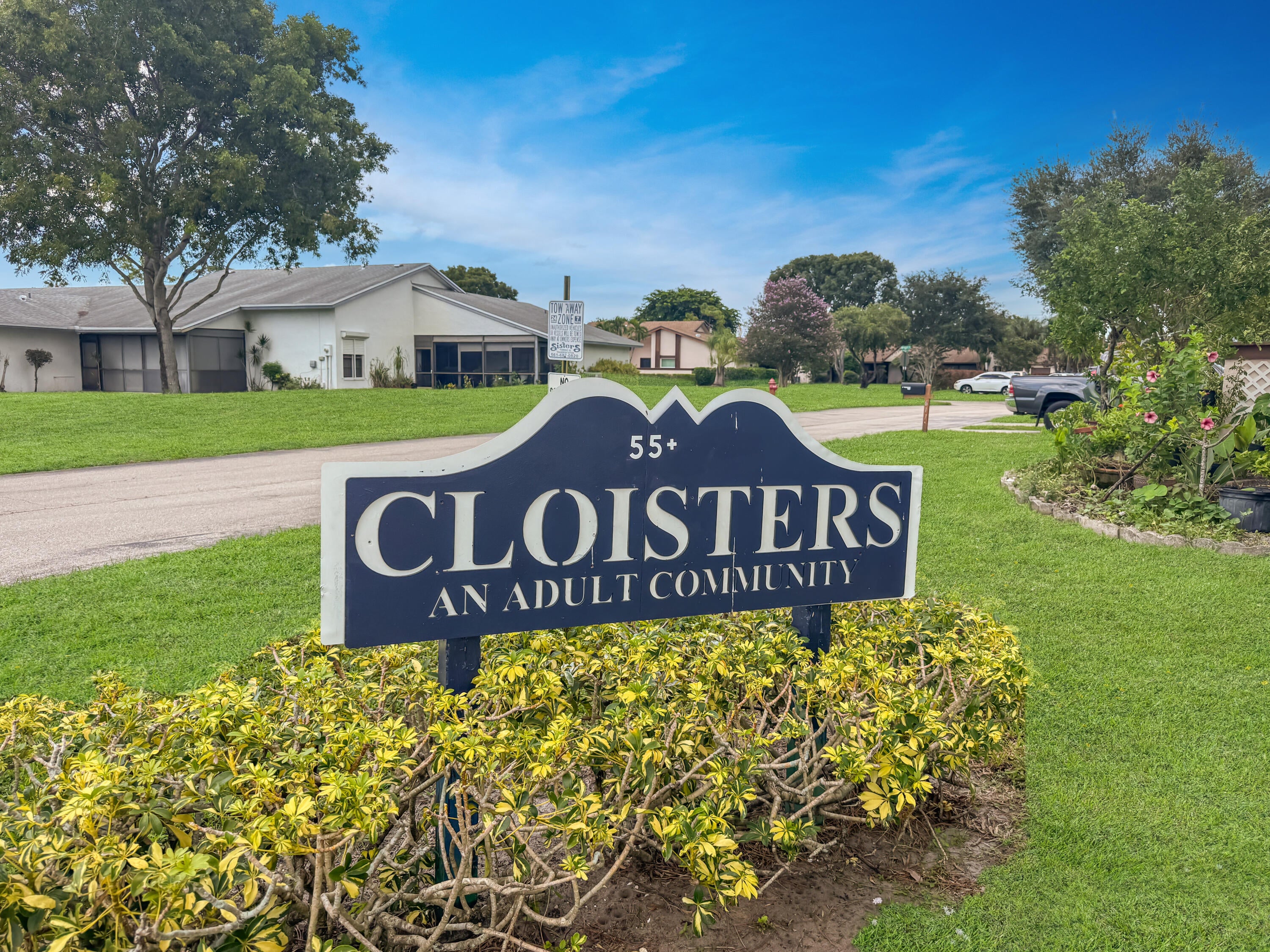 Rare opportunity to own a 2 bed, 2 bath villa with garage for the price of a condo in an active adult community. End unit on a quiet cul-de-sac with open green space. Covered, screened patio with roll-down security shutters plus accordion shutters for easy close-up. Spacious primary suite and flexible 2nd bedroom--ideal as guest room or den. Community pool, clubhouse, fitness center, and social activities. Conveniently located near shopping, dining, golf, parks, and medical facilities. Villa is priced to allow buyers to update to fit your design style.