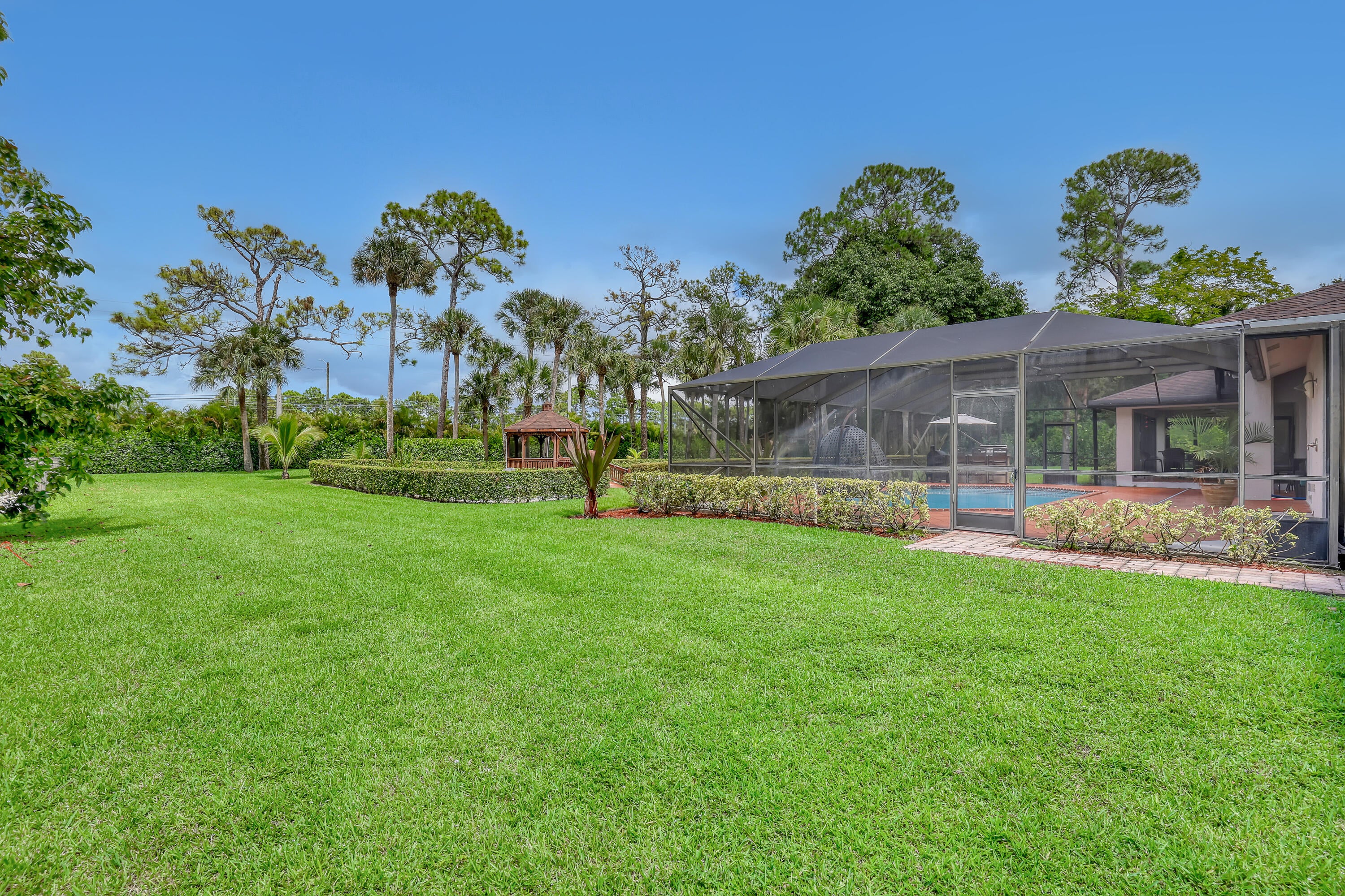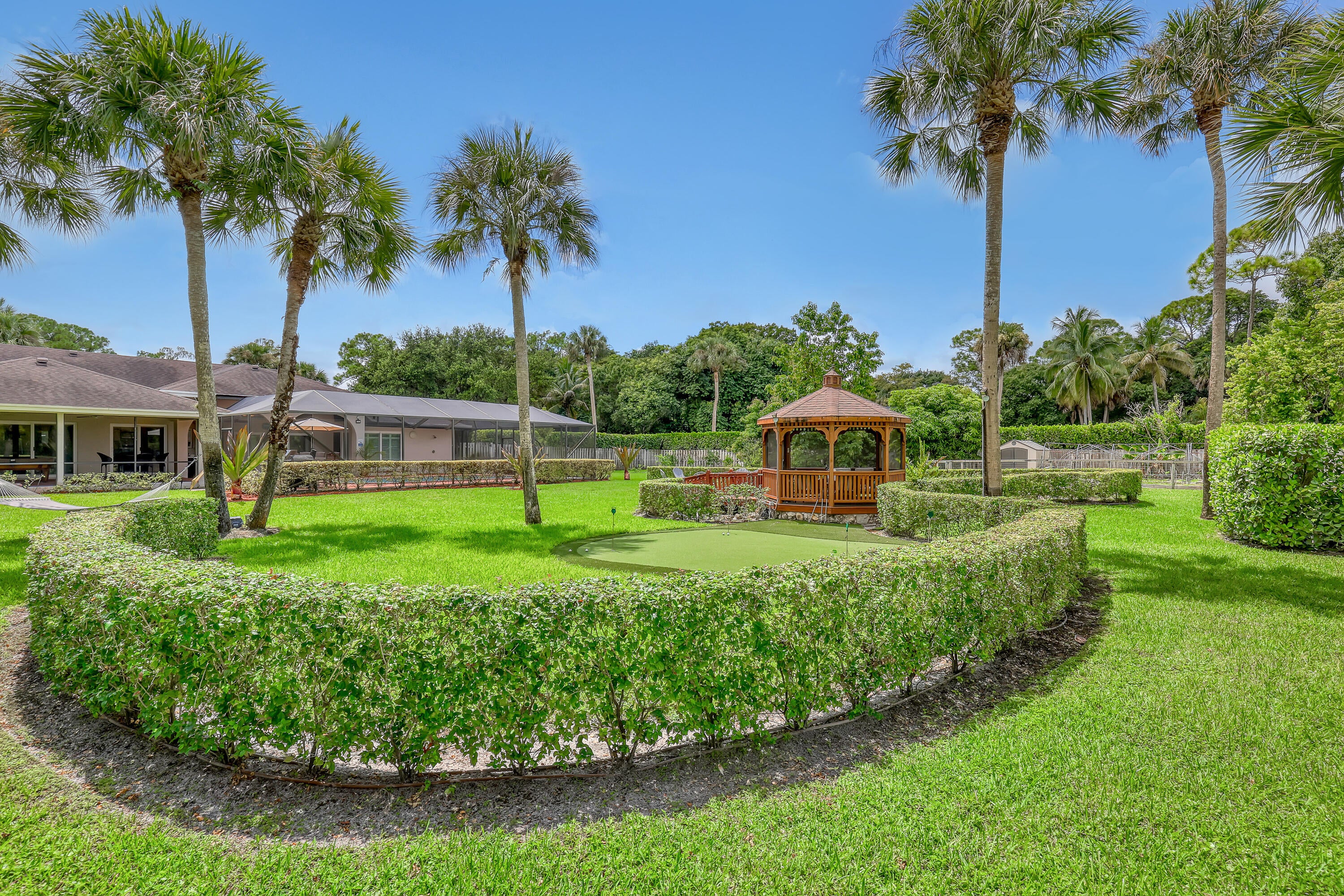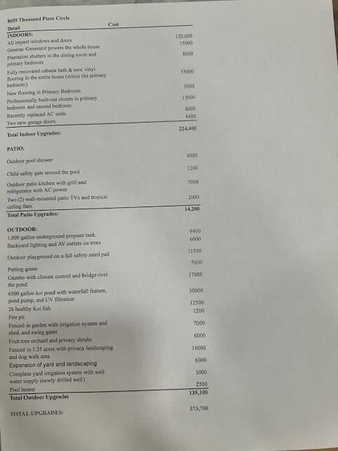 This beautifully designed custom built executive home offers 4 bedrooms, 3 bath, 3 car garage pool, on over an acre in Thousand Pines Estates, a gated community of 52 homes on acre plus lots. This home is light and bright with incredible curb appeal enhanced by the meticulously manicured landscaping and lovely architectural details including high ceilings, split bedroom plan,gourmet kitchen, plantation shutters, outdoor playground,custom built gazebo with climate control and bridge over the 6500 gallon Koi pond, putting green, outdoor summer kitchen, impact windows and doors throughout, no worries during hurricane season with a Generac generator with 1000 gallon propane tank. Minutes from the turnpike,schools, restaurants and shopping... Additional information on the last 2 pictures..