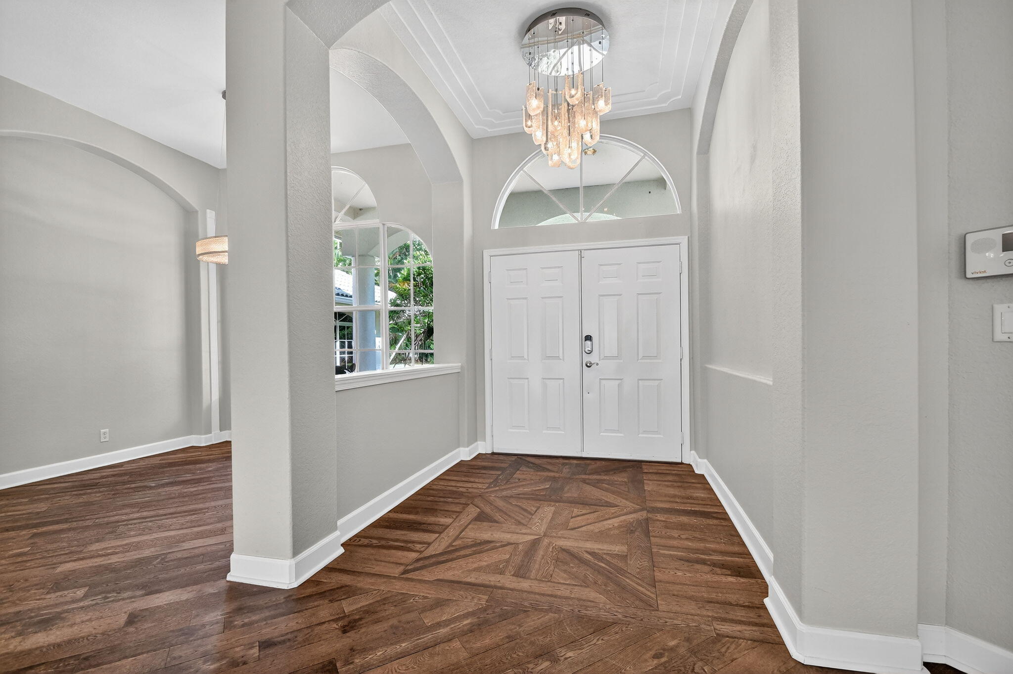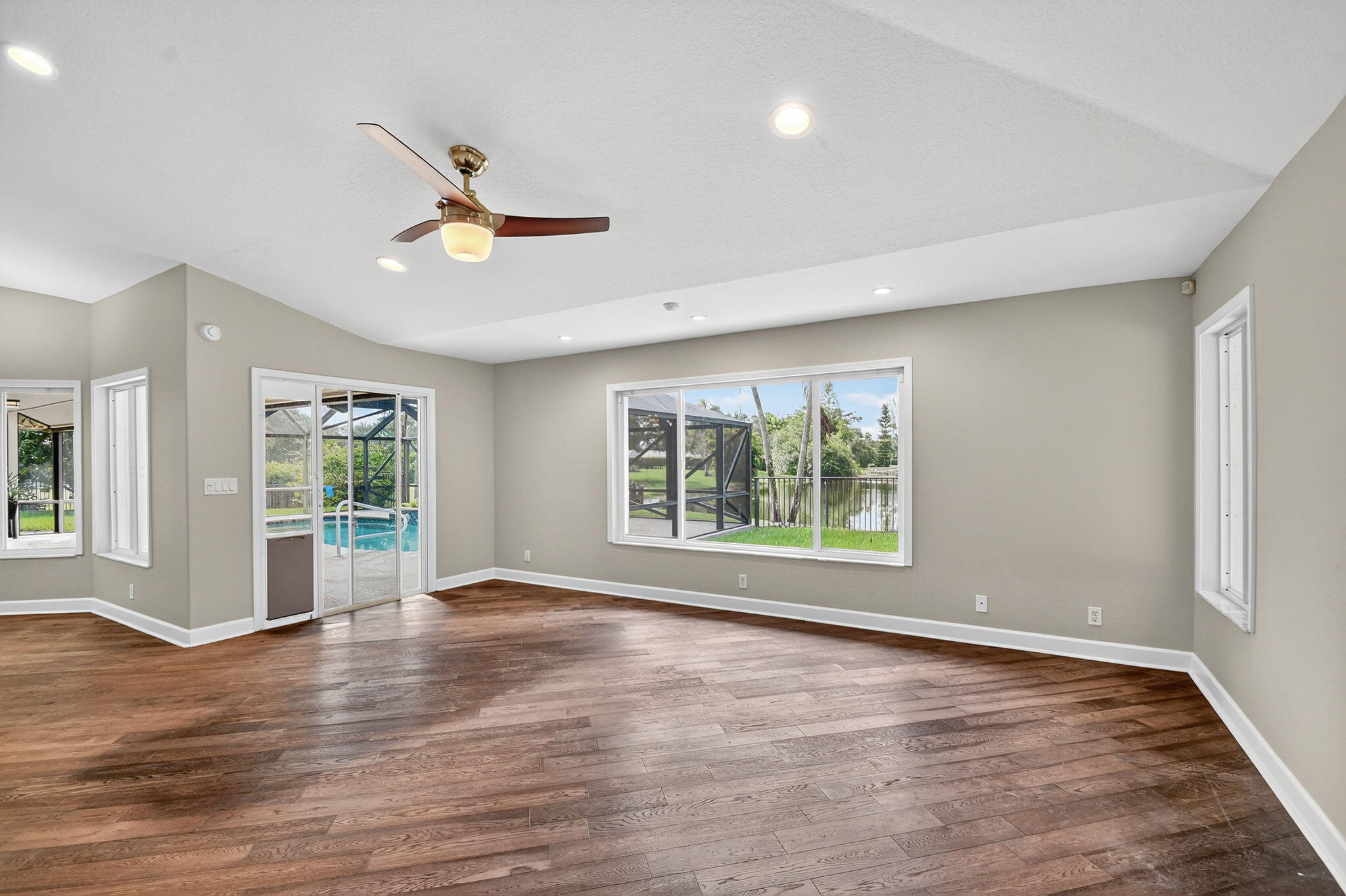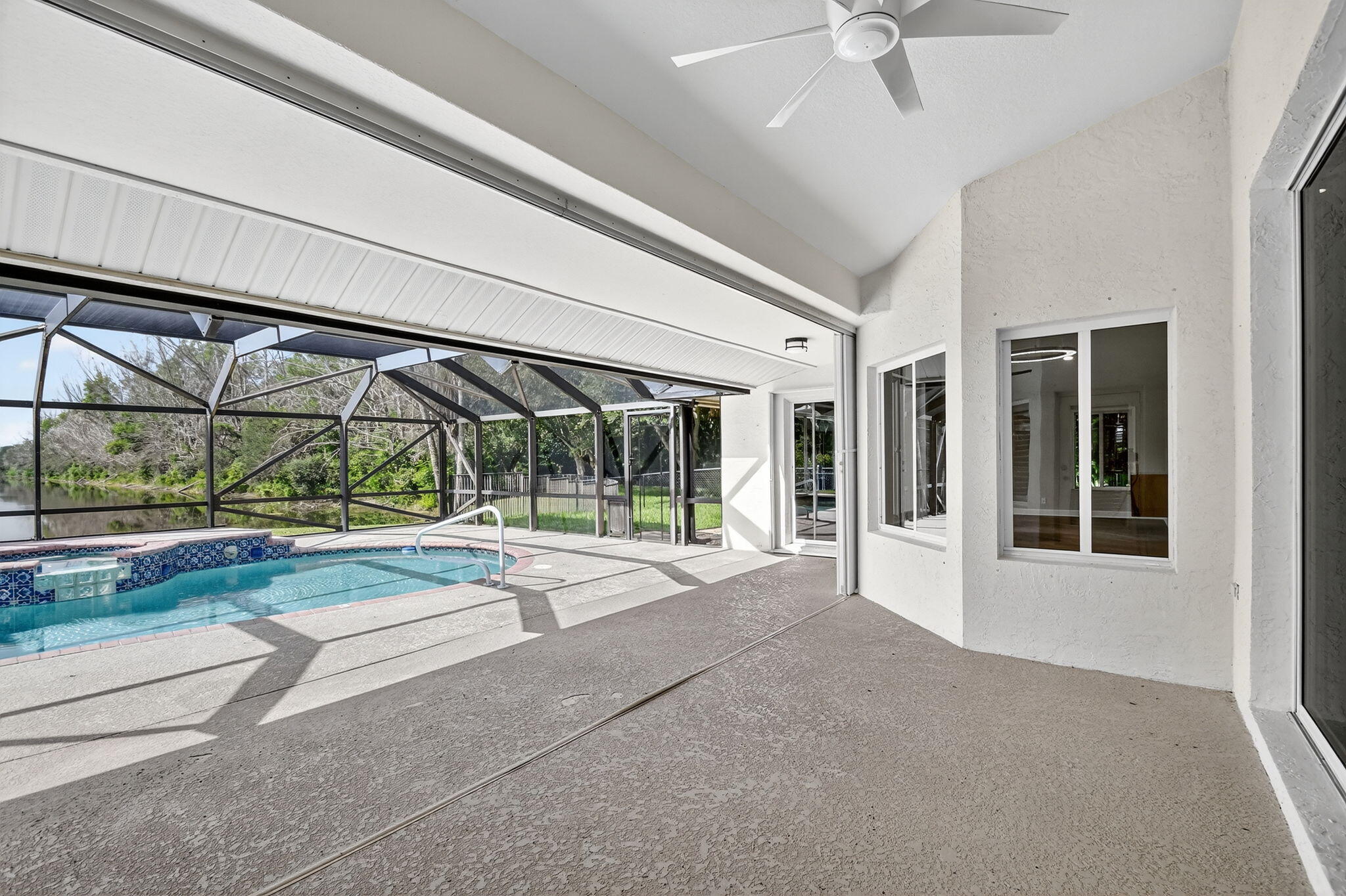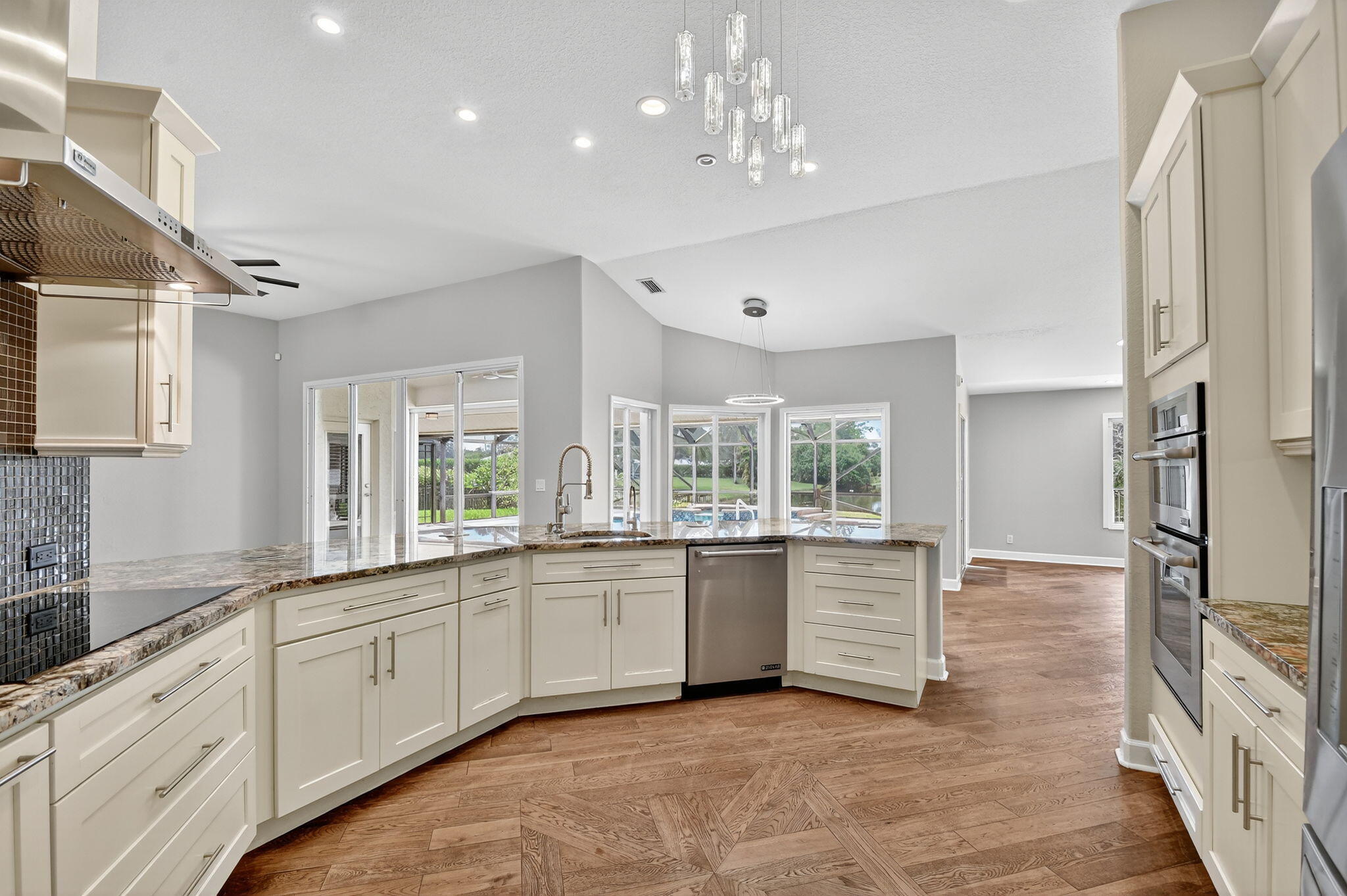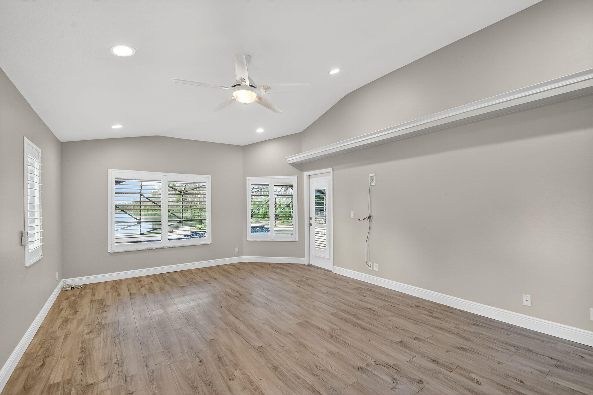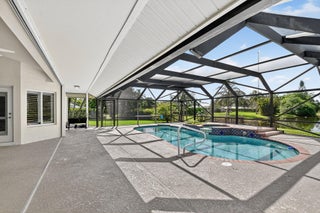 Tucked away at the end of a quiet cul-de-sac, this beautifully appointed 3 bed, 2.5 bath home sits on a sprawling 1.17 acre lot, offering unmatched privacy & stunning long lake views. An impressive 342-foot private driveway leads to the property, providing not only ample parking but also a grand, exclusive entrance.Step inside to discover an open, light-filled floor plan w/ soaring ceilings & panoramic water views. The thoughtful split bedroom layout creates the perfect environment for both daily living & entertaining, w/multiple sliding doors that open to a spacious covered patio & screened in pool, ideal for enjoying the outdoors year-round.The chef-inspired kitchen is equipped w/ high-end JennAir appliances, including an induction range & plenty of cabinet space.A breakfast nook & separate bar seating add versatility, making it perfect for casual dining & entertaining. The expansive primary suite captures breathtaking lake views & features plantation shutters, along w/a spa-like en-suite bathroom, complete w/a soaking tub, oversized shower, & generous walk-in closets. Beautifully landscaped yard offers a variety of fruit trees, including Lychee & Avocado, adding to the property's charm & appeal. This home strikes the perfect balance of tranquility, privacy, & convenience, offering easy access to top-rated schools, shopping, dining, & more. Don't miss the opportunity to own this rare & exceptional lakefront retreat.