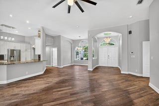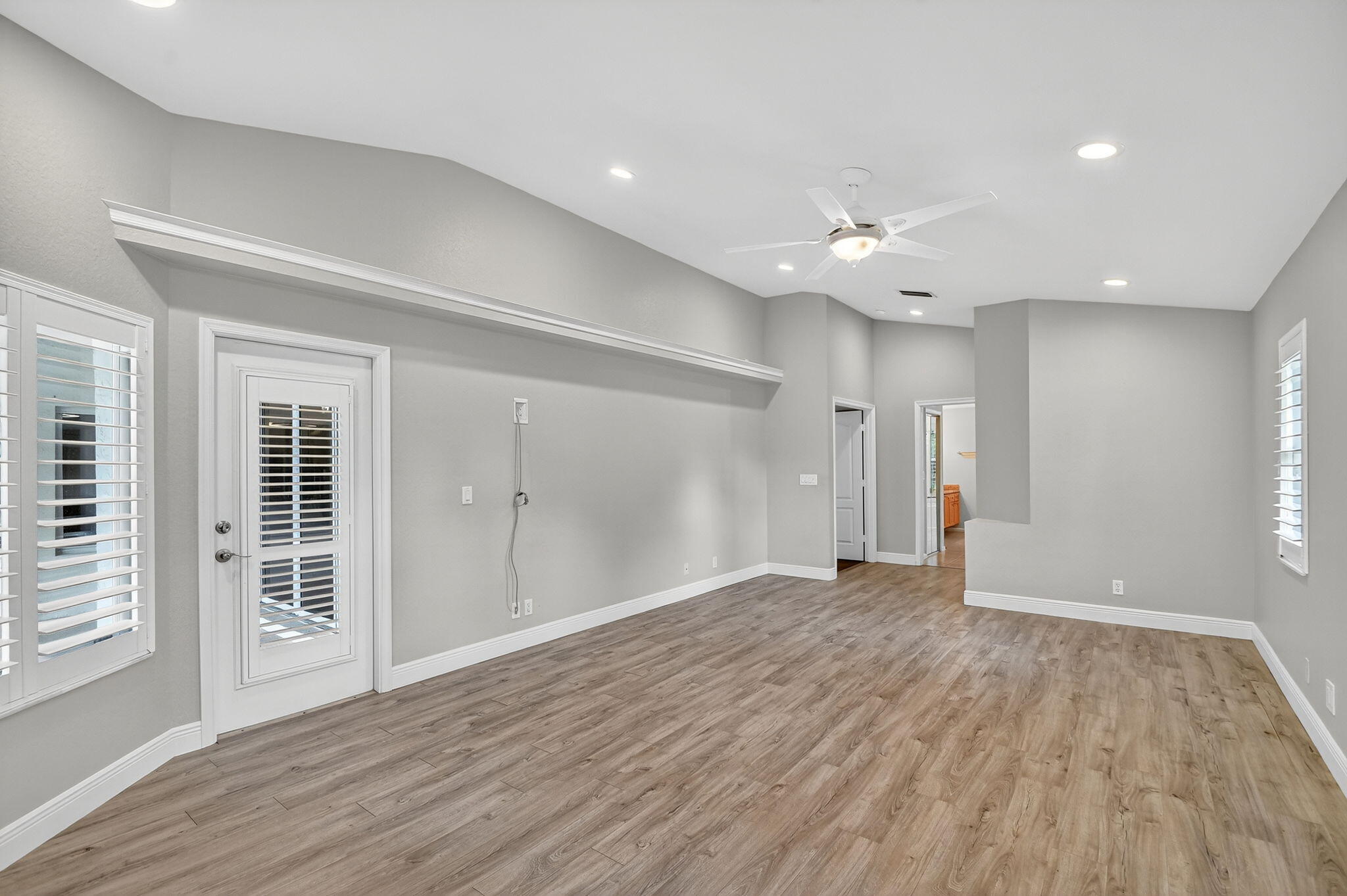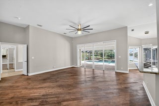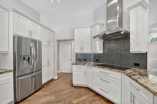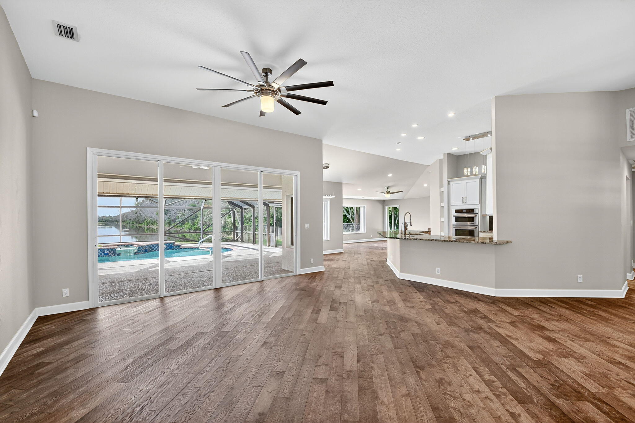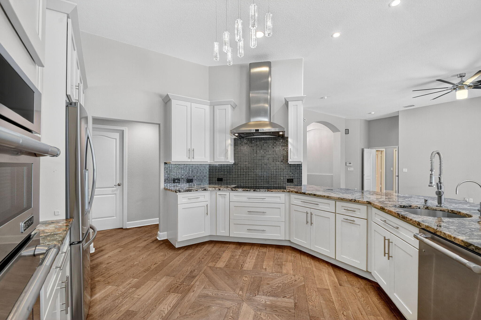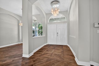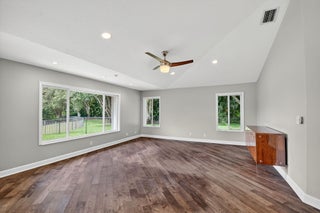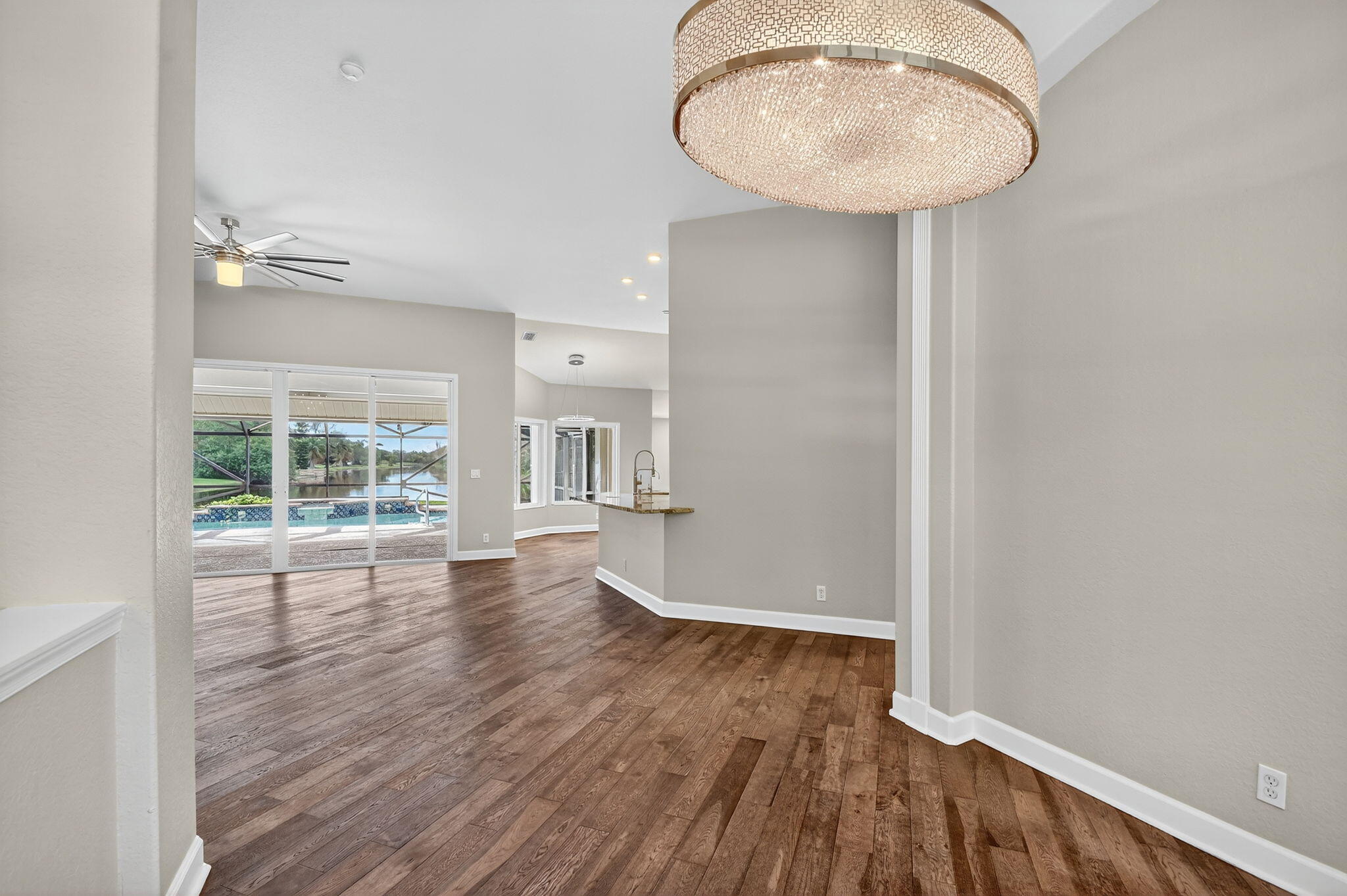 Tucked away at the end of a quiet cul-de-sac, this beautifully appointed 3 bed, 2.5 bath home sits on a sprawling 1.17 acre lot, offering unmatched privacy & stunning long lake views. An impressive 342-foot private driveway leads to the property, providing not only ample parking but also a grand, exclusive entrance.Step inside to discover an open, light-filled floor plan w/ soaring ceilings & panoramic water views. The thoughtful split bedroom layout creates the perfect environment for both daily living & entertaining, w/multiple sliding doors that open to a spacious covered patio & screened in pool, ideal for enjoying the outdoors year-round.The chef-inspired kitchen is equipped w/ high-end JennAir appliances, including an induction range & plenty of cabinet space.A breakfast nook & separate bar seating add versatility, making it perfect for casual dining & entertaining. The expansive primary suite captures breathtaking lake views & features plantation shutters, along w/a spa-like en-suite bathroom, complete w/a soaking tub, oversized shower, & generous walk-in closets. Beautifully landscaped yard offers a variety of fruit trees, including Lychee & Avocado, adding to the property's charm & appeal. This home strikes the perfect balance of tranquility, privacy, & convenience, offering easy access to top-rated schools, shopping, dining, & more. Don't miss the opportunity to own this rare & exceptional lakefront retreat.