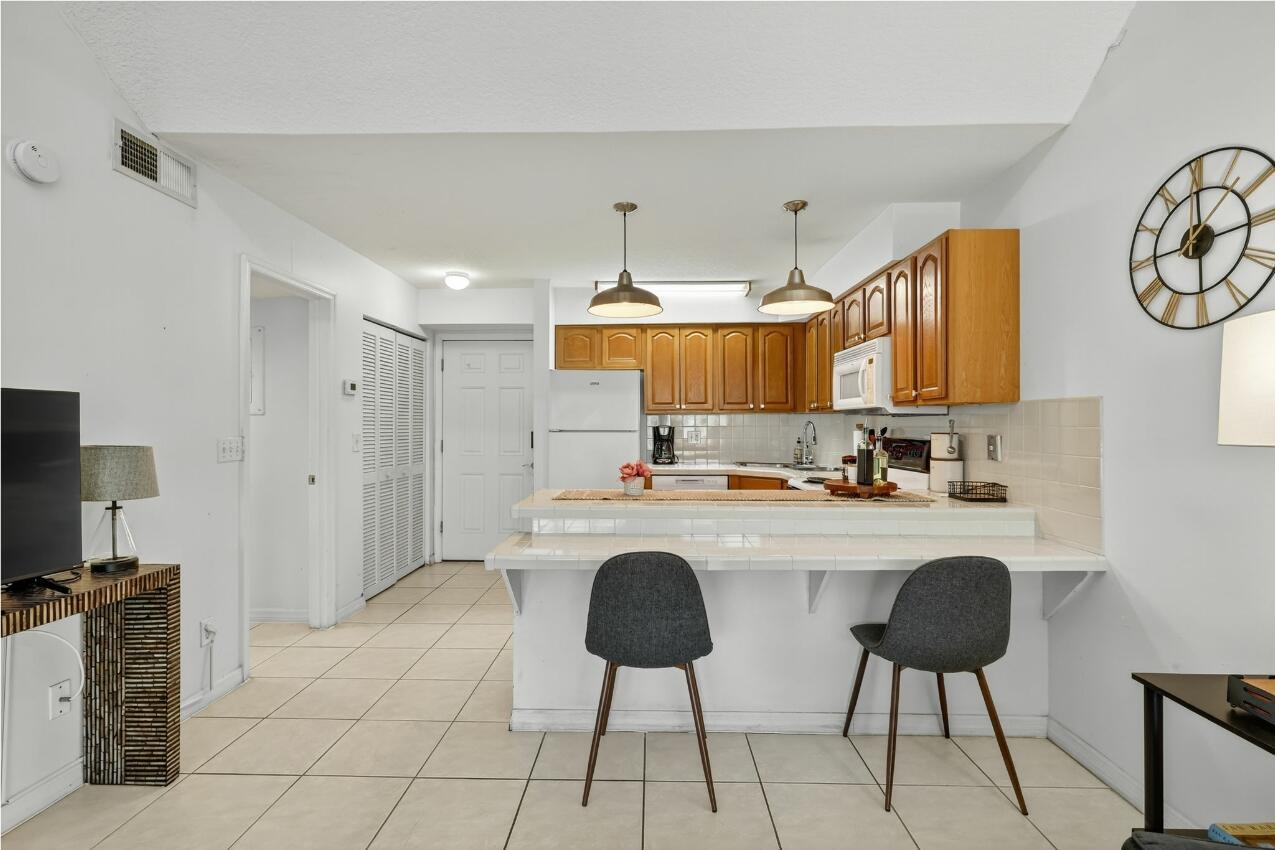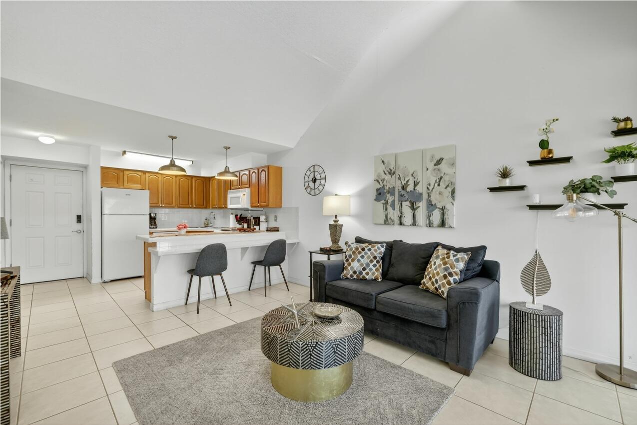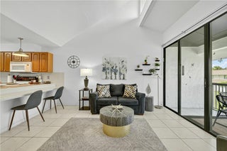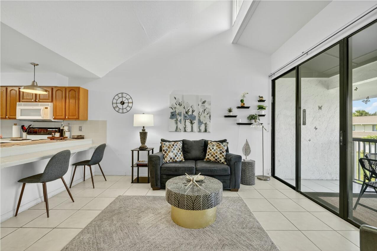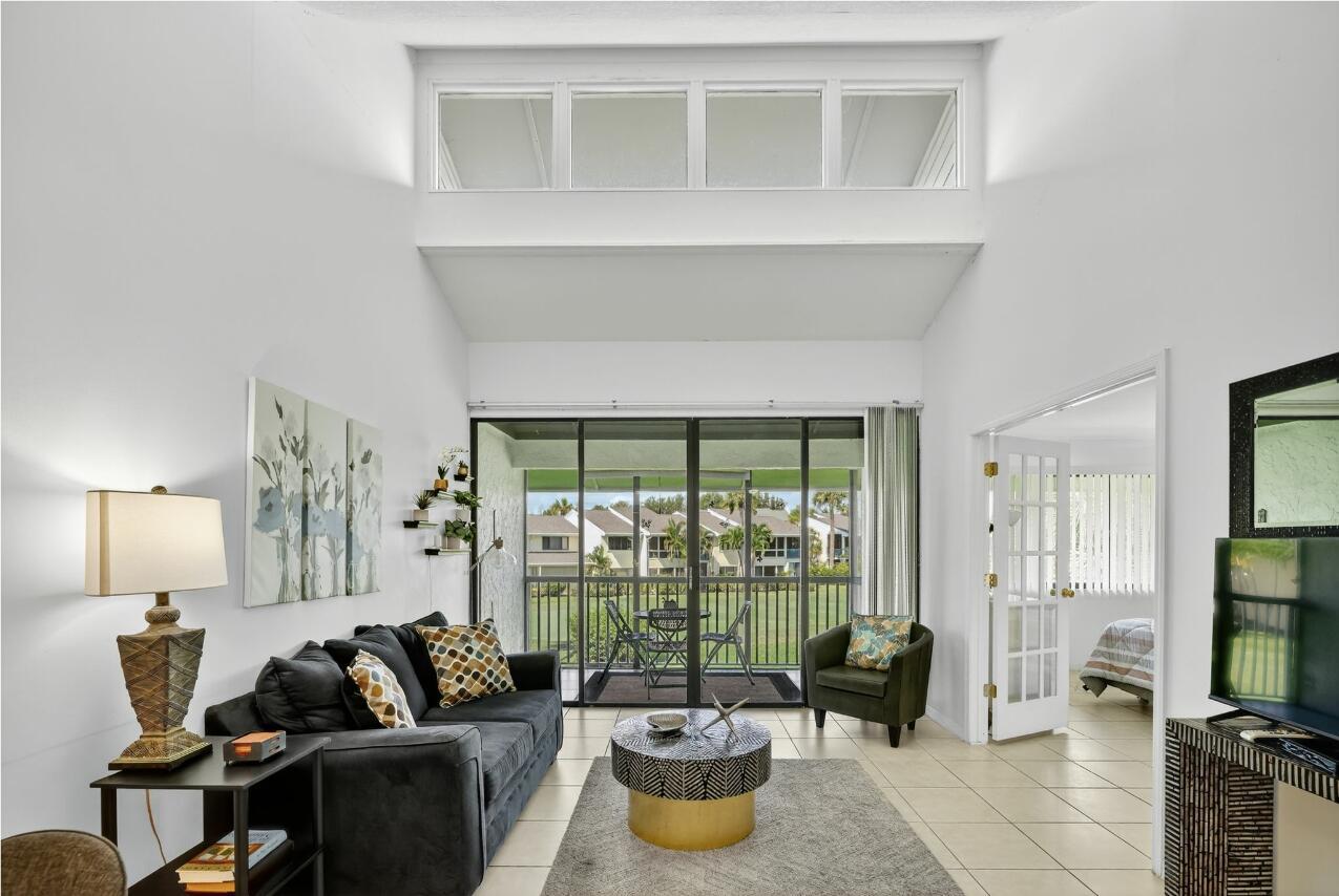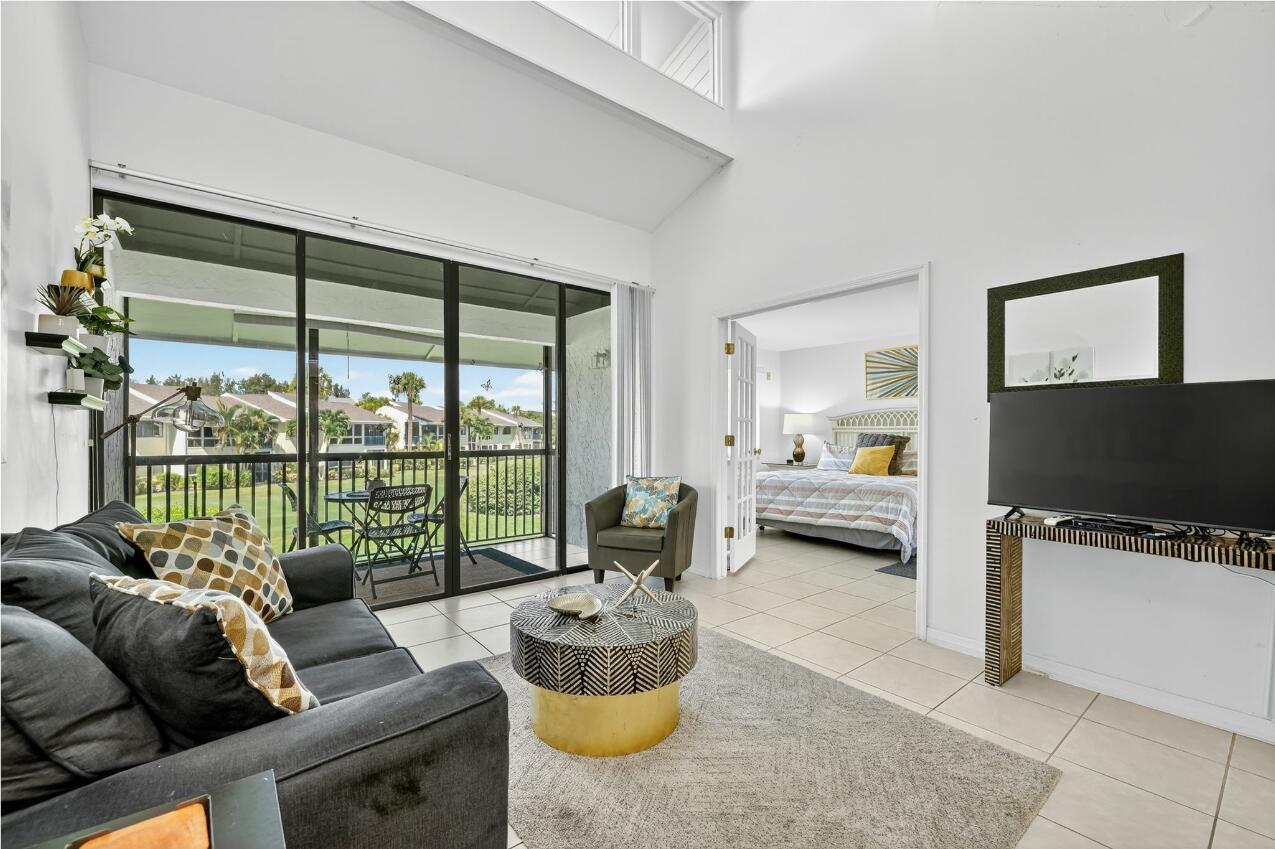 NEAR THE OCEAN! Adorable 1 bedroom 1 bath fully furnished ''Golf Villas'' condo at Ocean Village! Light & bright unit with vaulted ceiling, french doors to the bedroom, tile flooring, large screened balcony with great view of the golf course. Near the ocean & all Ocean Village amenities. Would be great rental unit if owner so desires. This condo can be rented by the week! Enjoy the best of Florida living at this beautiful oceanfront community offering 24 hr gated entry, 9 hole par 3 golf course, tennis, bocce ball, pickelball courts, 4 pools, new clubhouse & fitness center, oceanfront restaturant & tiki bar & 3500 feet of oceanfront. Located on Hutchinson Island with 21 miles of uncrowded & unspoiled beaches. Measurements approximate.
