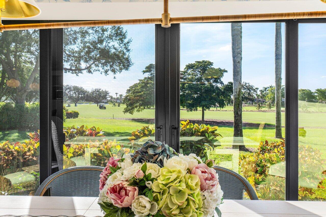 Stunning golf course views from this completely, beautifully renovated 2-bedroom, 2-bathroom first-floor residence, offering a serene private club setting. The spacious floor plan features an open kitchen, complete with modern finishes and high-end appliances, perfect for culinary enthusiasts. Both the main bathroom and guest bath have been thoughtfully updated with contemporary fixtures and stylish touches. Sliding doors in the living area open to a courtyard patio, ideal for relaxing or entertaining. Enjoy the peaceful atmosphere and picturesque surroundings in this lovely home, just steps away from the golf course. Impact glass windows, new electric & plumbing. Quail Ridge is a mandatory membership, private club community offering top tier golf, racquet sports, clubhouse and more