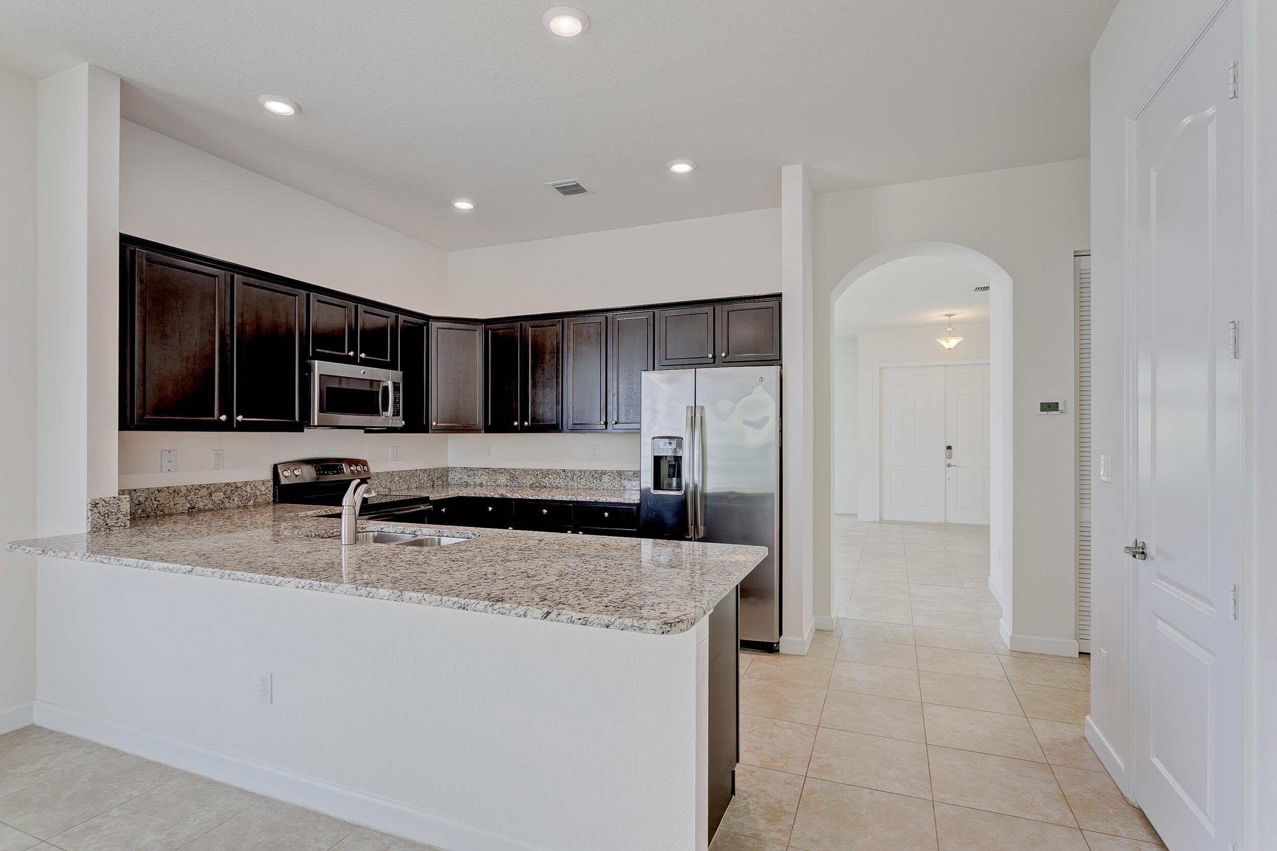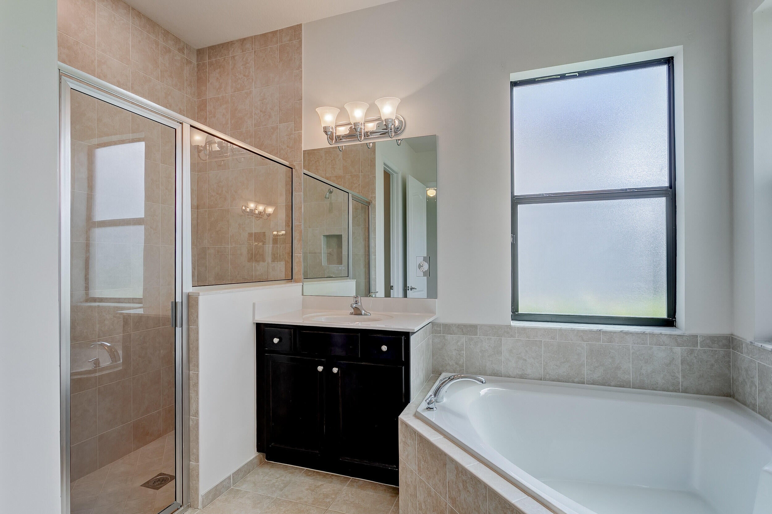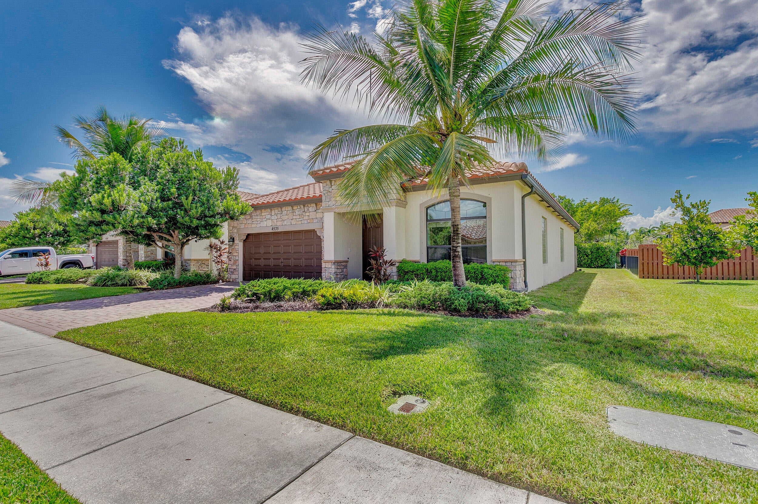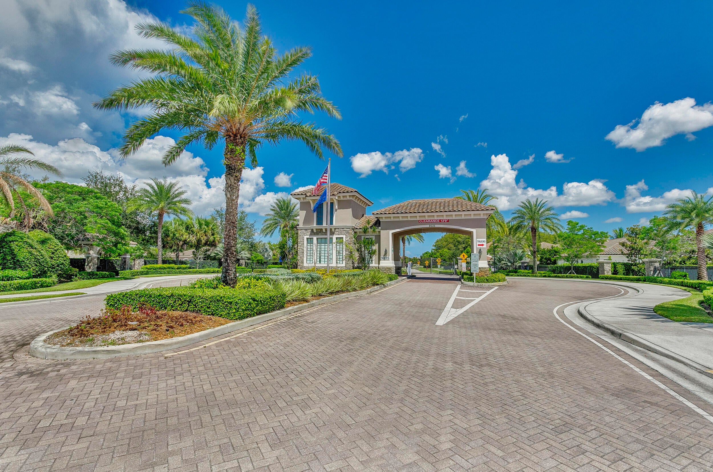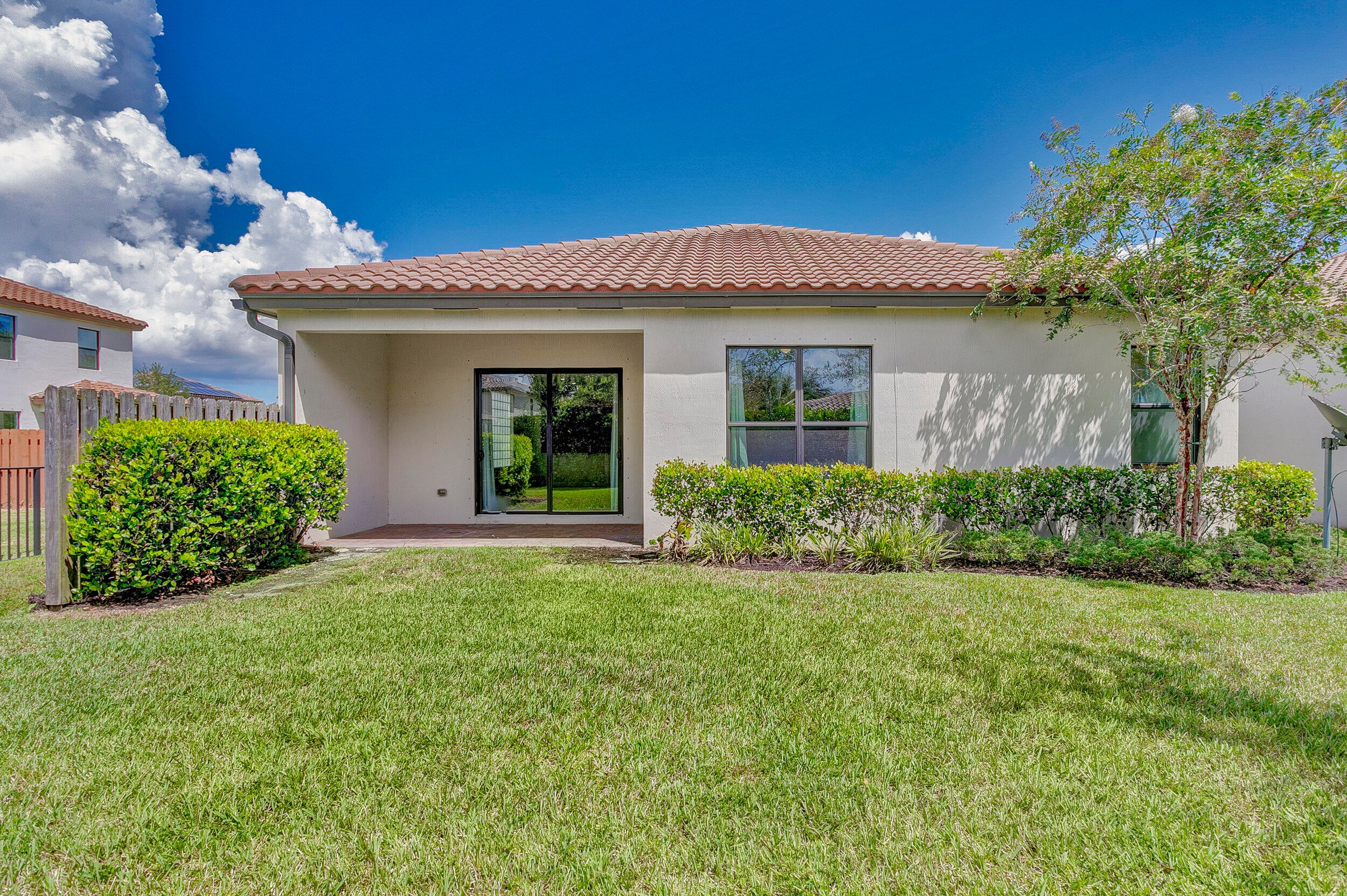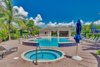 Fabulous single-story home in a gated, family-friendly community! Perfectly located near Wellington Green Mall, fine dining, and with quick access to Florida's Turnpike. Zoned for excellent schools, this residence offers both convenience and lifestyle. Step inside to soaring 9-foot ceilings in the spacious Living and Family Room areas. The light and bright kitchen is designed for both function and style, seamless connection to the covered terrace--ideal for indoor-outdoor living. The primary Suite is a true retreat, complete with a vast walk-in closet and a bath with a Roman tub and dual vanities. Light-filled interiors create a warm, airy atmosphere throughout, while maintaining a cozy feel. Community pool and playground. HOA requires min Credit 720 for all occupants over age 18.