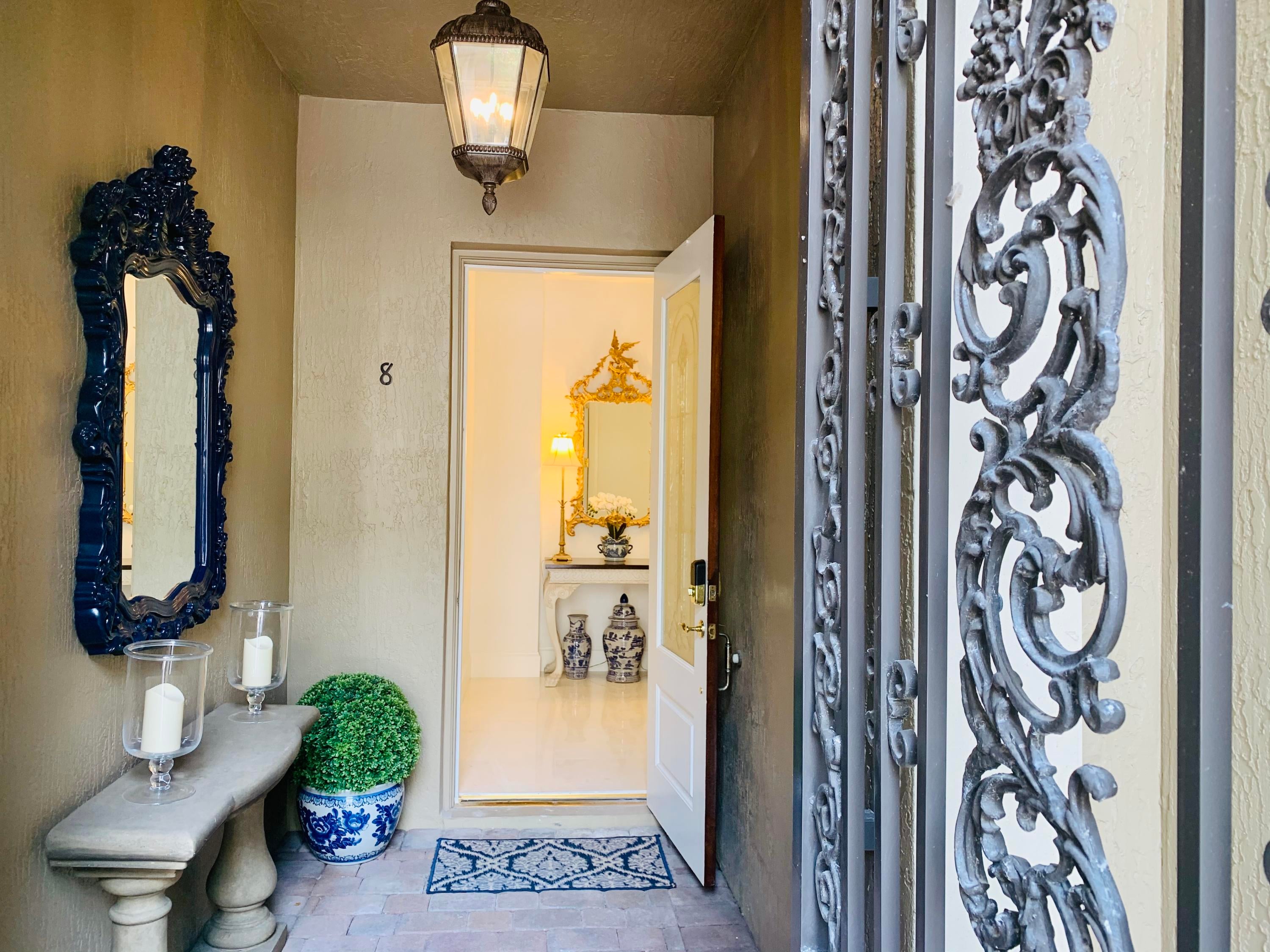Step into exquisite coastal luxury with this masterfully reimagined townhouse. Discover where modern design meets timeless sophistication in this meticulously curated home with 2-car Garage, Elevator, Impact windows and New 2025 Roof. This exclusive boutique community is just 1/2 bock from deeded Beach access, in the coveted Estates section of Boca Raton. All 3 ensuite bedrooms have large closets. Baths exude spa-like serenity with high-end finishes. This Palm Beach inspired residence is ideal for those seeking a coastal lifestyle where HOA fee covers: ins-Bldg., Lawn Care, Common Area, Mgt. Fee, & Roof Maint. Just a half block to the beach. Stroll to downtown Boca Raton's vibrant dining, shopping, The Boca Raton Resort, all moments away. A-Rated Schools.High ceilings and windows offer an abundance of natural light. Private patio for entertaining. Custom designed solid wood cabinetry. Gourmet Kitchen has quartz counters, marble backsplash, Bosch refrigerator and dishwasher, GE double ovens, Sharp microwave, cooktop fan. New programable Garage door. Gorgeous wrought iron Entry Gate. Custom Wet bar with wine cooler. Newer hot water heater, AC redone 2025. Elevator redesigned and upgraded. 7.5'' baseboards. First floor has polished floor, upper floors have new wide plank wood. Staircase has new solid wood treads. LED lighting & fans. New Security/fire alarm system has remote access. Security Camera, keyless entry remote access. Water sensors in all baths, etc. Central Vacuum. New plantation shutters. Immaculate.