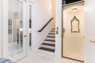 Bar, Built-in Shelves, Foyer, French Door, Roman Tub, Upstairs Living Area, Volume Ceiling, Walk-in Closet, Elevator