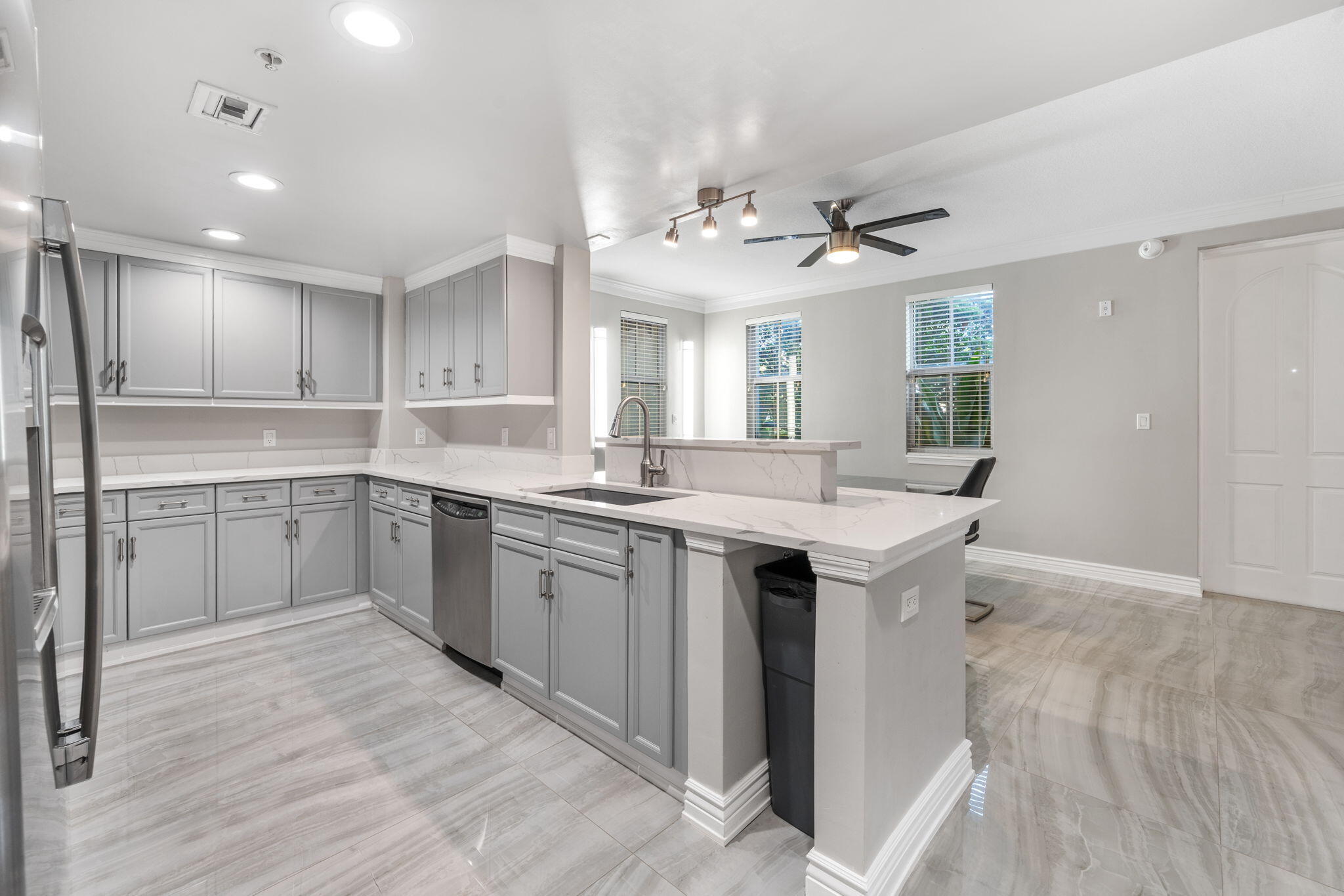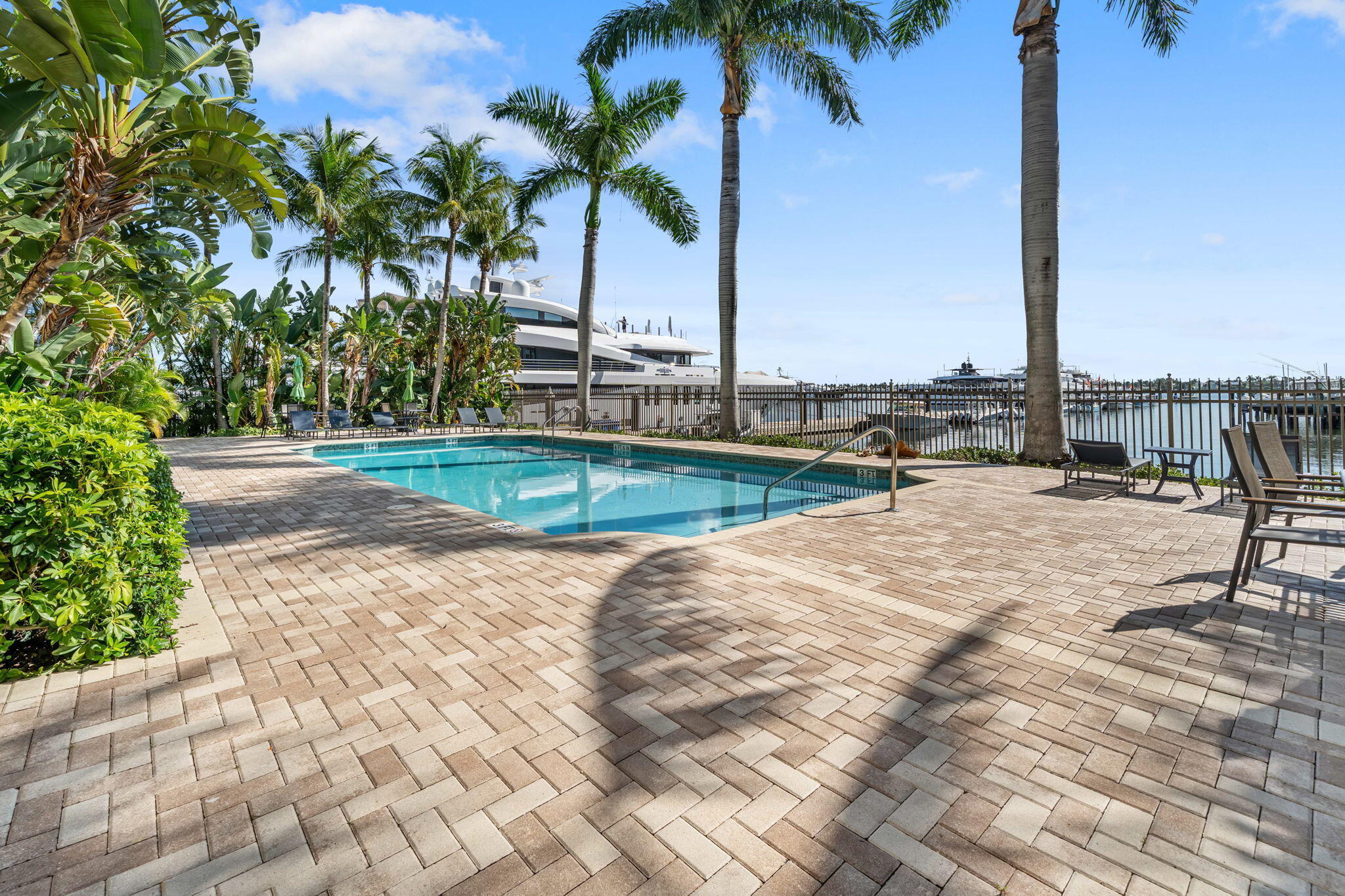 Experience luxury living on the Intracoastal at Flagler Landing, a gated waterfront community in West Palm Beach. This beautifully updated 1-bedroom, 1-bath residence blends sophistication, comfort, and convenience, featuring a brand new AC and high-end finishes throughout. The renovated kitchen opens up to a spacious living and dining area, anchored by a custom entertainment center and flowing seamlessly to a private patio--your perfect spot to unwind or entertain. Double doors lead to a grand bedroom retreat with custom closet shelving and abundant natural light. As a first-floor residence, everyday living is effortless with two private entrances, a deeded garage parking space located just steps from the door, and a trash chute nearby.Flagler Landing is a pet friendly community offering a boutique waterfront lifestyle with amenities including a marina, pool, fitness center, and 24/7 manned gatehouse. Perfectly positioned just minutes from Palm Beach Island, downtown West Palm, pristine beaches, shopping, and dining, this home is ideal as a year-round residence, a seasonal retreat, or a smart investment with rental opportunities allowed twice per year. A rare blend of modern upgrades, elegant design, and unmatched conveniencethis is South Florida living at its finest.