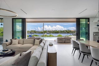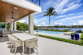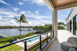 Welcome to 1422 SE Atlantic Drive, a rare opportunity to own one of the most prestigious newly completed residences on Hypoluxo Island, near Manalapan. This stunning waterfront estate, crafted by the renowned Farrell Building Company, one of the nation's leading ultra-luxury homebuilders, epitomizes modern elegance and South Florida living at its finest. Set on a sprawling half-acre parcel with 120 feet of direct waterfront, the home offers breathtaking views of the Intracoastal Waterway and some of the most iconic estates in the world, including the illustrious Manalapan Ocean-to-Lake properties.Encompassing over 7,800 square feet of exquisitely designed living space, this estate features soaring 10-foot ceilings on both levels, creating an atmosphere of refined grandeur and light-filled openness. On the third level, you'll find an epic rooftop with iconic water views. The home boasts seven expansive bedrooms and eight impeccably appointed bathrooms, each designed with both luxury and functionality in mind. In particular, the dual option for both upstairs and ground floor primary suites, both with exceptional water views, provides extensive versatility. Every inch of this estate showcases signature craftsmanship combining timeless architectural detail with state-of-the-art technology and innovative design. From the chef's gourmet kitchen to the elegant indoor and outdoor living spaces, every feature has been meticulously curated for elevated living and effortless entertaining. The estate also includes a spacious multi-vehicle garage, ideal for car collectors or boating enthusiasts. With direct access to premier boating waters, this waterfront sanctuary has a 250 foot dock and is perfectly suited for yachting, water sports, or simply enjoying South Florida's stunning coastal lifestyle. This exceptional home is fully completed and move-in ready, offering an unmatched opportunity to own a true masterpiece in one of South Florida's most sought-after locations.