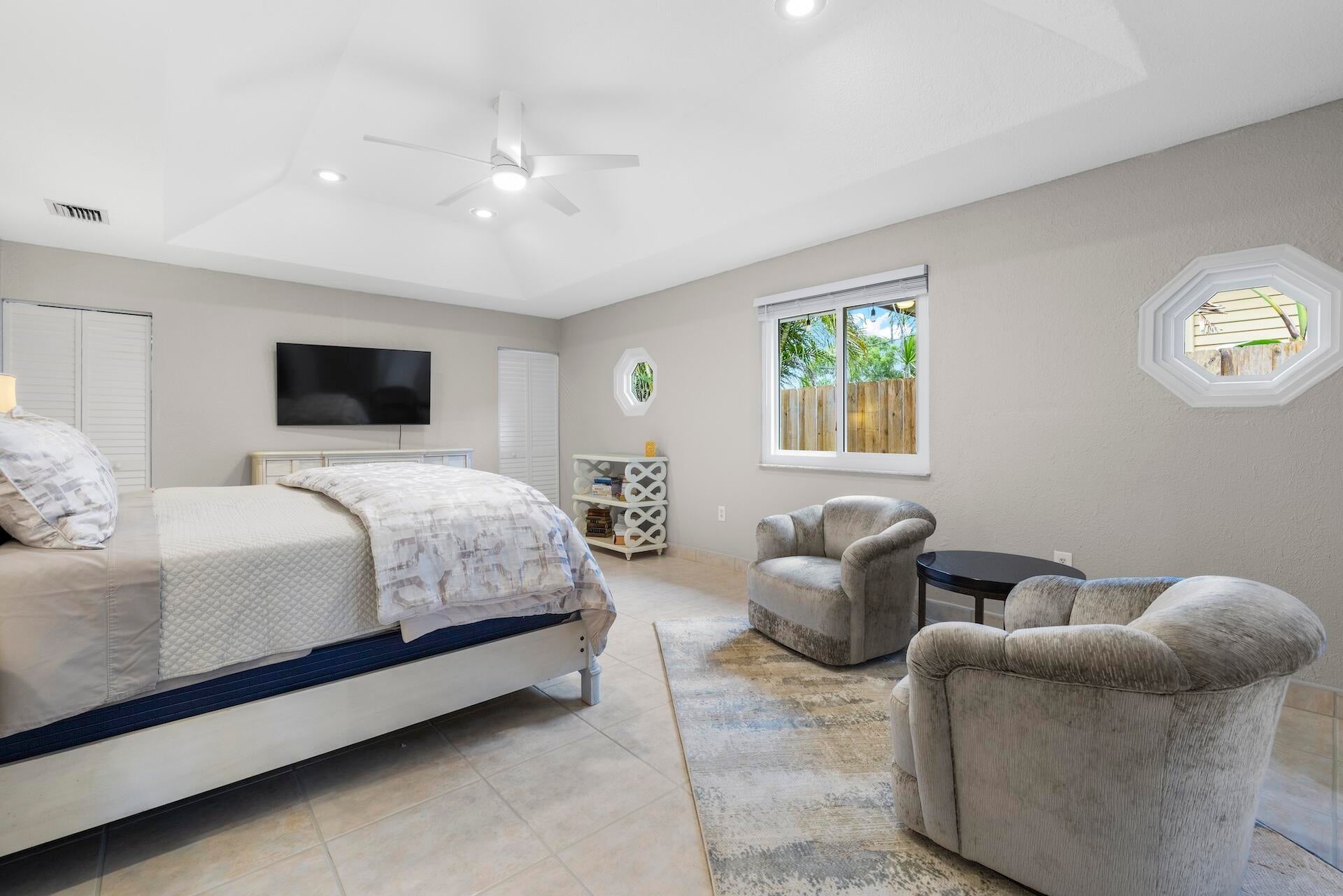 Nestled close to both the beach and the golf course, this beautifully updated 3-bedroom, 2-bathroom home combines charm, efficiency, and modern living. From the moment you arrive, the curb appeal shines with lush landscaping and a welcoming exterior that sets the tone for what's inside. Step through the front door into a thoughtfully designed split floor plan with a spacious open kitchen--perfect for entertaining and everyday living. The true primary suite is a private retreat, featuring an elegant tray ceiling, two walk-in closets, and a renovated bathroom designed with today's buyer in mind. Major upgrades give this home peace of mind and long-term savings: impact windows, a new roof, and updated plumbing and electrical systems.Both guest bathrooms have also been recently renovated with stylish finishes. Efficiency is built-in, with natural gas powering the water heater, dryer, and stovehelping reduce electric bills with Lake Worth Utilities. Outside, the fully fenced backyard offers an oversized space for gatherings, pets, or simply relaxing in the South Florida sunshine. Alley access provides convenient guest parking, making entertaining a breeze. With its combination of character, upgrades, and unbeatable location near the sand and fairways, this Lake Worth Beach home is truly move-in ready and waiting for its next owner.