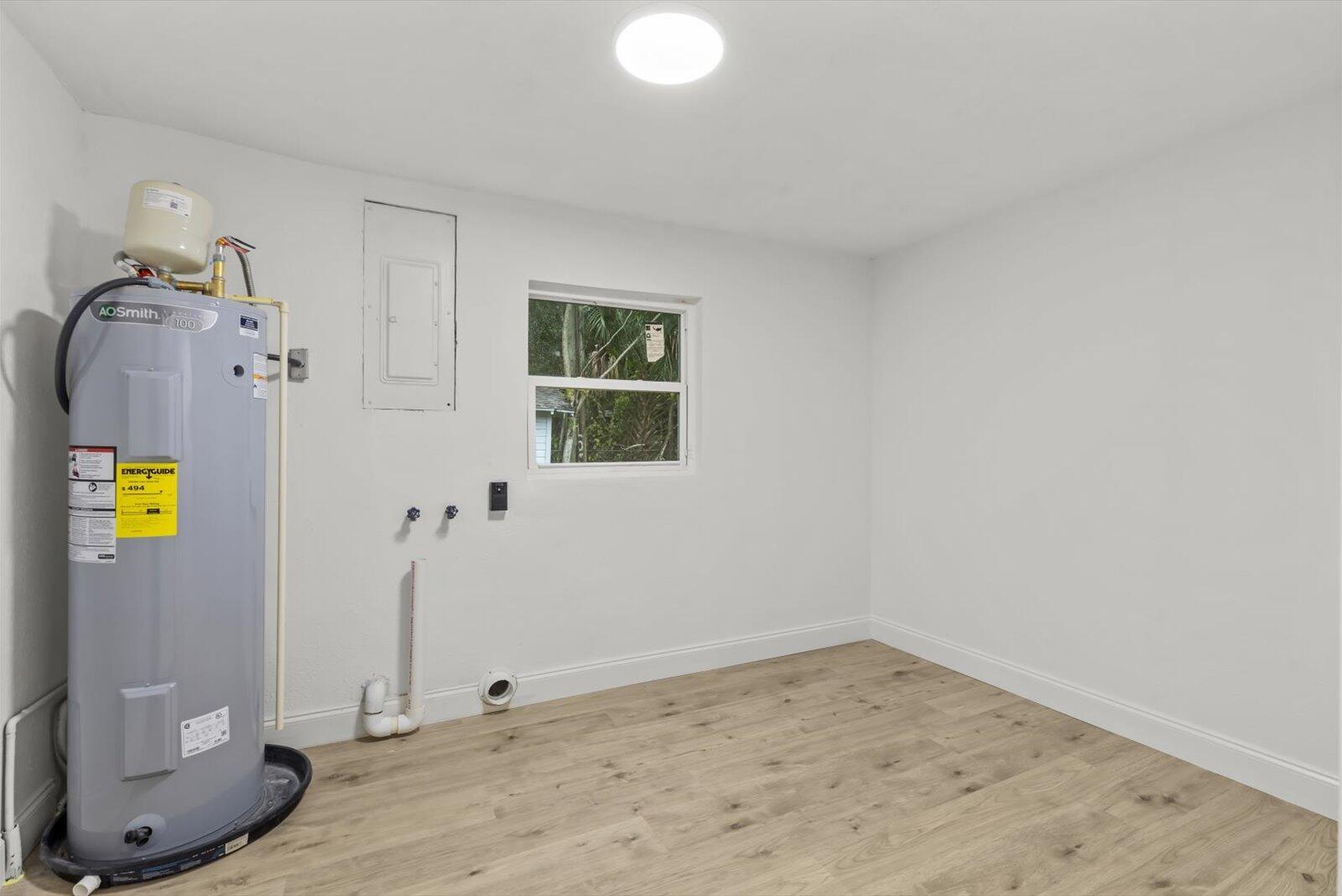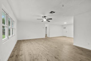 Large price improvement! Showings must be scheduled with Showingtime or Sentri. Exquisite 3-bedroom, 2-bathroom residence on large .41 acre property. Split floor plan. The gourmet kitchen boasts luminous Calacatta quartz countertops, bespoke soft-close shaker cabinetry, and premium high-end finishes, designed to inspire culinary excellence. Luxurious spa-inspired bathrooms, gorgeous vanities, and contemporary fixtures. Impeccable waterproof laminate flooring, freshly painted interiors and exteriors, and brand-new, top-tier appliances blend style with functionality. Enjoy effortless access to I-95, premier shopping, and dining, with the freedom of no HOA restrictions. Metal Roof 2016, Solar panels 2018, HVAC 2022. Solar panels paid off. Please see broker remarks.