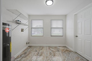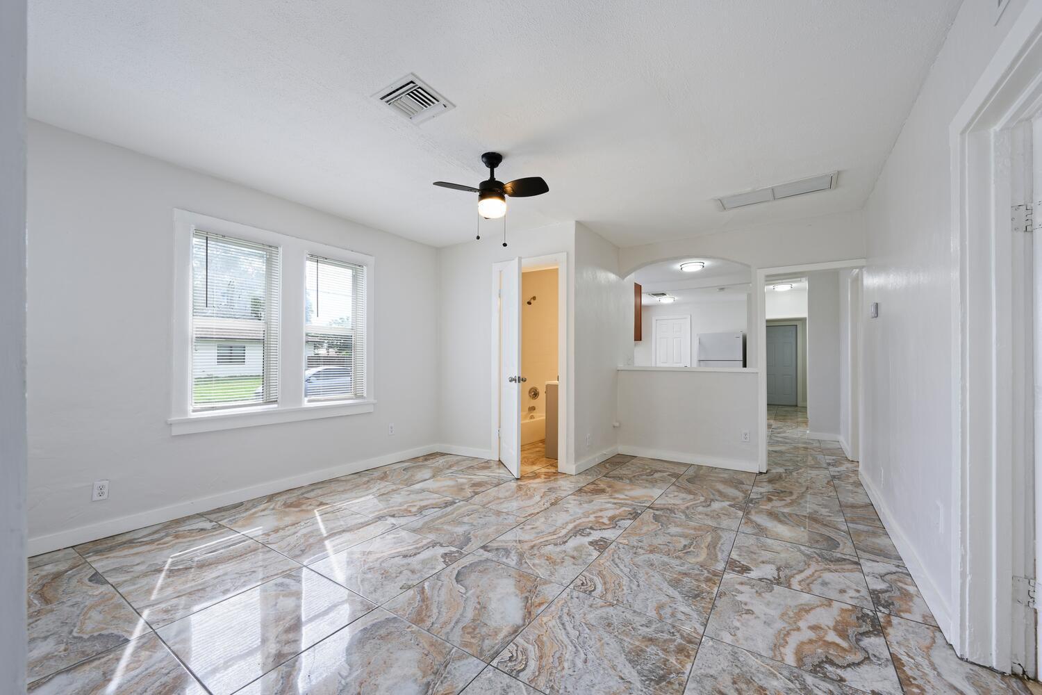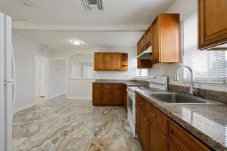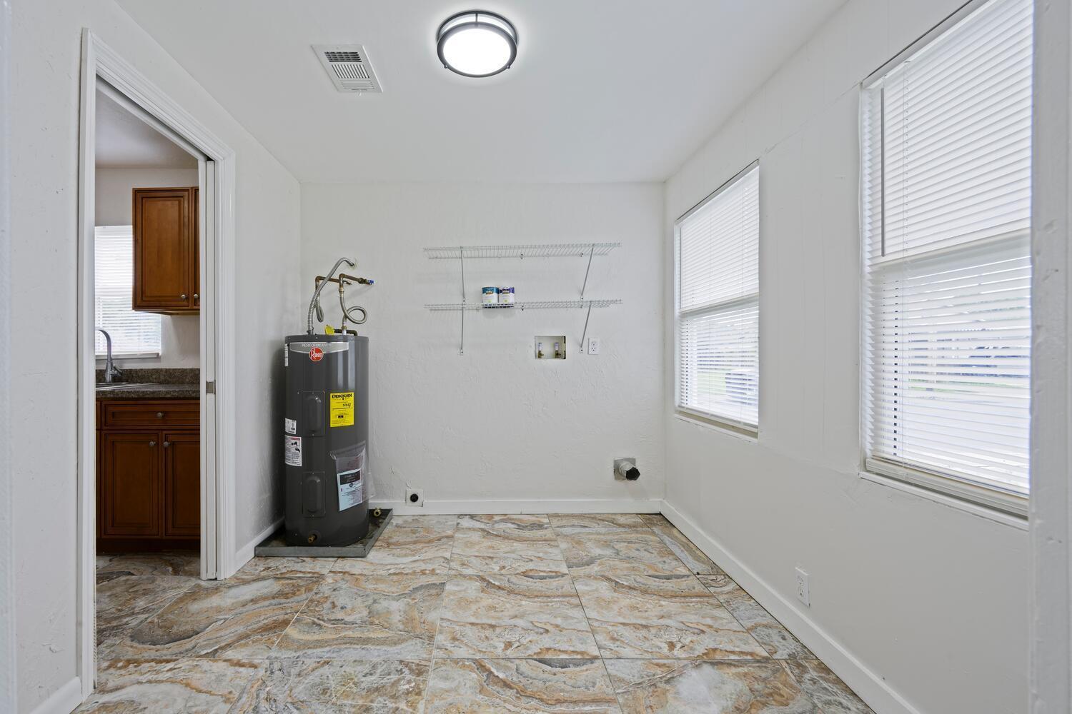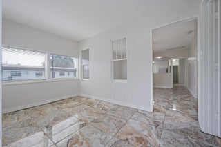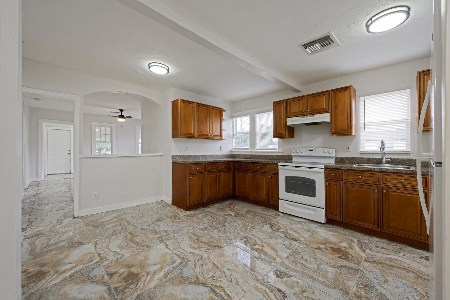 Discover this beautifully updated 4-bedroom, 2-bath Key West style home nestled on a generous 50' x 135' corner lot in the desirable Whispering Palms neighborhood. Remodeled with permit in 2016, this light-filled home features an open-concept kitchen with custom cabinetry, granite countertops, and newer appliances--perfect for entertaining or everyday living. Enjoy elegant porcelain tile flooring throughout, fully renovated bathrooms, and a spacious, dedicated laundry room. Updated windows/doors in 2015, offering peace of mind and energy efficiency. Dec. 2023 shingle roof, and the home comes with a 2025 termite treatment and warranty. Dual driveways and a detached carport, plus a boat/RV pad. This move-in ready gem offers the perfect blend of comfort, convenience, and coastal charm.