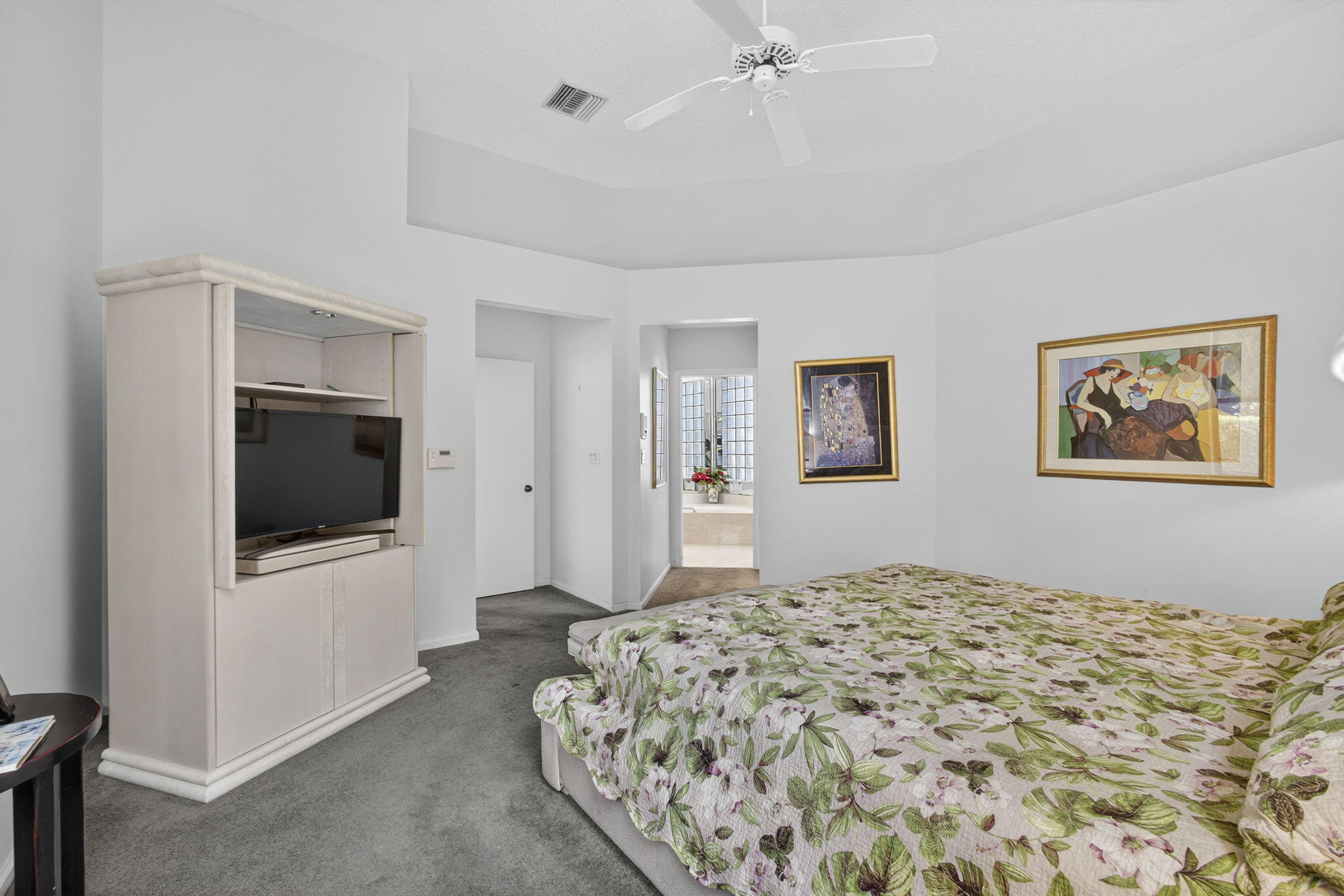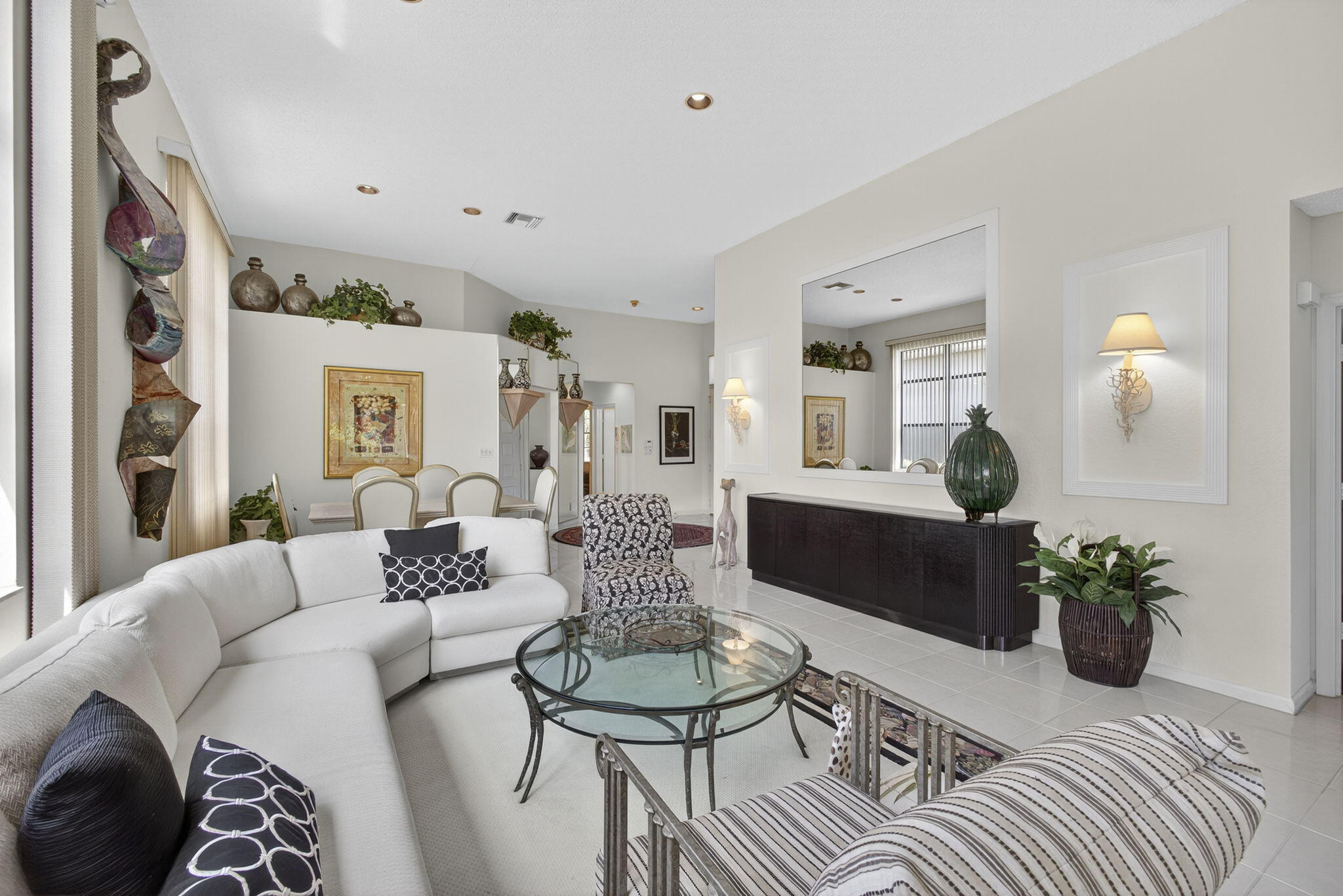 Immaculate 3BR/2BA residence with volume ceilings in Wycliffe Golf & Country Club. Desirable split floor plan and a large 3rd BR or Den/Office. Roof and A/C were replaced in 2017, providing important updates. The kitchen offers granite counters, pull-outs, and a built-in wine cooler, with sliding doors leading to the patio for easy outdoor grilling. Additional highlights include fitted closets in the bedrooms & hallway and a flexible layout that will adapt to your needs. The covered and screened patio overlooks a private, quiet fenced yard, perfect for relaxing or entertaining. This home has been well cared for and is neutrally decorated and a move in ready opportunity. Priced to update and design to your personal taste. Come home to Palm Beach County's premier country club at Wycliffe.Wycliffe Golf & Country Club Is a mandatory membership community, with one of the best lifestyles In South Florida. Showcasing two newly renovated challenging 18 hole championship golf courses, with contrasting styles. There are 14 Har-Tru tennis courts, with center court Stadium seating. The sports court features 8 pickle ball courts, plus 4 Bocce courts. Private dining room "Flavours" surpasses the highest expectation. The "Watermark", dining room continues to have great parties and entertainment, and who doesn't love our "Grill" for breakfast, lunch and dinner. Wait until you see "The Cliff". This lobby bar and lounge is the highlight of the recent renovation. In addition, we love our state-of-the-art fitness center, with Pilates studio and classes, aerobics, yoga, spin, water aerobics, personal trainers and more fitness classes than a person could take in a day. Thyre is our full-service spa, offering retail products along with fine services. Enjoy the sauna, steam, and Olympic Size Swimming pool. Wycliffe offers Ladies and Men's card rooms, clubs and organizations for every interest. Fabulous programs and special events, lots of dinner dances, trivia nights, shows and activities. When needed we even have physical therapy on campus. Best of all we are located just minutes from the International Polo and Dressage and Jumping events, at the Wellington Equestrian Center. Centrally located, Wycliffe has easy access to Boca Raton, Delray Beach, Palm Beach, City Place and the West Palm Beach airport. Wycliffe homeowners association provides Comcast high speed internet, telephone and cable TV to contain the X1 platform with whole-house DVR, High Definition and 3 additional HD boxes which cover up to 4 TVs with voice activated remotes, including HBO and Showtime. The high speed internet service of 150 mbps speed and telephone service, local and long distance calling, included in the HOA. All landscaping maintenance, sprinkler systems, exterior painting, pressure cleaning the roofs, and security is included in the quarterly HOA maintenance fee. Wycliffe has roving guards, paramedics on campus, monitored alarm systems, and manned gates. Yes, You Deserve It!