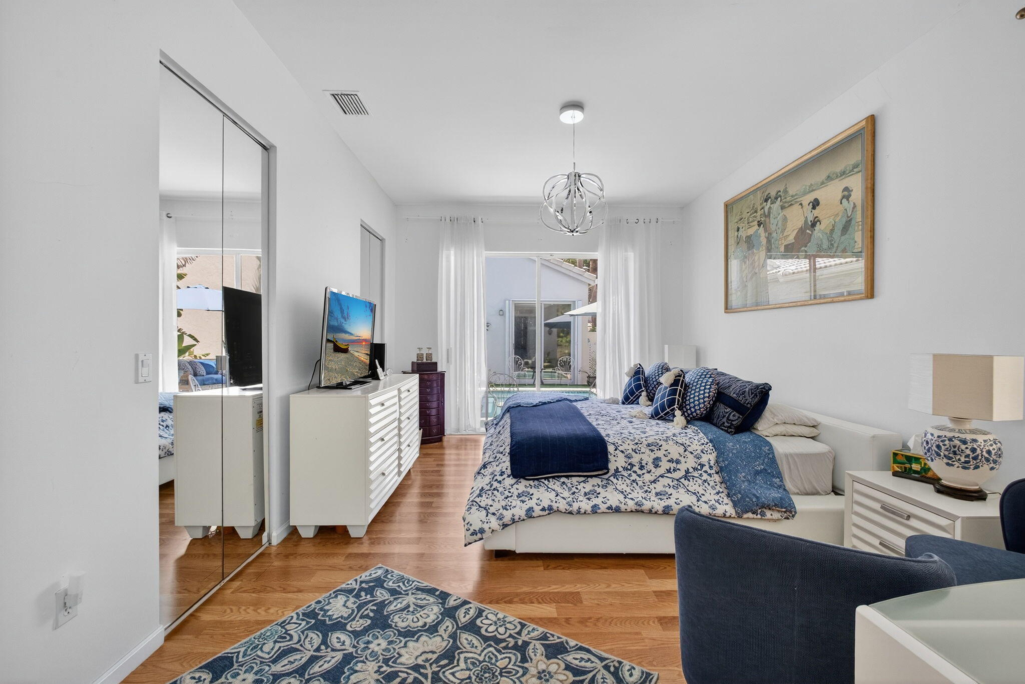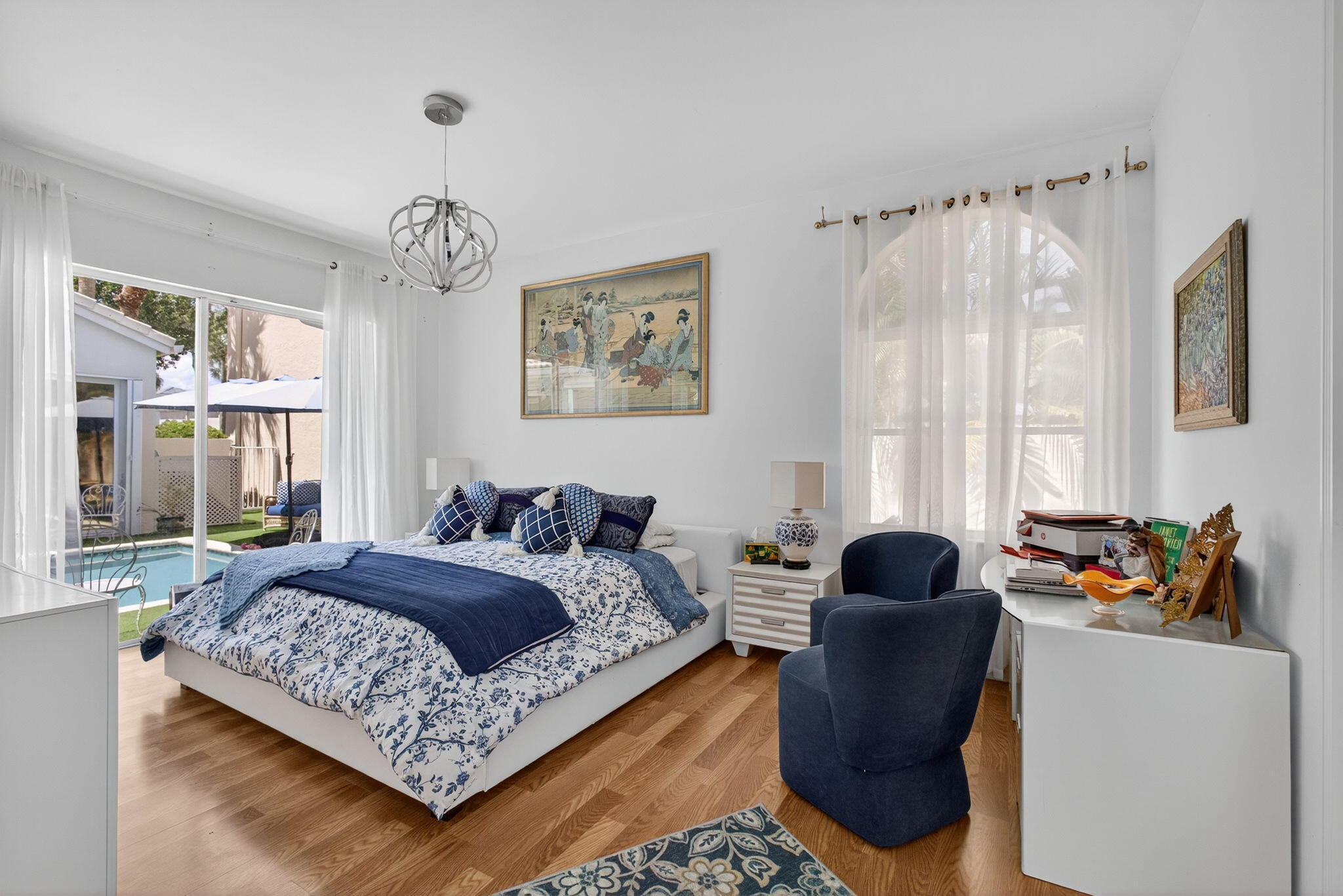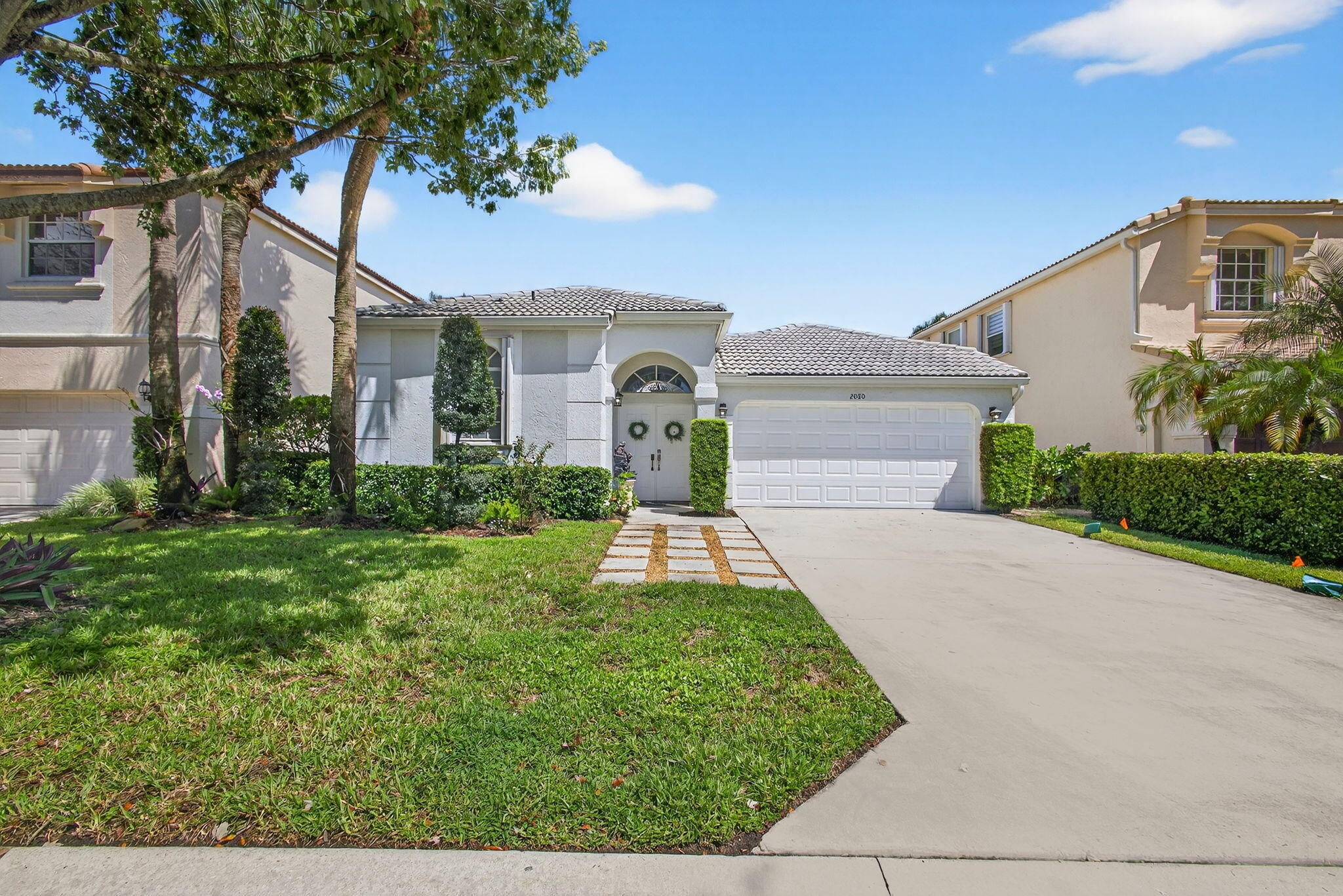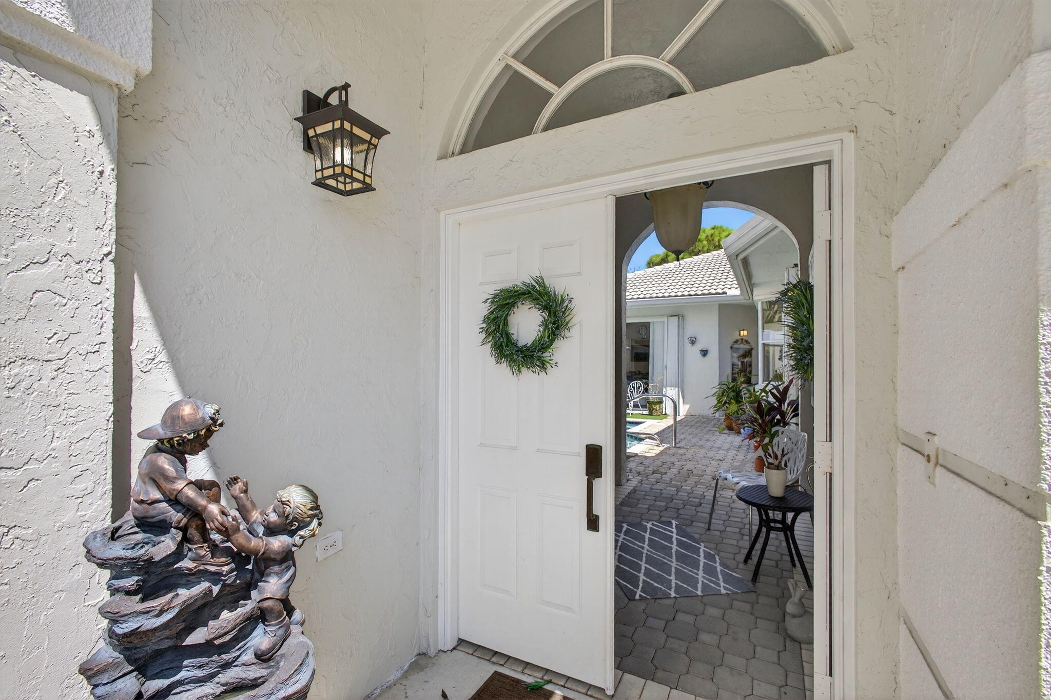 Rarely available single-story courtyard home perfectly situated on a private golf course lot! Experience the best of South Florida living with this distinctive floor plan, where the heart of the home opens to a private courtyard and sparkling pool surrounded by lush tropical landscaping. Start your mornings with coffee overlooking the tranquil fairways or unwind poolside in total privacy. The main residence boasts 2 bedrooms and 2 bathrooms, filled with natural light and highlighted by wood and tile flooring (no carpet!) The open airy design seamlessly blends indoor comfort with picturesque golf course views, creating a home that is both inviting and unique. The kitchen has been tastefully updated with plenty of cabinetry, Corian countertops,and an oversized stainless steel Kitchen Aid refrigerator - ideal for everyday cooking or hosting family and friends. A cozy breakfast nook with bay window, light-filled dining area, and spacious living room with sliders to the outdoor patio make the home feel open and welcoming. The primary suite is a relaxing retreat with 2 closets, direct access to the pool and a large bathroom featuring dual vanities, a Roman tub and separate shower. A comfortable guest bedroom and updated bath with a frameless glass tile shower complete the main home's generous living space. The charming guest house offers a private retreat with 1 bedroom, 1 full bath, its own entrance, and sliders leading to the pool - perfect for in-laws, teens, guests, or even a home office. The peaceful back and side yards are finished with low-maintenance artificial grass and provide plenty of room for seating and entertaining. All of this comes fully fenced and ideally positioned along the 1st hole of the Lakes Course at Bear Lakes Country Club, offering serene views and a rare opportunity to own such a distinctive layout. This unique courtyard floor plan rarely comes on the market - don't miss your chance to call it come! Live in one of the Palm Beaches most amazing golf course communities without having to pay a mandatory membership. LOW HOA fees include access to 2 community pools, well-maintained tennis facilities, racquetball courts, volleyball, basketball, playgrounds, and miles of beautiful, landscaped roads with wide sidewalks for biking & jogging. Conveniently located to all the BEST that West Palm Beach has to offer! Only minutes from main highways, restaurants & shops, beaches, Palm Beach Airport, City Place, Clematis Street, the new Outlet Mall, the Kravis Center for the Performing Arts and more!