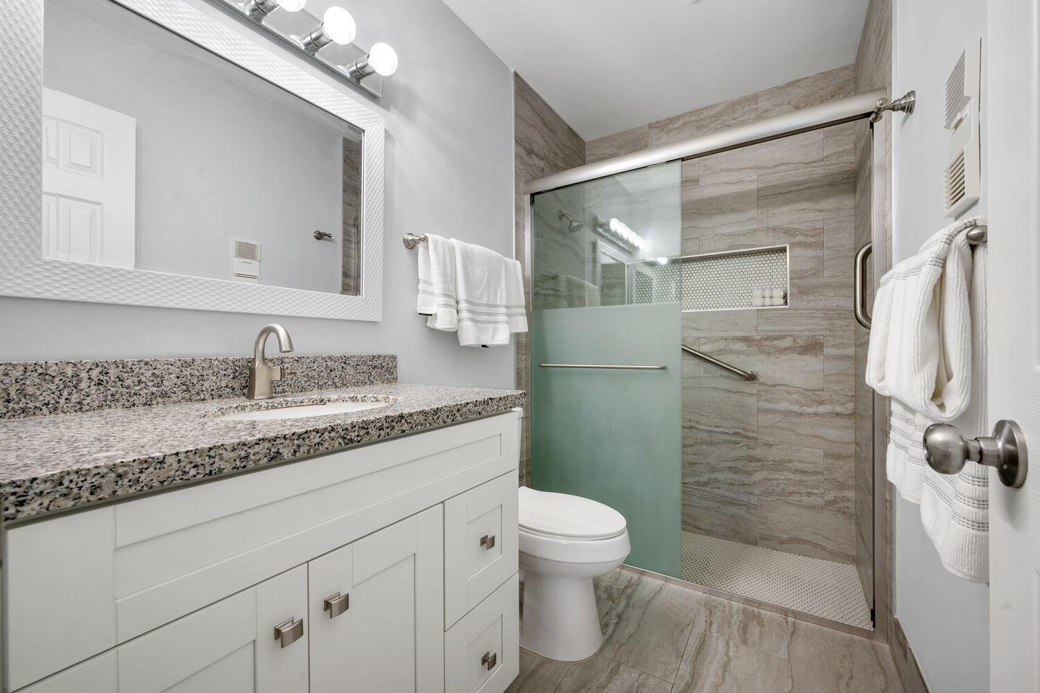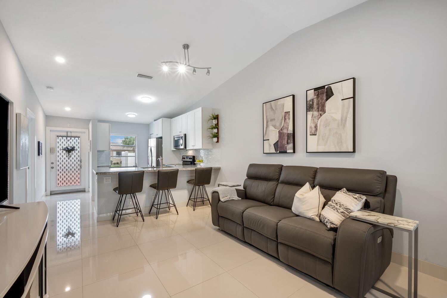 *55 Plus - Welcome to Whisper Walk, a highly sought-after manned gated community in Boca Raton. This completely remodeled 2 bedroom, 2 bathroom condo is move in ready. Tile flooring flow throughout, neutral tones, recessed lighting, and elevated ceilings create an open, airy feel. The modern kitchen features white shaker cabinetry, stainless steel appliances, a pantry, and lots of granite counter space. The master suite is relaxing with a walk-in closet, granite vanity, and step-in shower. Residents of Whisper Walk enjoy a plethora of amenities, including multiple swimming pools, tennis courts, a clubhouse, fitness center, shuffleboard, and more!Ideally located just minutes from the beach, Mizner Park, Delray Beach's Atlantic Avenue, premier restaurants, shopping, golf courses, and places of worship. Utilities such as water, cable, and trash service are included, making it an easy choice for those seeking a stress-free move-in experience.
