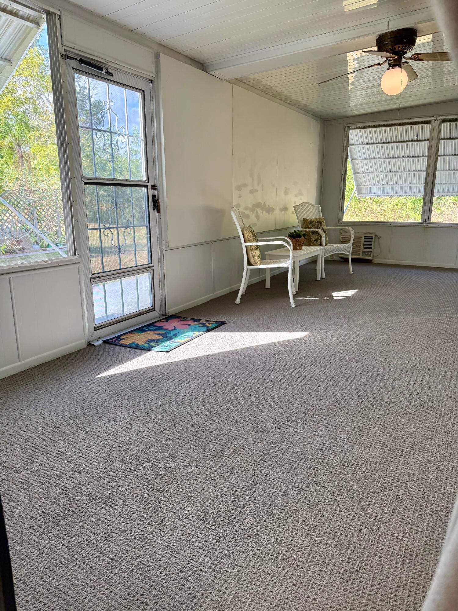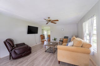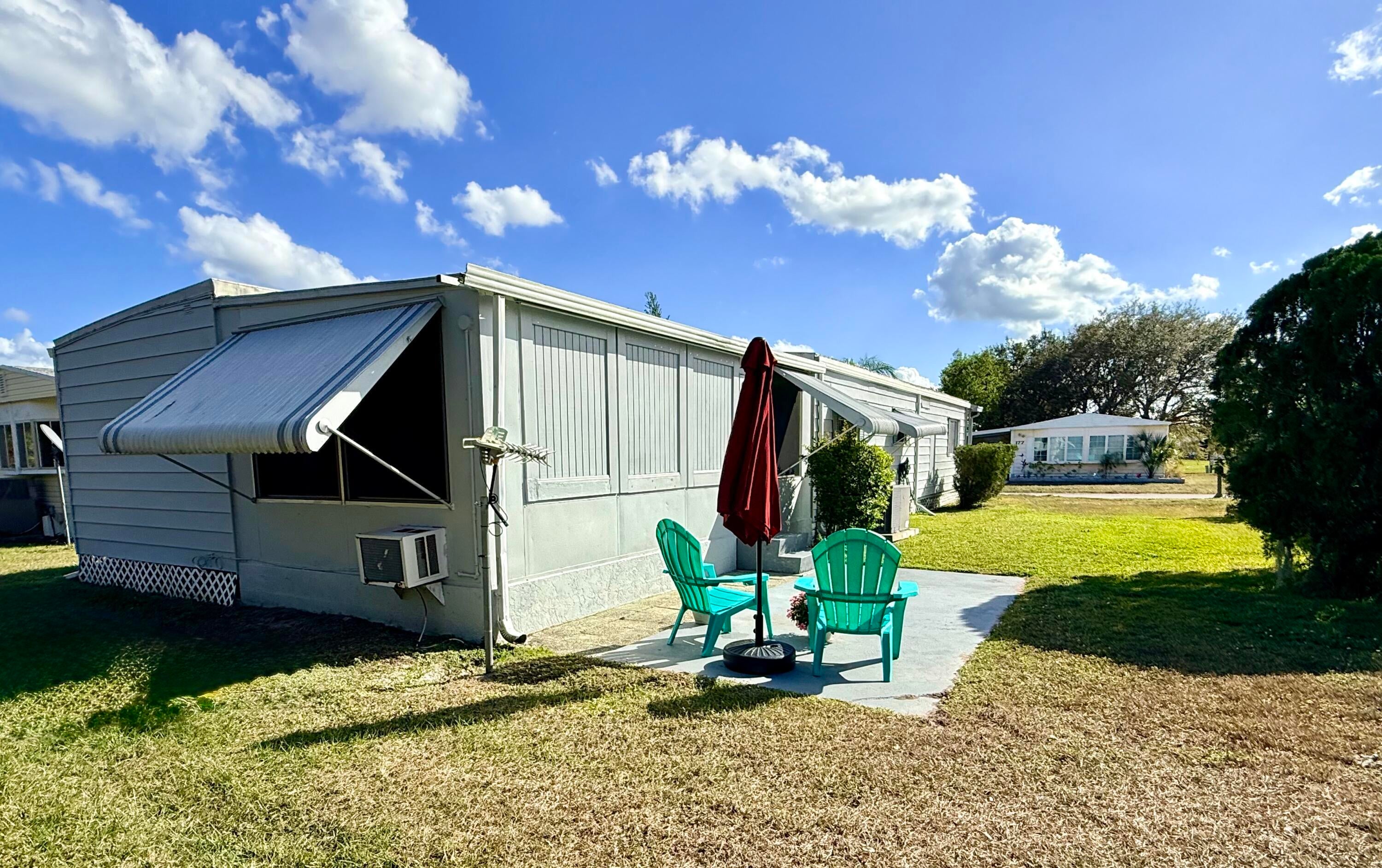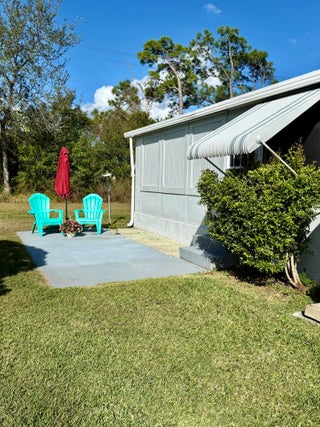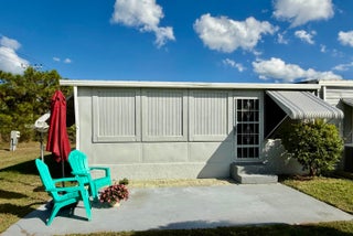 Pup's paradise--a beautifully maintained 2-bedroom, 2-bath in the Pet Section. Move-in ready home - spacious split-bedroom s, updated kitchen, gray laminate flooring & a french drain. Indoor laundry and a large screened-in Florida room overlooking a private backyard - perfect for dog lovers, gardeners, grillers, bird watchers. Land lease includes property taxes, lawn care, trash removal, and access to an impressive array of amenities: golf, pool, pickleball, tennis, bocce, billiards, clubhouse, library, and more. Whether you're looking to stay active or simply unwind by the pool, this vibrant 55+ community offers something for everyone. Future residents must be approved by Spanish Lakes.