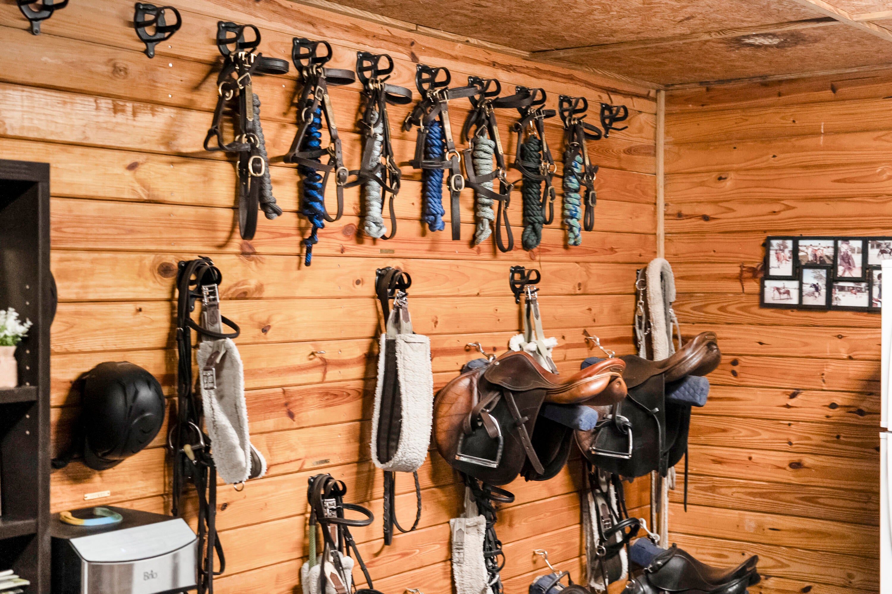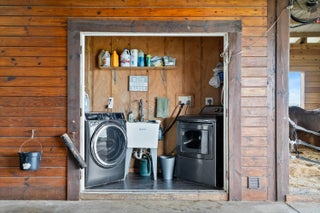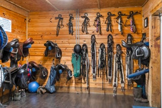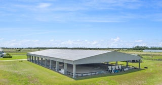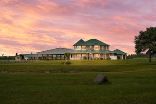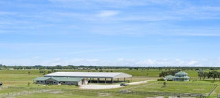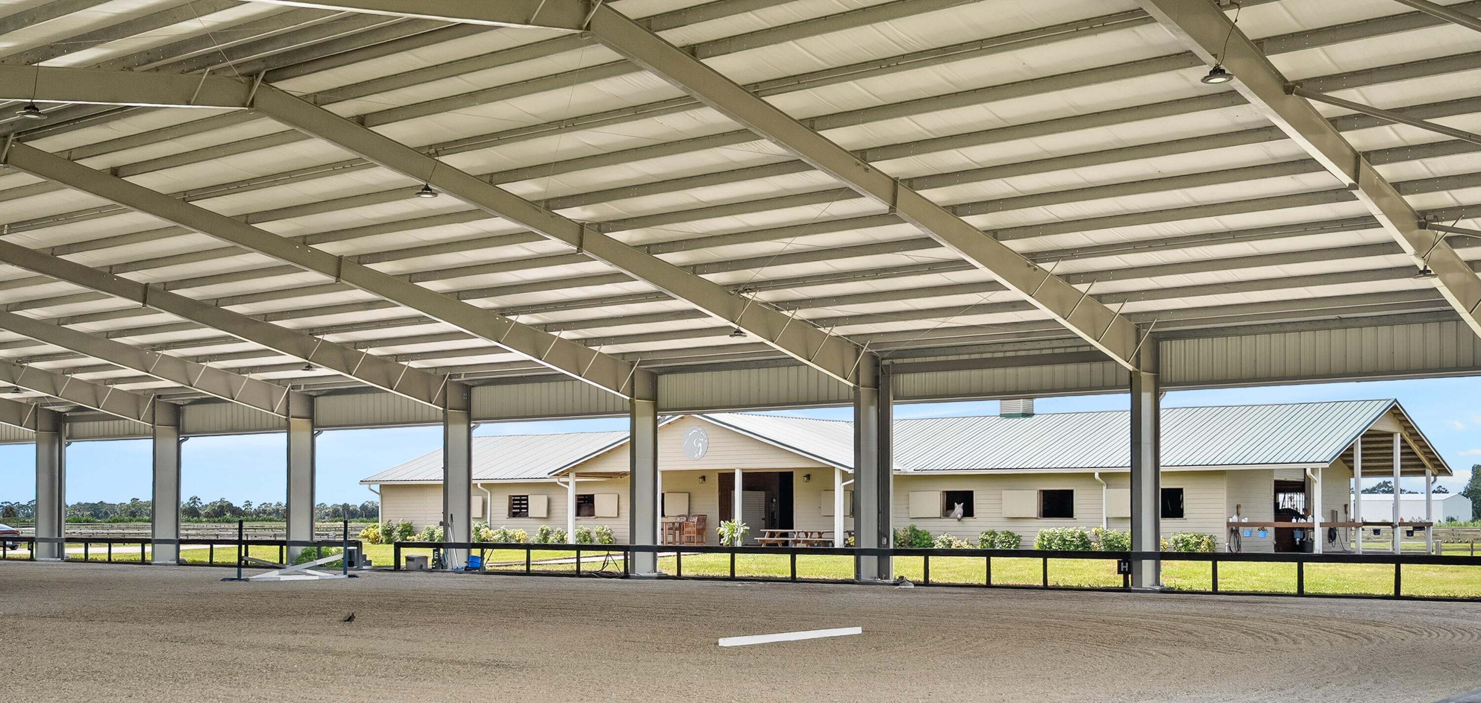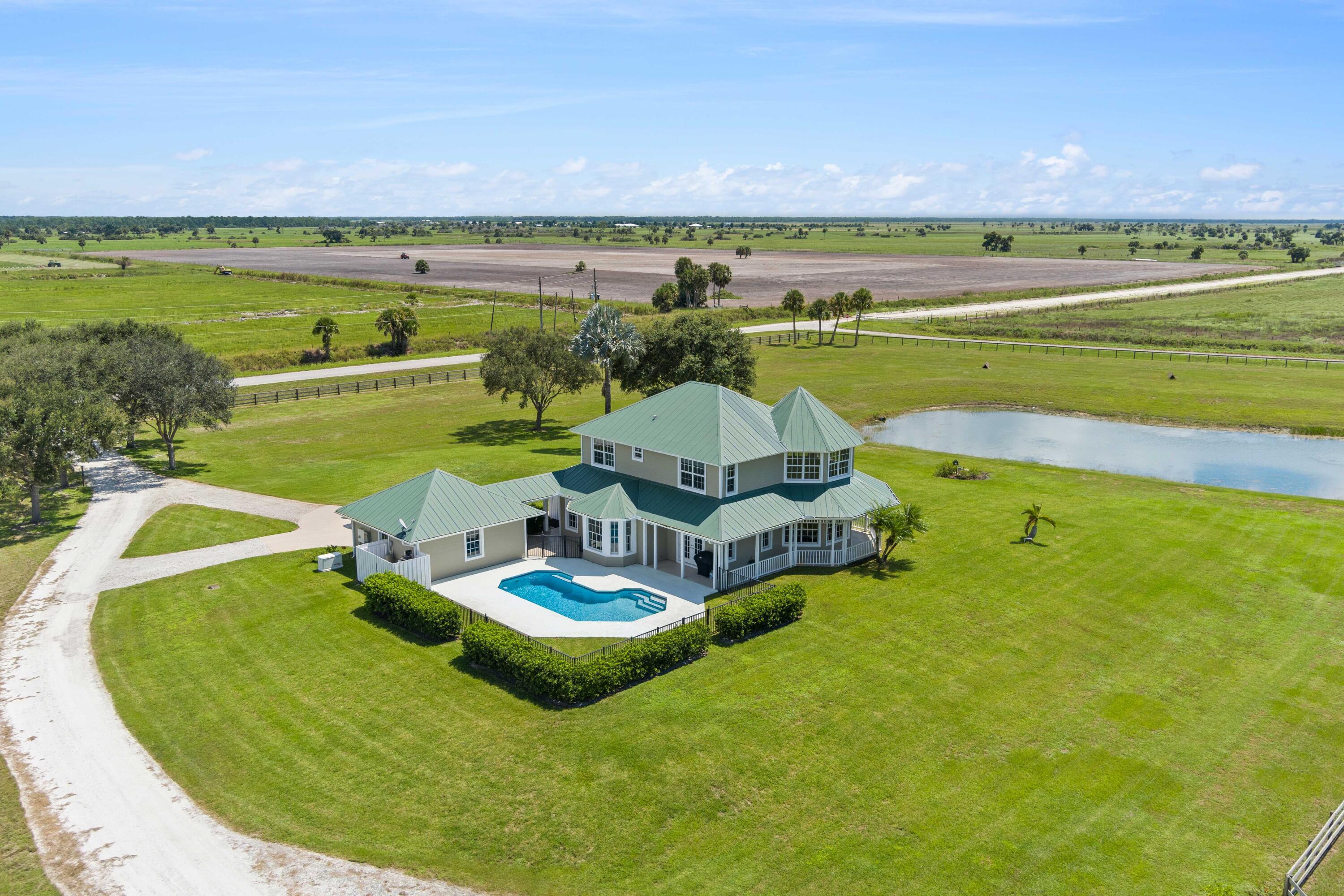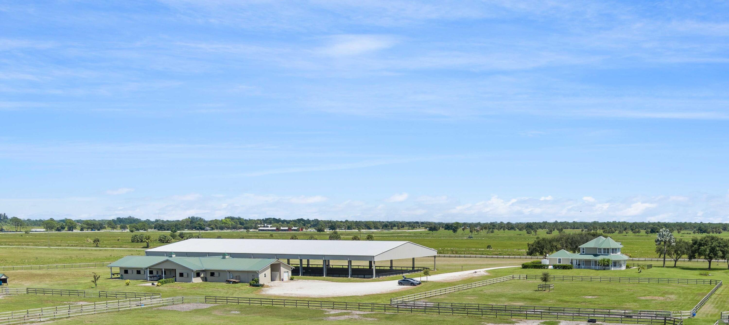 Turnkey Equestrian Estate with FULLY FURNISHED Home. This thoughtfully designed and functional equestrian facility offers a 15-stall center aisle barn with A/C tack & feed rooms, 1/2 bath, washer/dryer, grooming areas, wash racks, spray foam insulation, and fans for horse comfort. Ride year-round in the 120'x230' COVERED ARENA (2021) with Reiten Right footing and mirrors. The property includes 6 large paddocks, cross country fences, and secure perimeter fencing. The Stunning 2300 sqft 4BR, 2.5BA plantation-style home features a wraparound porch, main-level primary suite, stainless kitchen, pool, double garage, whole-home generator, metal roof, and newer A/Cs. Enjoy sunsets over the fully stocked pond, fenced yard, and pool area. Sale includes Gator, Zero Turn Mower, and all farm equipment.