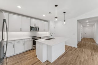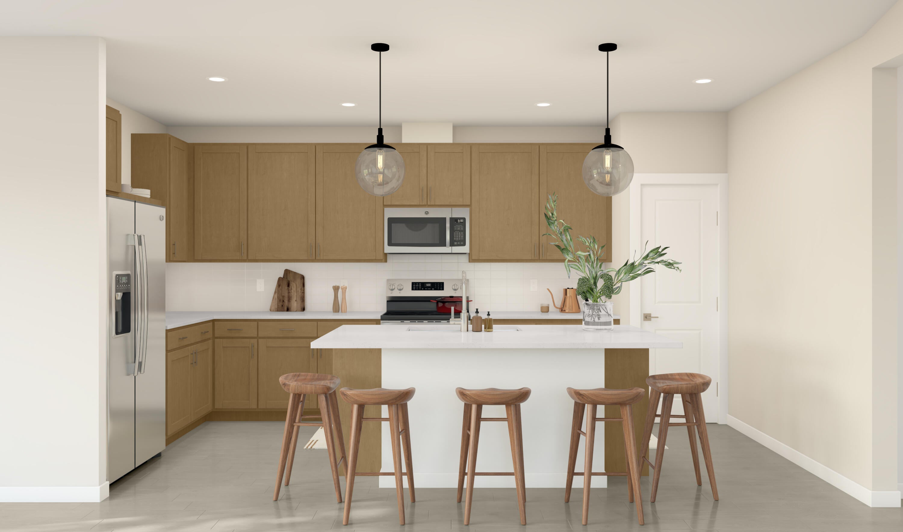 area and great room under vaulted ceilings, creating a bright, airy living space. The spacious kitchen, featuring Winstead Birch cabinets, centers around a Carrara Miska quartz island, ideal for gathering and entertaining. The private primary suite features a walk-in closet and a spa-inspired bath with dual sinks for added convenience. Extend your living space outdoors with the covered patio off the great room, perfect for everyday relaxation or hosting. This home will be available in December!