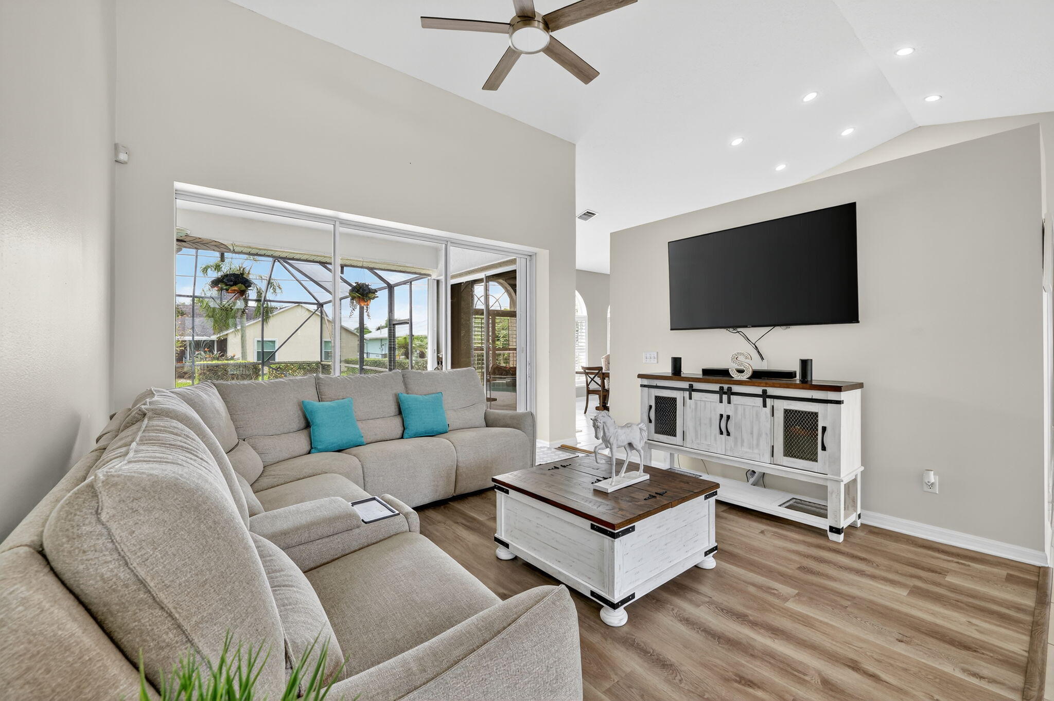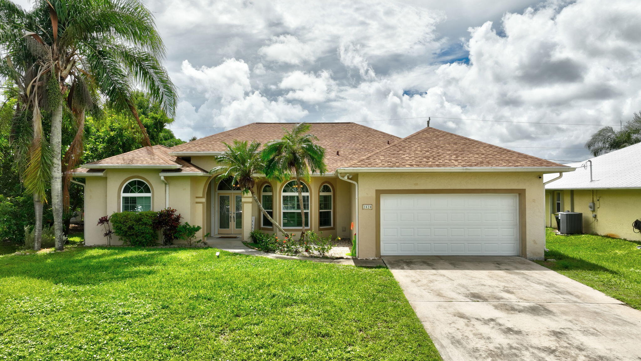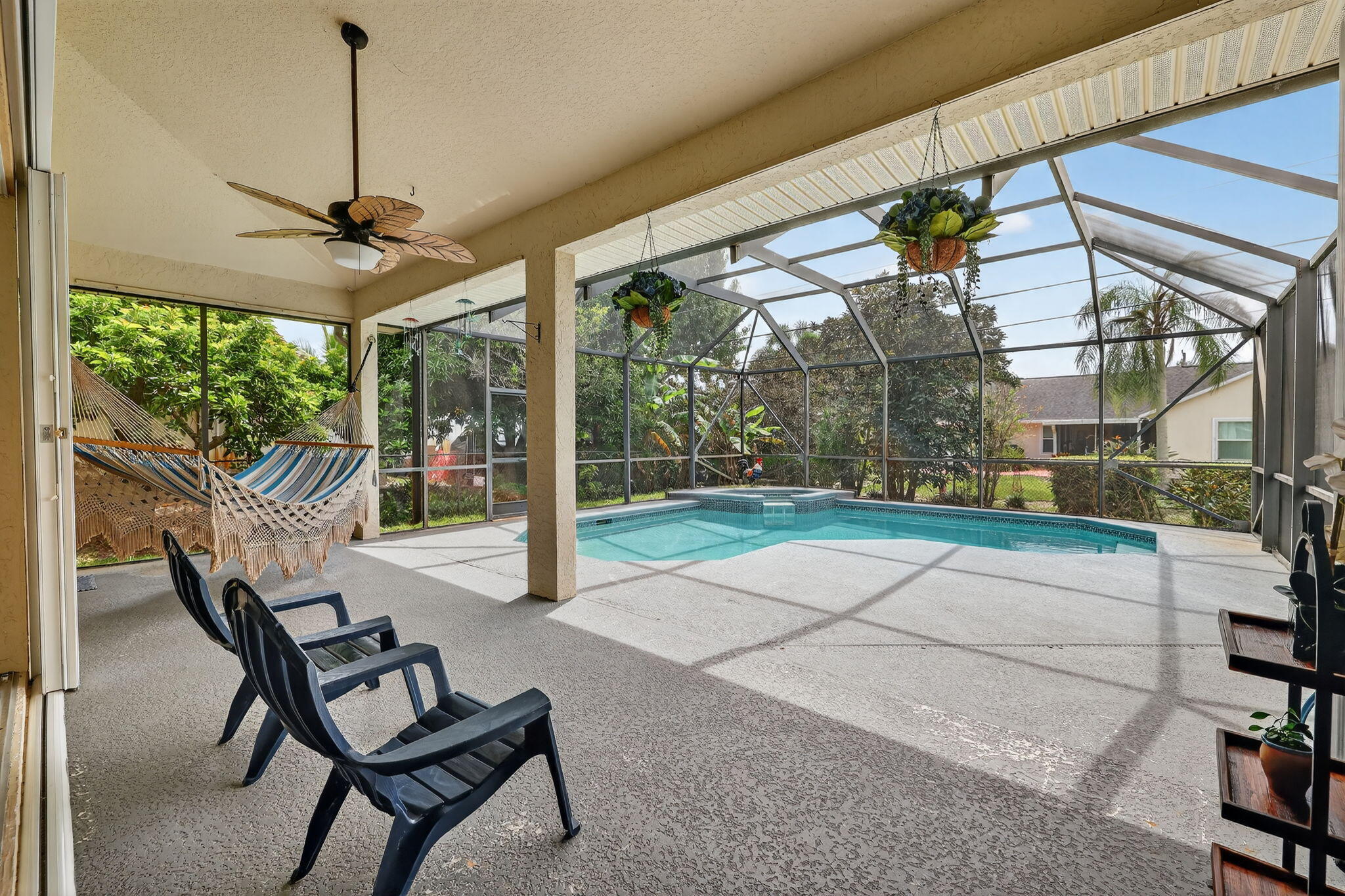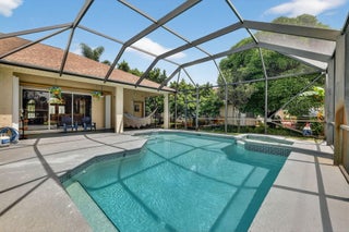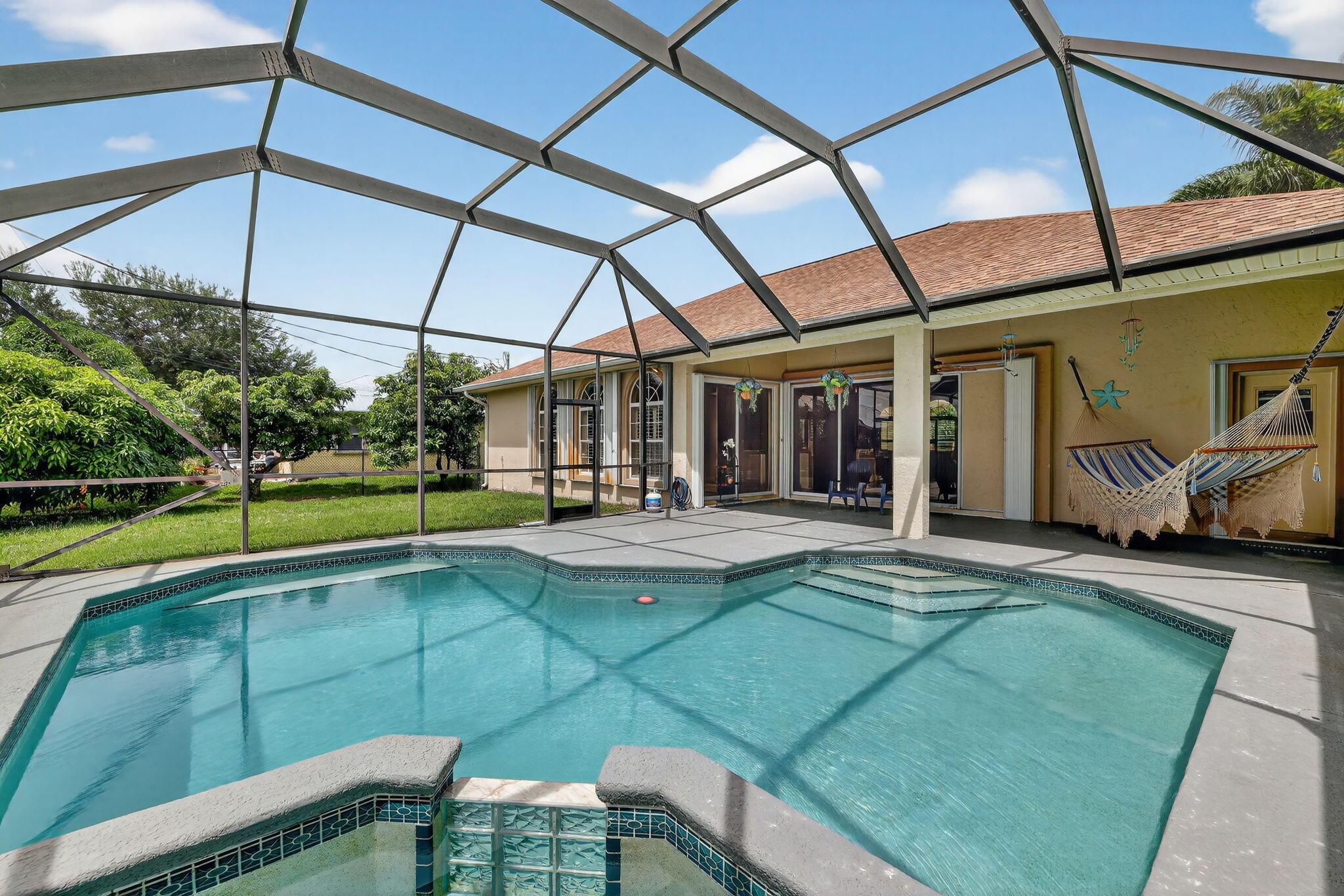 Discover this inviting 3-bedroom, 2-bath home with nearly 1,900 sq ft of living space and a comfortable split floor plan. Step outside to your private screened saltwater pool and spa with colorful lighting, perfect for both relaxing evenings and weekend gatherings. Recent updates include a 2021 roof, newer water heater, Nest thermostat, and partial impact glass. Inside you'll find vaulted ceilings, plantation shutters, and plenty of natural light. The yard is fully fenced and features fruit trees, with irrigation on well water and the home on city water. Accordion shutters add peace of mind and potential insurance savings. Conveniently located near boat ramps and everyday essentials, with no HOA. This home is move-in ready and waiting for you.