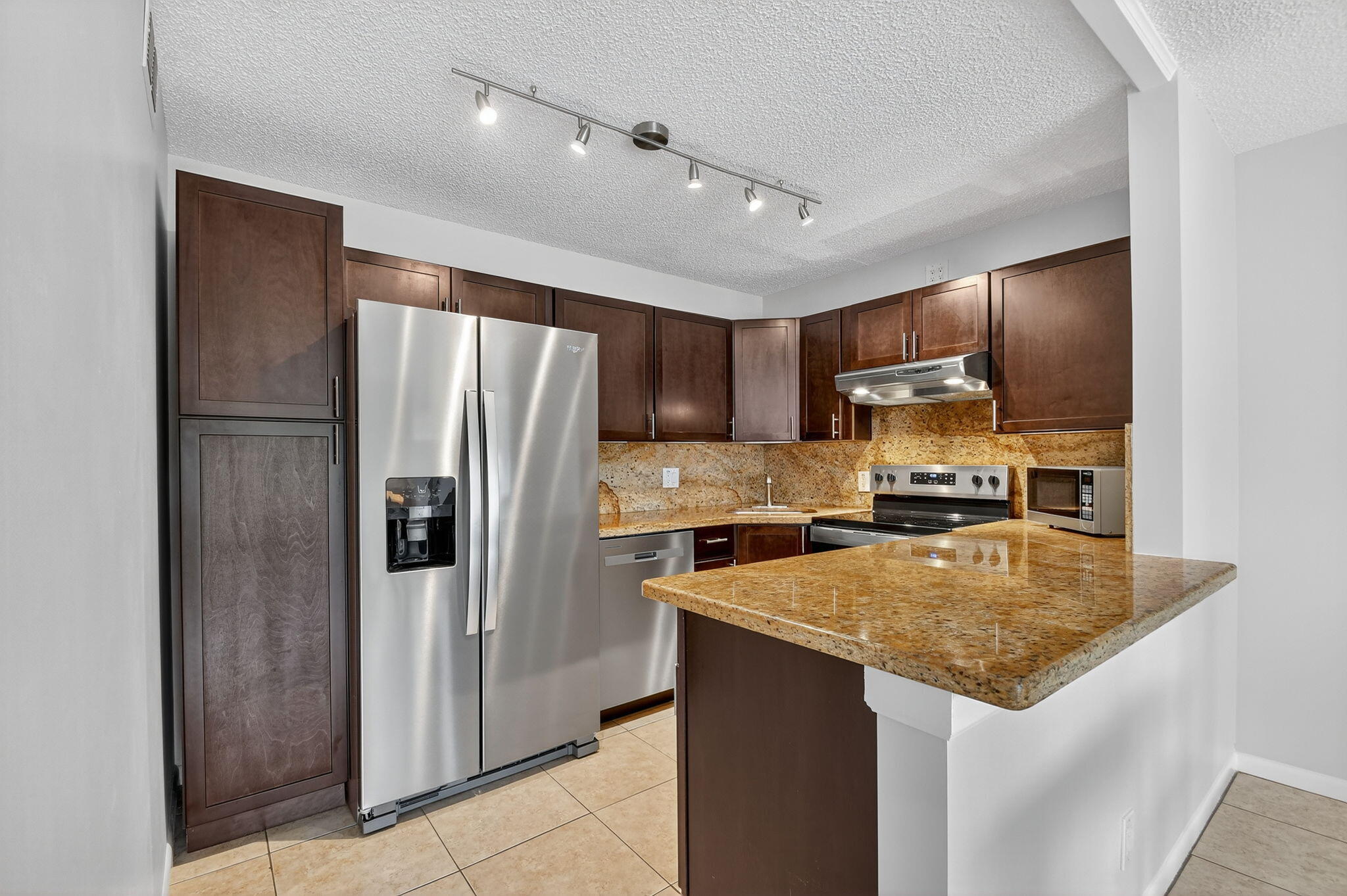 Wonderful updated unit with amazing lake views .New roof, New AC unit ,Granit kitchen counter & backsplash. Brand new Whirlpool electric stove, fridge & dishwasher . Brand new faucets( kitchen, bathrooms), freshly painted unit , modern bathrooms cabinets, extra walking closet. HOA included building insurance , roof , water , cable , common area & heated water in the pool This is located walking distance to the club house and has one of the best locations and water views you can have in Palm Club. 2 bedroom 2 bath with laundry room. Hoa includes water, basic cable, exterior insurance, lawn care, 24 hour man gated security ,heated pool and common areas. This is the home you have been looking for!