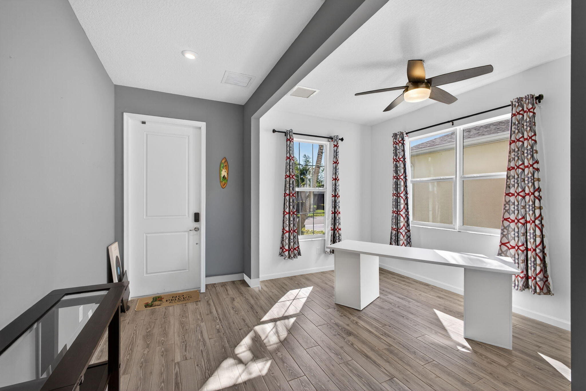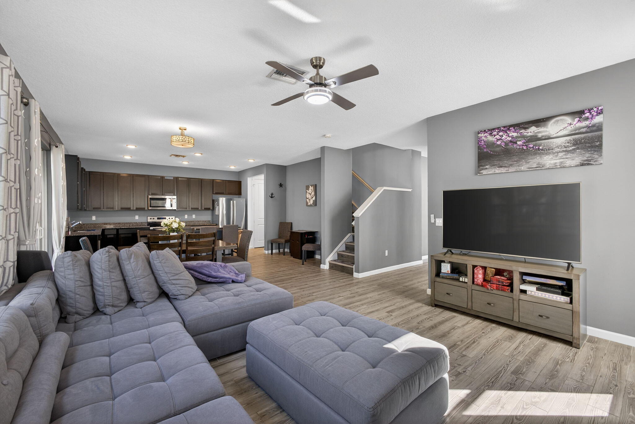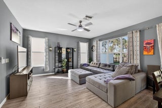 Beautifully maintained 4BR/2.5BA in gated Solcera. Built in 2021, this two story features an open plan with upgraded tile flooring, a modern kitchen with an oversized island, pantry, and stainless appliances. Upstairs offers a primary suite with double vanity and walk in closet, three guest bedrooms with walk ins, and a laundry room. Fenced yard backs to a preserve with room for a pool. Impact windows, two car garage, smart fans, and ample storage. Solcera amenities include a wonderful pool, clubhouse, dog park, and playground. Low HOA $259/mo includes landscaping and common maintenance. Convenient to Turnpike, I 95, Wellington equestrian activities, shopping, dining, airport, and beaches.