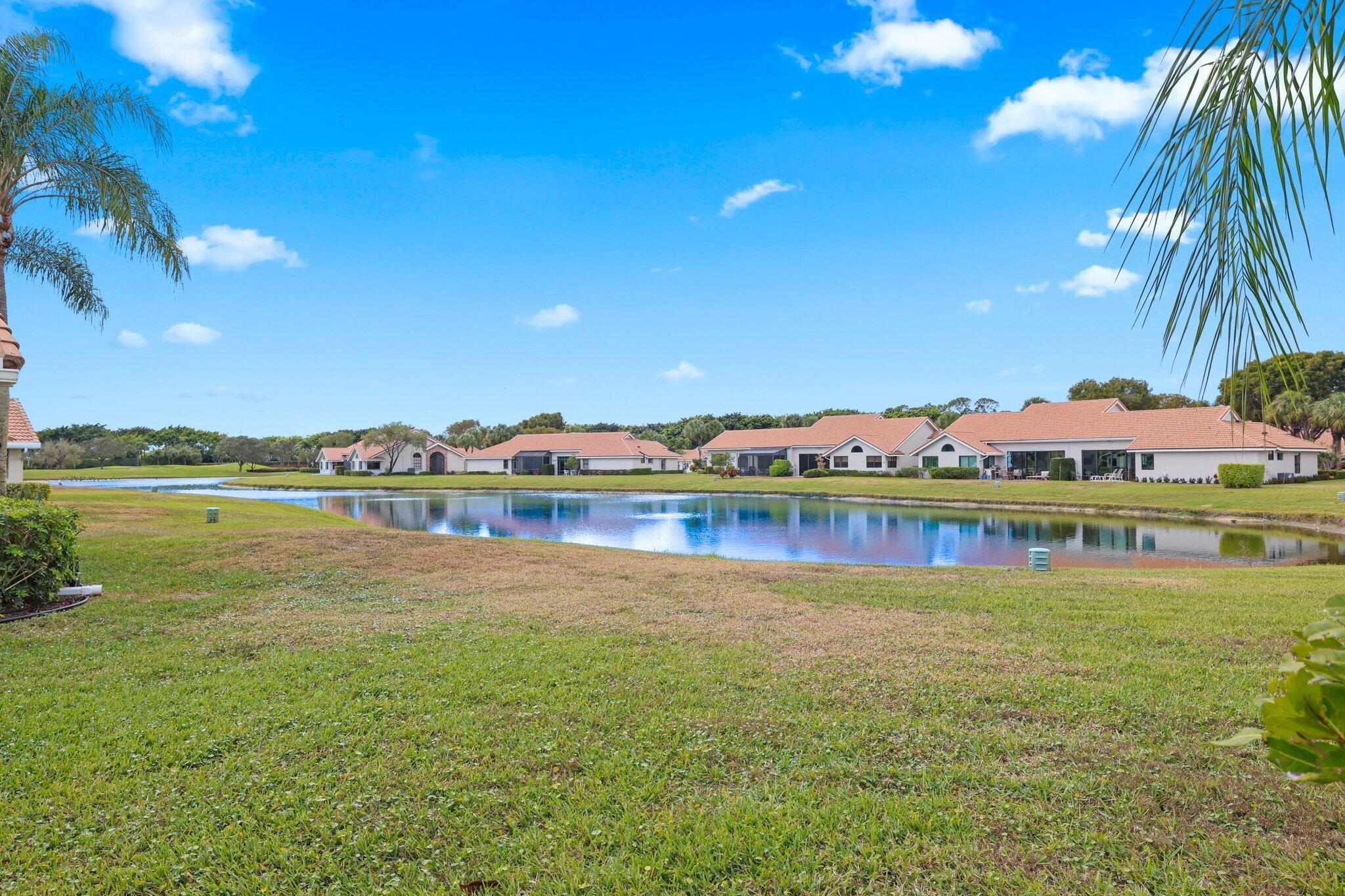 FRESHLY PAINTED OUTSIDE! Welcome to this spacious villa in Boynton Beach that offers the privacy and comfort of a single-family home. From the moment you arrive, you'll appreciate the private driveway and garage, creating a completely secluded feel. This home features an excellent floor plan with a beautiful lake view, no carpet, and accordion shutters. Enjoy breathtaking Florida sunsets from your patio and sunroom. Aberdeen Country Club requires a $90,500 membership for the ultimate South Florida lifestyle. Residents enjoy world-class amenities including an 18-hole golf course, 15 Har-Tru tennis courts, pickleball, bocce, a state-of-the-art fitness center, an aquatic facility with a resort-style pool, and a cafe. Make this villa yours today.