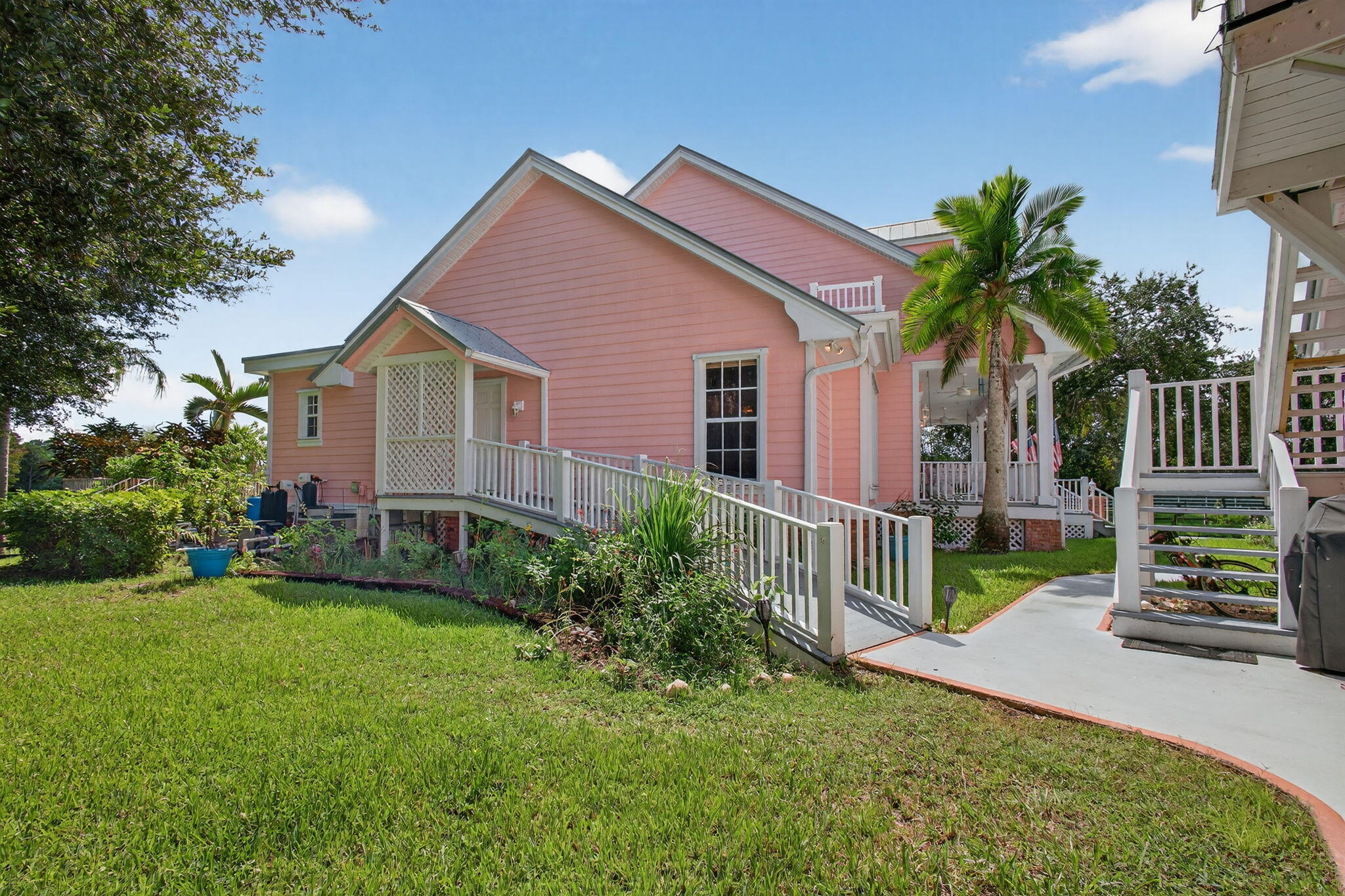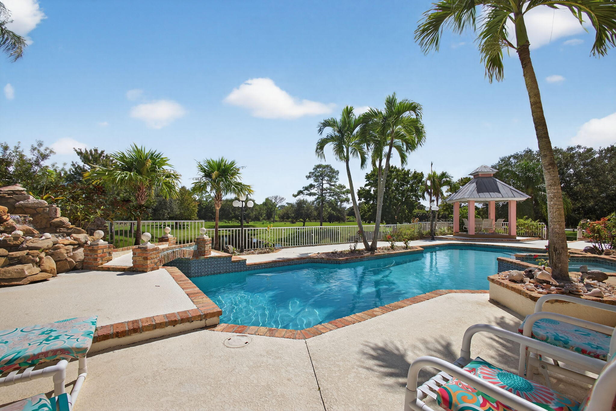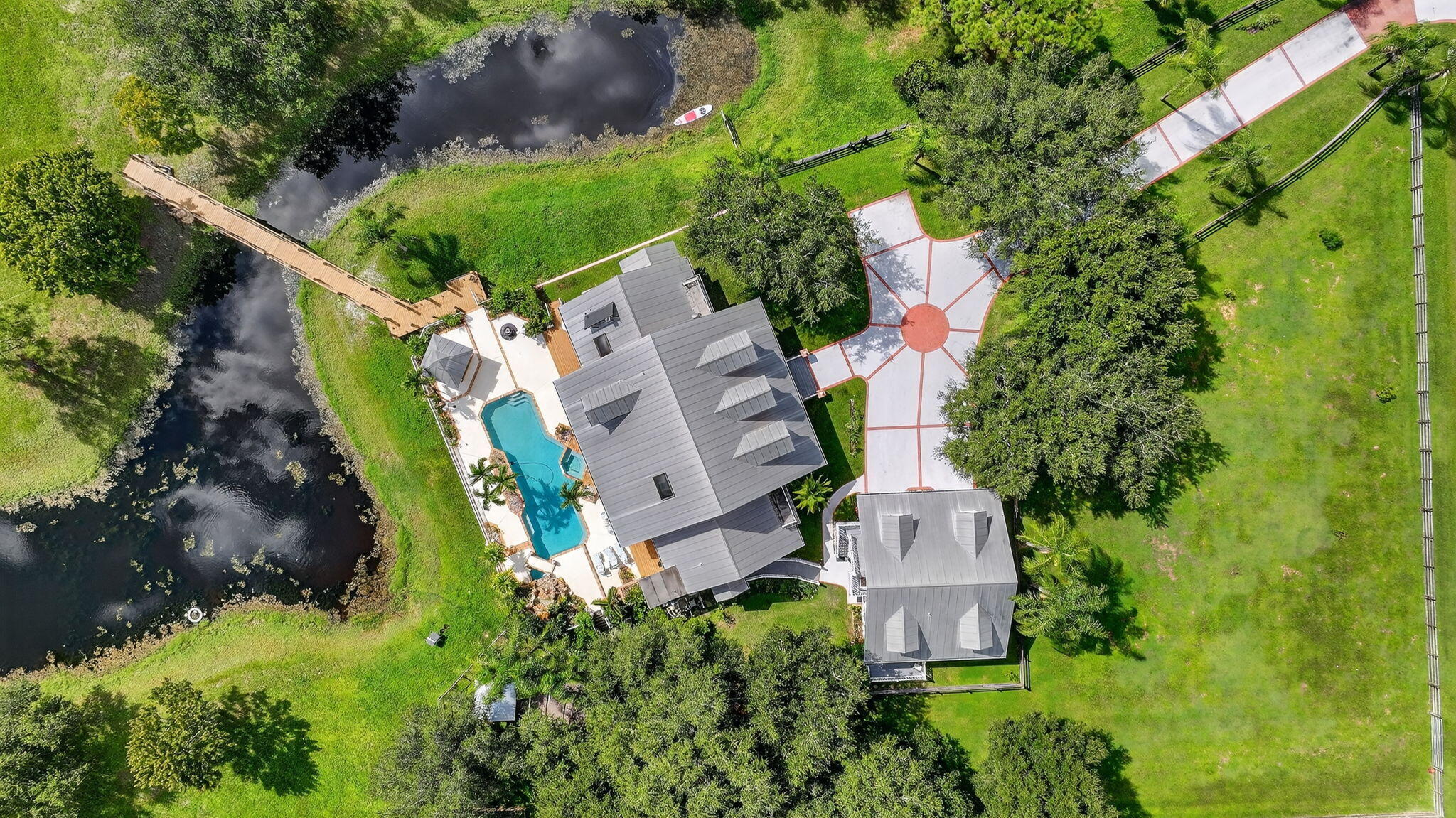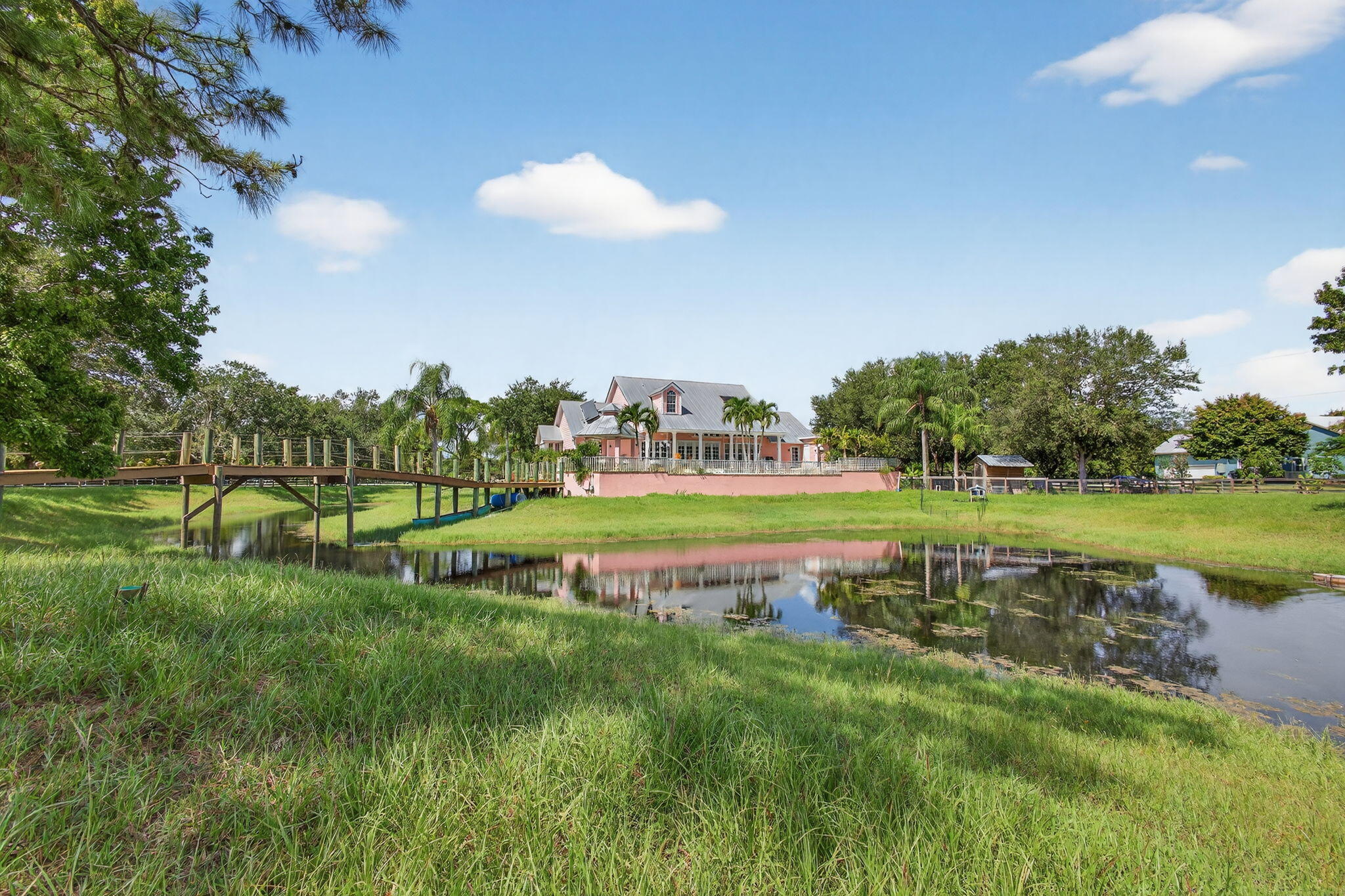 Every house has a story and this beloved farmhouse in Palm City has love and laughter in every chapter. The picturesque setting of 4.39 fully-fenced acres, mature trees, and a wooden bridge over a pond frequented by ducks, is the backdrop for this four bedroom, four bathroom home. Greet your guests from the covered porch. Gather in the living room, retreat into the family room for television or quiet time, or wander into the open and airy country-kitchen for a quick bite or a savory meal. Dine al-fresco on the back porch overlooking the pool, spa and scenic waterfall or head upstairs to the loft, a perfect space for an art studio, fitness room. An over-sized two-car garage with TWO attached guest apartments, each with its own kitchen, completes the package. Chicken coop does not convey.Close to horse trails yet easy access to town amenities.
