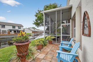 Welcome home! Discover comfort, style, and peace of mind in this beautifully updated and meticulously maintained 3 bedroom, 2 bath waterfront home, perfectly situated on a quiet cul-de-sac. This fully furnished property is the ideal retreat, vacation home, or full time residence offering both modern upgrades and serene water views. Step inside to find a spacious split bedroom floor plan designed for privacy and functionality. The home features high ceilings and an open concept layout, creating a bright and airy atmosphere throughout. The eat-in kitchen features granite countertops, stainless steel appliances, abundant cabinetry, and a layout perfect for cooking and entertaining. Recent upgrades include a new roof (2024), new AC system (2025), new appliances, accordion shutters and more...Enjoy serene water views from the kitchen, living area and master bedroom. Relax or entertain on the covered and screened patio over looking one of the many waterways in River Bridge. River Bridge offers resort style living. Amenities include clubhouse, multiple swimming pools, tennis and pickle ball courts, play ground, fitness room, billiard room and more. HOA fee includes cable, wifi, and lawn maintenance Additional Features Include- Exterior Paint (2025) Stamped Concrete Driveway No Carpet-Tile and Laminate Flooring Throughout New Lighting and Fans New Water Heater Epoxy Floor in Garage