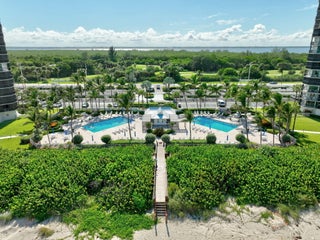 Wake up to sunrise over the blue ocean water at the sought after island Dunes II community. This beautiful spacious 1 bedroom, 2 bath condo has expansive views of the ocean from the bedroom, living room and covered balcony. The bright kitchen boasts a cozy breakfast nook looking out over the intercoastal. All tile floors and crown molding make this unit elegant and clean. Accordion shutters for storm protection on all windows. Island Dunes has direct beach access, 2 heated swimming pools, hot tub, sauna, fitness center, 9-hole golf course, 6 tennis courts and 6 pickleball courts. The lobby & elevators updated and new roof in 2024. Island Dunes has passed its Milestone report and there are no pending special assessments at the time this listing was entered. Large A/C storage. W/D in unit.Lockers on the ground floor. All concrete re-construction completed.A/C approx. 2 years old and W/H about 5 years old. Rental after one year of occupancy, min. 90 day period. Bonus! Automatic membership into Island Dunes Country Club across the street on the intercoastal. Pickleball included and small fee for golf and tennis. Close to shopping, great restaurants and entertainment in Stuart and downtown Jensen! Take a look! Make an offer!
