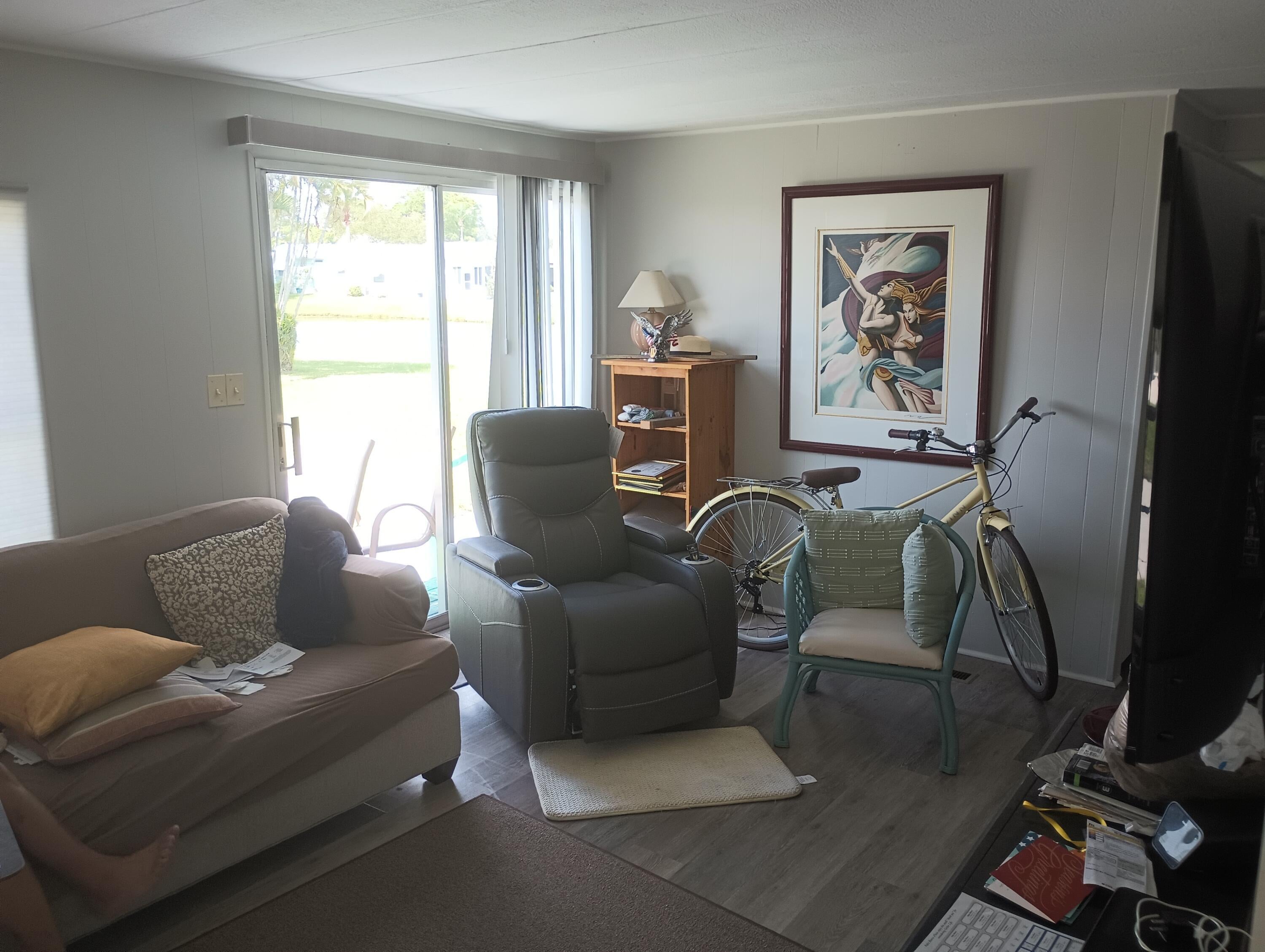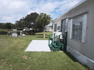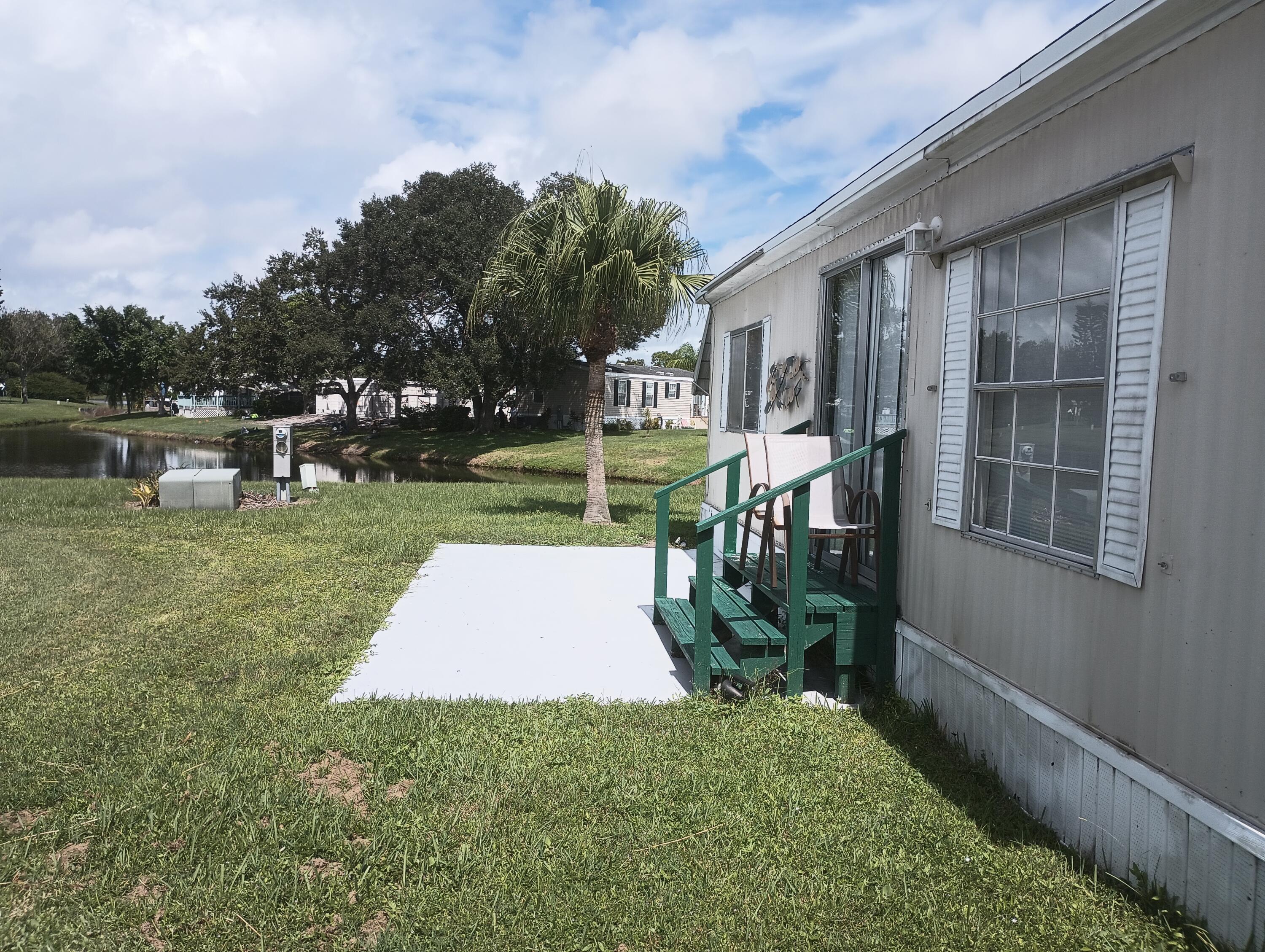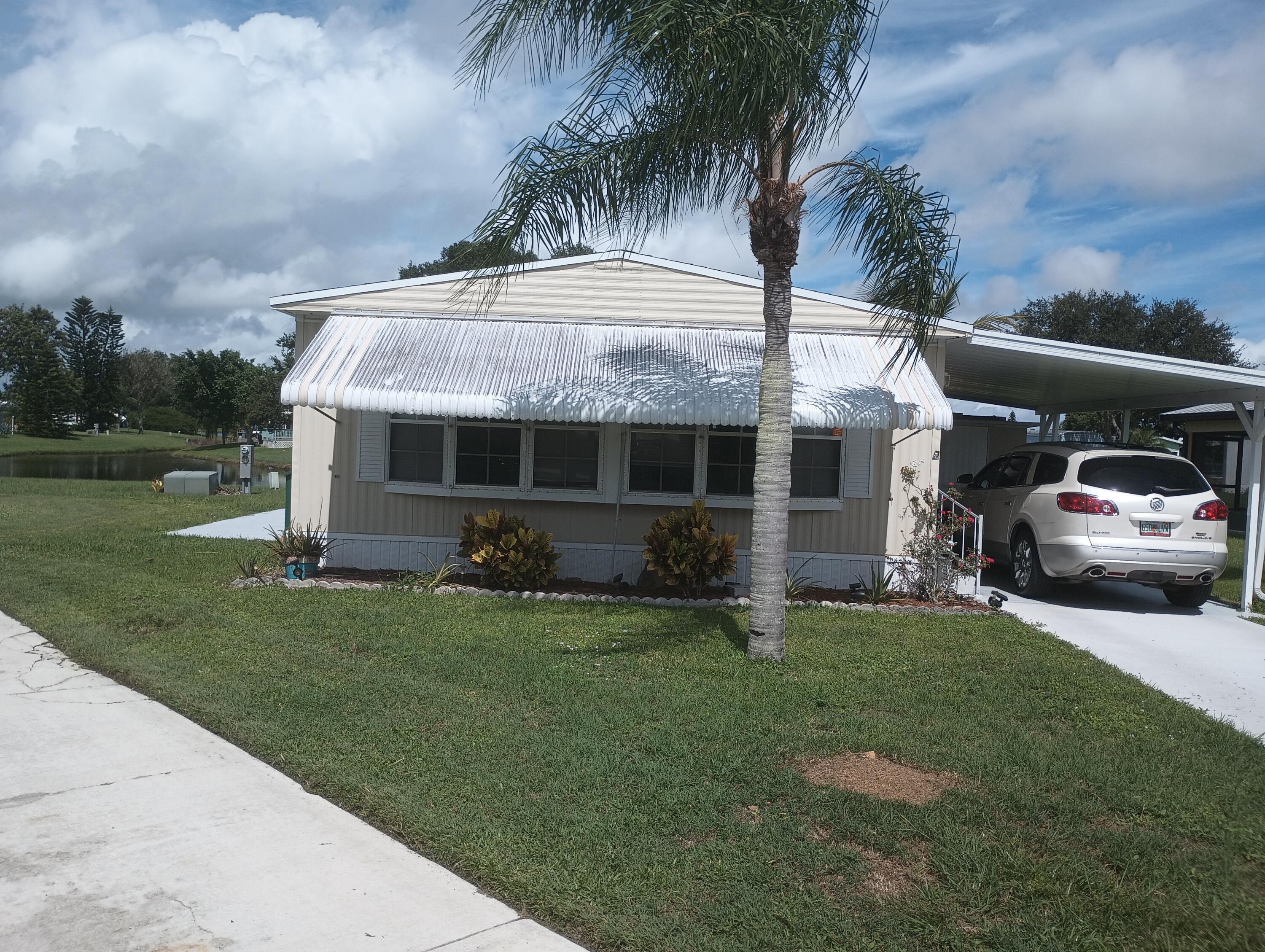 BEAUTIFUL LAKESIDE HOME in great condition located in the much desired 55+ community of Spanish Lakes Riverfront. This 2 bedroom mobile home has great views of the lake and sits on a cul-de-sac. The home comes completely furnished with newer AC unit 2020, new water heater, walk-in shower, new window treatments and new laminate flooring throughout. Meticulously maintained by the owner, the home includes a new shingled roof installed in 2017 and freshly painted drive, carport and patio areas. Lot rent covers clubhouse amenities include pool, tennis courts, shuffleboard and so much more. Also includes weekly garbage and recycling pick up and lawn maintenance and Property Taxes. Market rent (new owner): $983.06 a month for 12 months