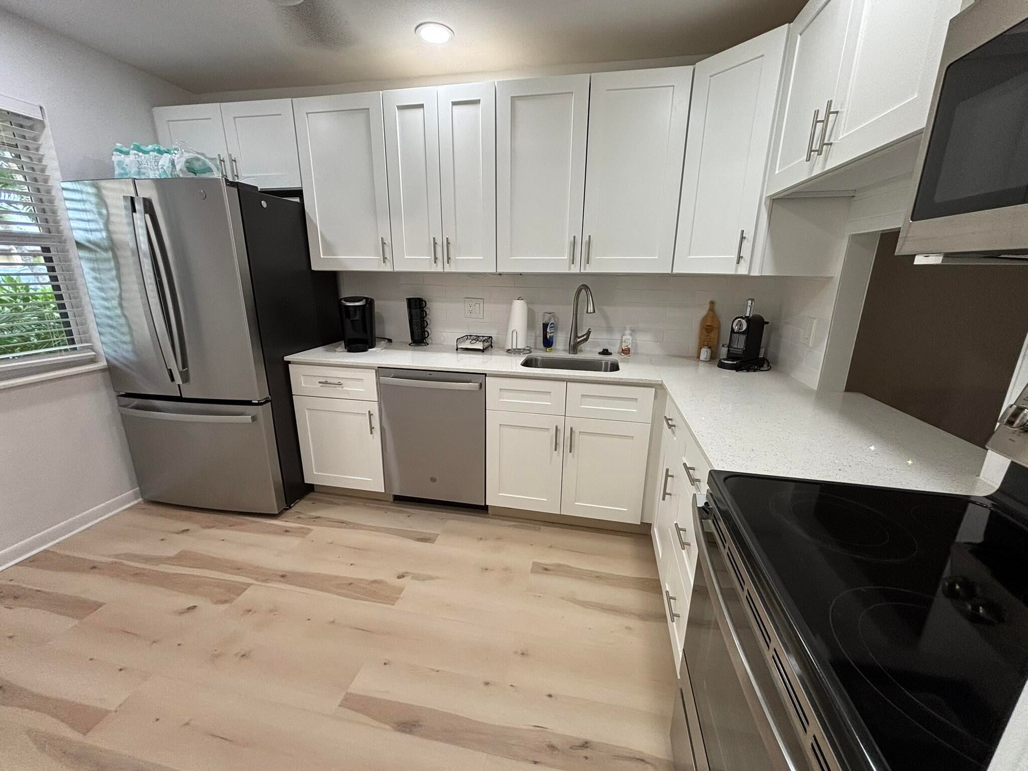 Price Reduced for a quick sale!!Beautifully renovated 2 bedroom 2 bath corner unit. Lots of windows offering lots of sunshine with a lovely lake view. Spacious enclosed Florida room with cieling fans. The kitchen has been beautifully renovated with stainless steel appliances and granite counter tops. Nice laminate flooring thorughout the house. A newer A/C unit and tankless water heater. IMPACT windows and doors to ensure safety against stormy weather. Home is fully furnished ready for new owners to move in.