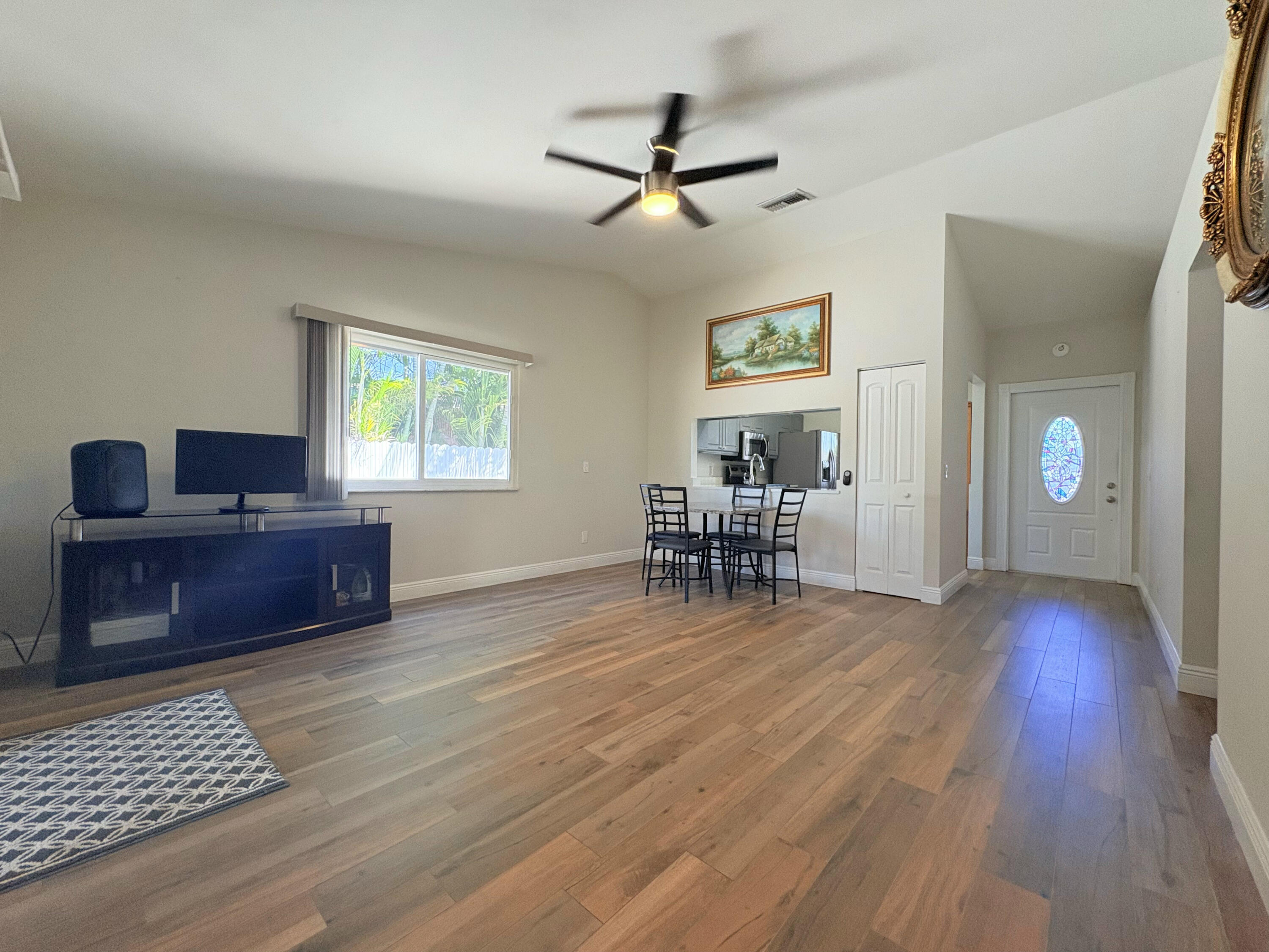Discover this charming 2-bedroom, 2-bath home with a one-car garage in the heart of Greenacres. Featuring a spacious screened back patio and a fully fenced yard, this property is perfect for outdoor living, entertaining, and family fun. The huge backyard offers endless possibilities--whether you're looking to add a pool, garden, or simply enjoy open space. With no HOA restrictions, you'll have the freedom to make it your own. A rare find in a sought-after location, this home combines comfort, convenience, and potential.