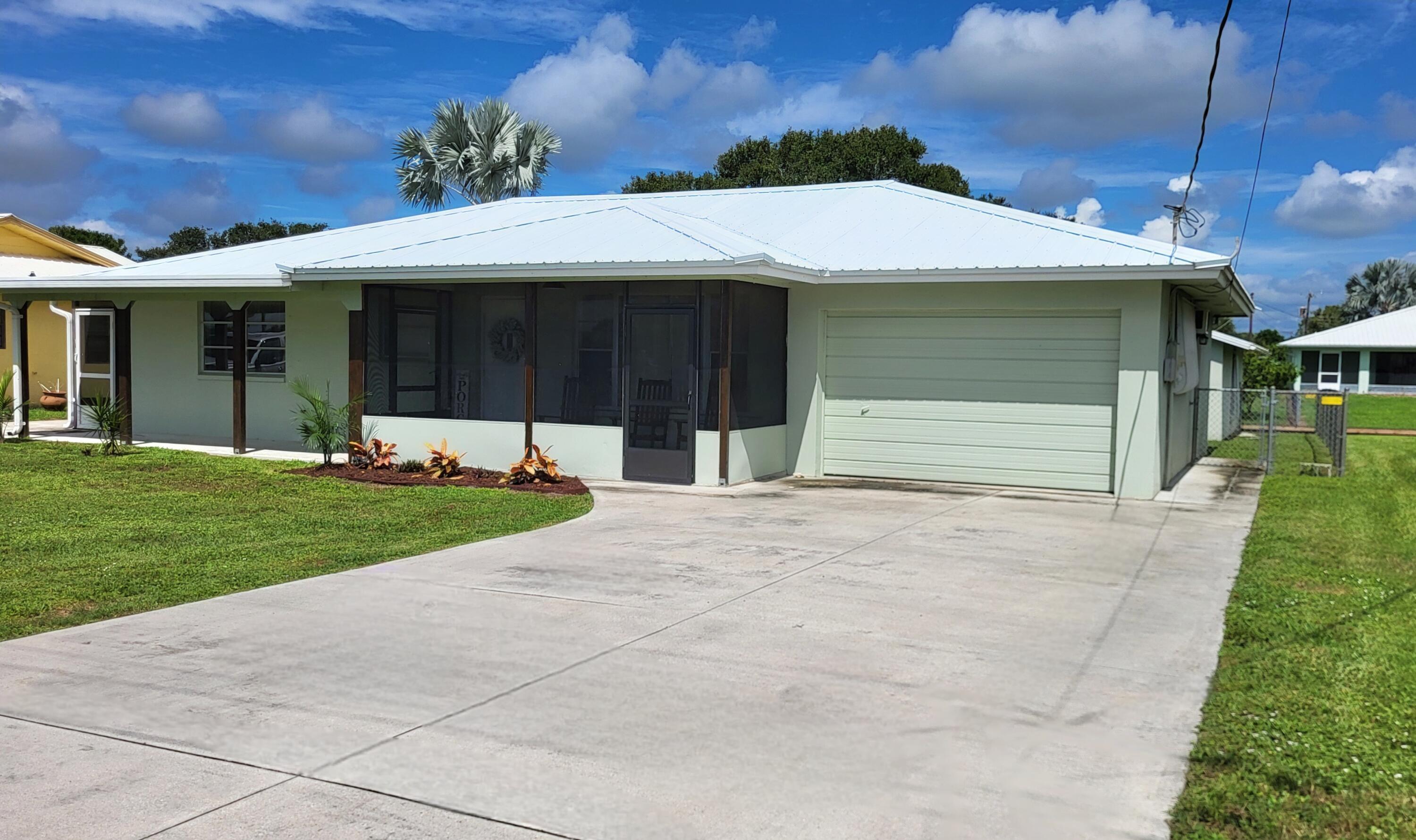 Turnkey move-in ready 3/2 CBS home with tip-top furnishings. Features: Waterfront, attached garage, metal roof, concrete boathouse with boat lift, irrigation system, partially fenced back yard, wood soft-close cabinets, AC 2023, fireplace, flawless flooring, 2 hall linen closets. Closet to the Locks to Lake Okeechobee in the quiet, desirable ''homes only'' section of Buckhead Ridge. An easy commute to either coast. No HOA, No flood zone. Make the move and move on up!