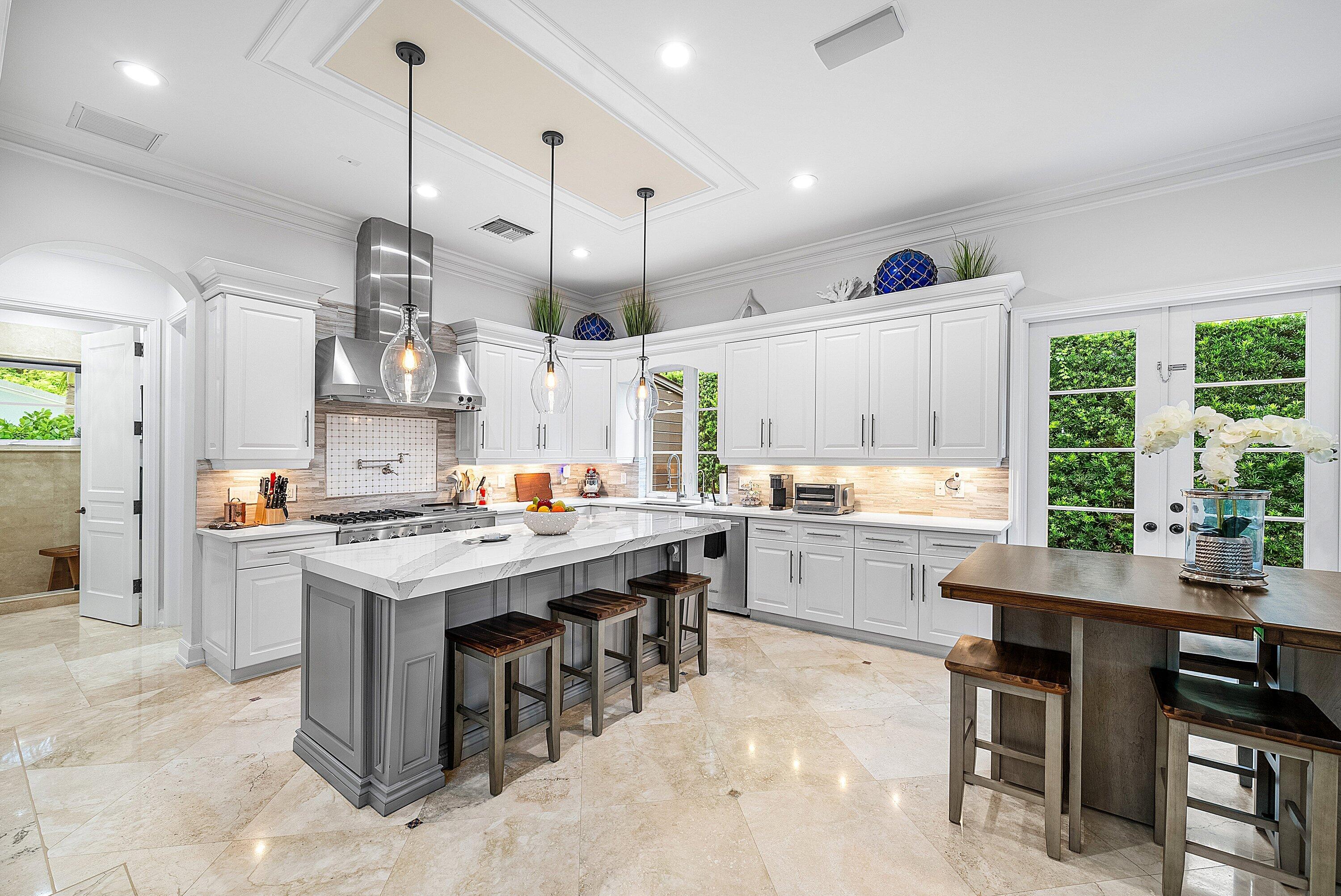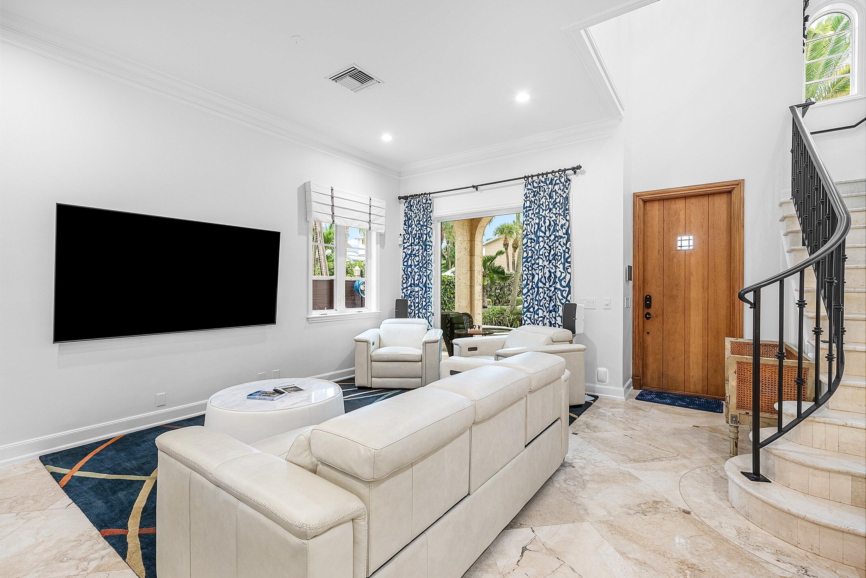 Palm Beach-Style Mini Estate in Ocean Ridge - Steps from the Sand -This beautifully designed, fully furnished 4-bedroom, 3-bath Palm Beach-inspired mini estate is ideally situated just three homes from the ocean in the highly desirable Beach Block of Ocean Ridge. Located on a quiet cul-de-sac with deeded beach access and no HOA, this 3,300 total-sq-ft smart home offers the perfect blend of luxury, privacy, and laid-back coastal living. Built with exceptional craftsmanship, the home features poured concrete construction for superior sound insulation, interior marble and hardwood floors, and coral stone exterior details. The home is fully automated with all new controls: Lutron lighting system, HVAC units and air handlers, Nest thermostat controllers, Sonos integrated audio throughout,12-camera UNIFI video surveillance system and UNIFI WiFi server all controlled via a 10" touchscreen or remotely from your smartphone. The chef's kitchen includes high-end stainless steel appliances, a gas range with griddle, pasta faucet, under-counter lighting, and new built-in three-stage reverse osmosis water system. New designer furnishings accentuate the elegant architecture, including a handmade shell table. The second-floor primary suite opens to a private terrace with a spiral staircase leading to a third-floor rooftop deck offering sweeping ocean views perfect for sunrise coffee or evening stargazing. Resort-style outdoor living features a new saltwater pool with Wi-Fi controls, LED lighting, automatic water refill, and freshly etched and resealed marble decking. Additional upgrades include new outdoor lighting, speakers, fan systems, landscaping, and sprinkler heads. Ocean Ridge is one of South Florida's most serene and exclusive seaside towns, and this home is centrally located between two world-class destinations: vibrant Atlantic Avenue in Delray Beach and the iconic Worth Avenue in Palm Beach both just minutes away. This property offers an incredible opportunity to enjoy the elegance of a Palm Beach estate in a peaceful coastal setting, with direct access to the beach and quick connections to Delray Beach and Palm Beach's premier shopping, dining, and entertainment.