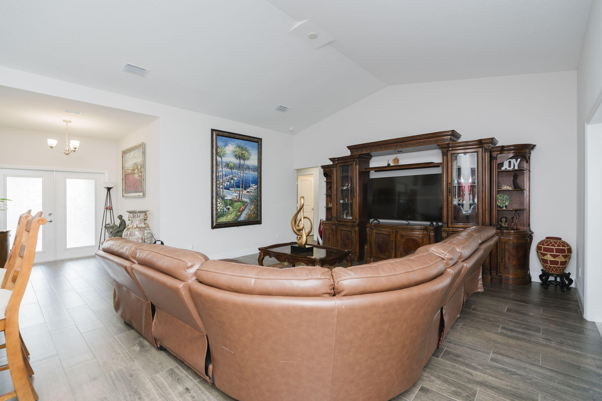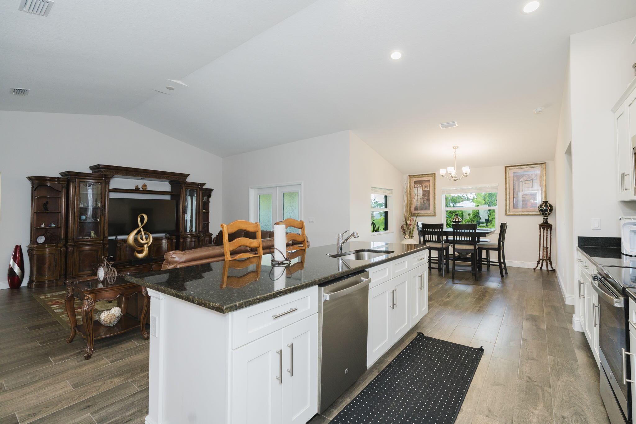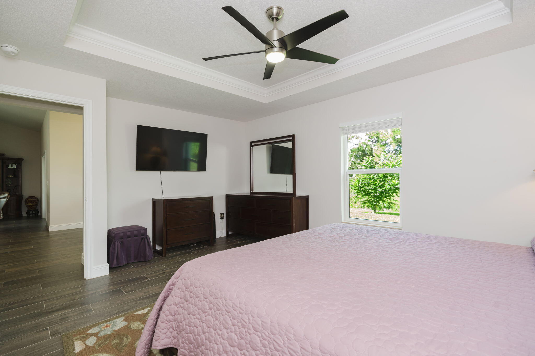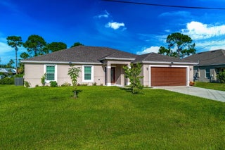 Stunning Synergy built home with 2,012 sq. ft. of living space with 4 bedrooms, 2 bathrooms, and a 2-car garage. Thoughtfully designed with energy efficiency and modern style, this home showcases impact-resistant windows and Icynene spray foam insulation for comfort and peace of mind. Step inside to find elegant touches throughout, including volume ceilings, French doors, custom mirrors, built-in shelving, and a spacious foyer. The split-bedroom layout provides privacy, while the primary suite features dual sinks, a Roman tub, separate shower, and walk-in closet. The contemporary kitchen includes a pantry, plenty of storage, and overlooks the open living areas, making entertaining a breeze. A huge covered patio extends your living space outdoors for year-round enjoyment. Additionalhighlights include: CBS construction (2023 build), tile and carpet flooring, Attached garage with wide driveway and extra parking spaces, Public water and sewer, No HOA - bring your pets!, Prime Location: Just minutes to I-95, Florida's Turnpike, shopping, dining, and the ever-popular Tradition area. This brand-new home blends quality craftsmanship with an unbeatable location. Don't miss your chance to own this move-in ready beautyschedule your showing today!