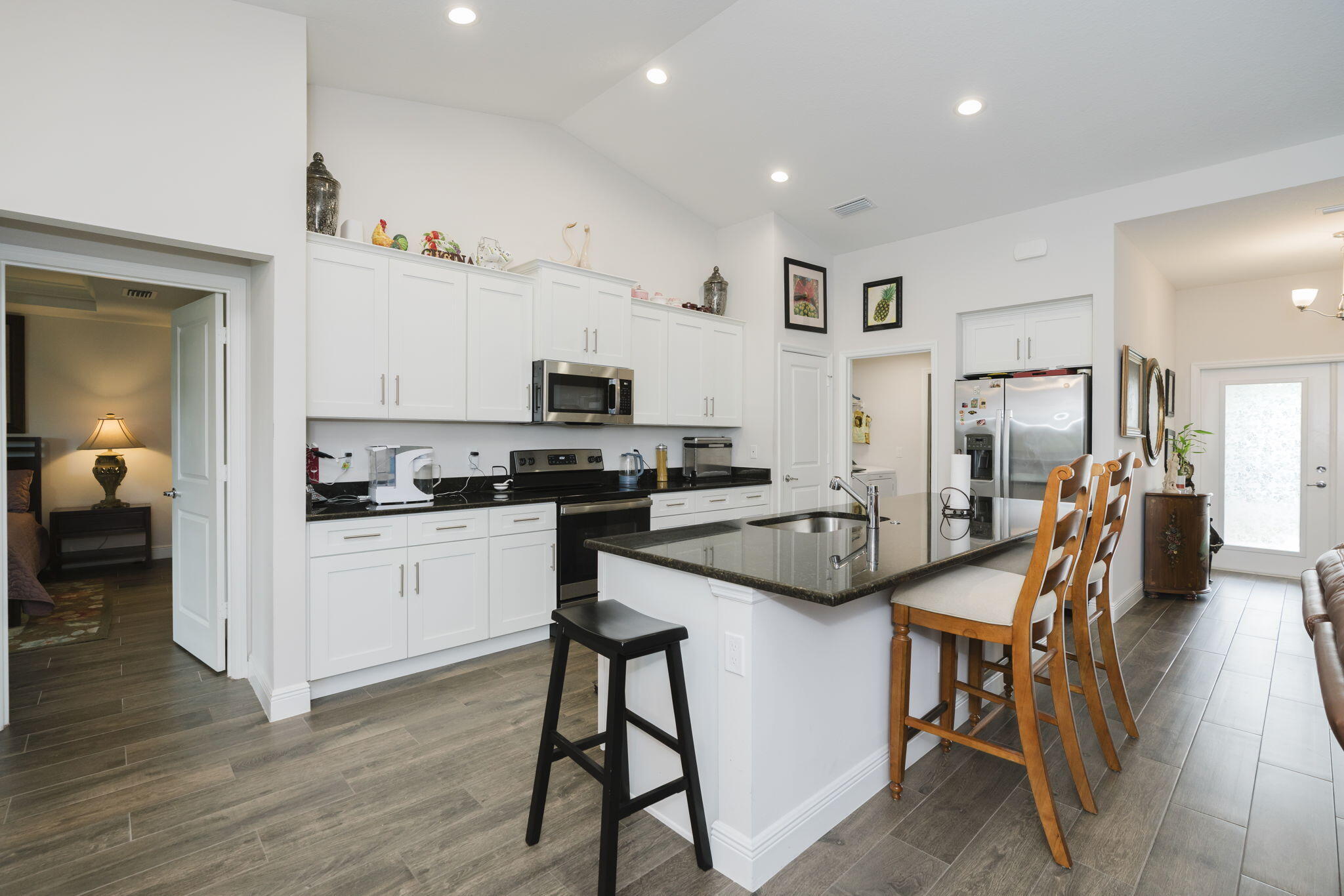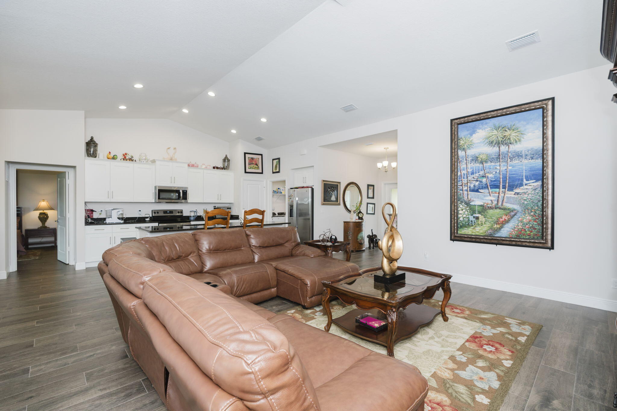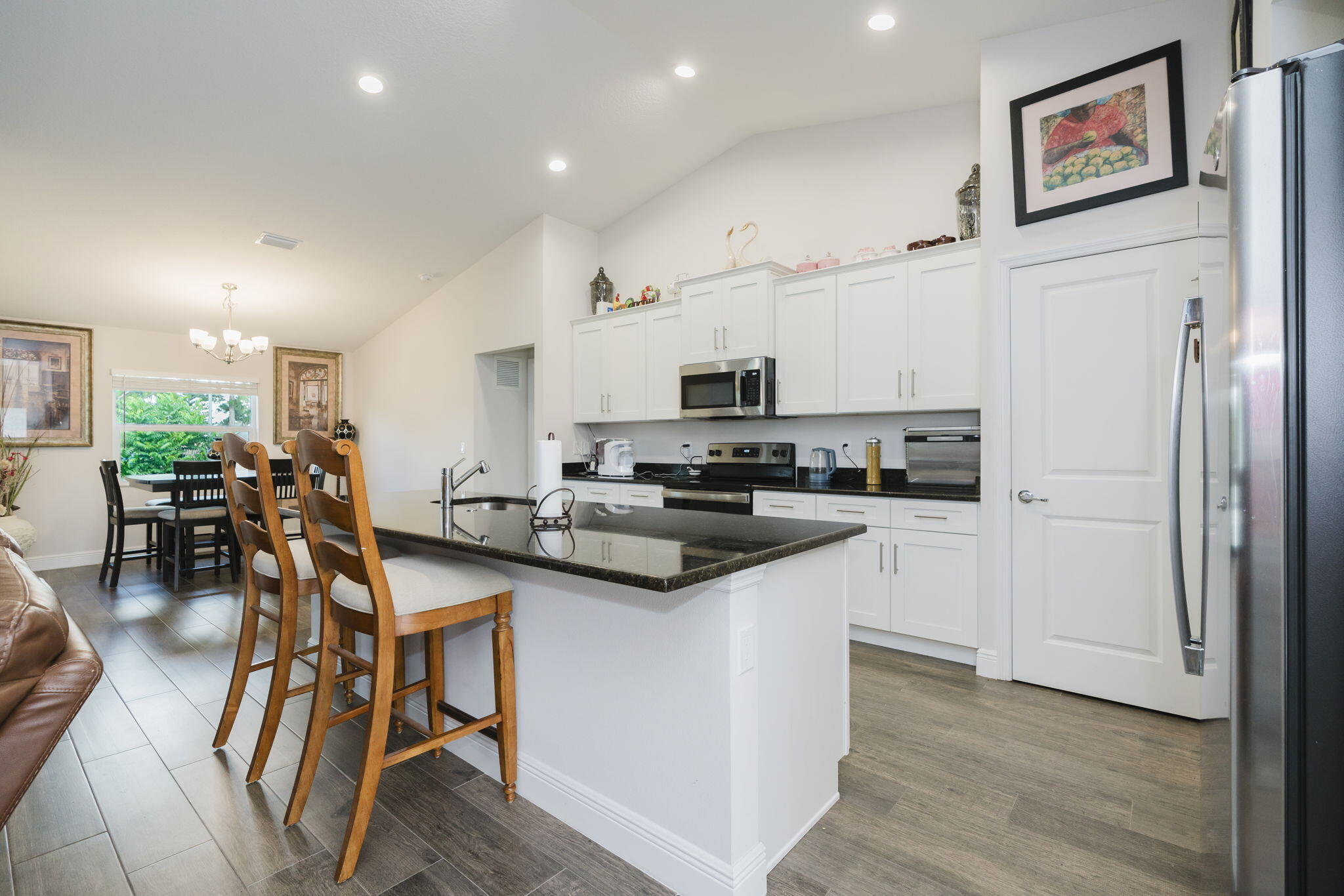 Stunning Synergy built home with 2,012 sq. ft. of living space with 4 bedrooms, 2 bathrooms, and a 2-car garage. Thoughtfully designed with energy efficiency and modern style, this home showcases impact-resistant windows and Icynene spray foam insulation for comfort and peace of mind. Step inside to find elegant touches throughout, including volume ceilings, French doors, custom mirrors, built-in shelving, and a spacious foyer. The split-bedroom layout provides privacy, while the primary suite features dual sinks, a Roman tub, separate shower, and walk-in closet. The contemporary kitchen includes a pantry, plenty of storage, and overlooks the open living areas, making entertaining a breeze. A huge covered patio extends your living space outdoors for year-round enjoyment. Additionalhighlights include: CBS construction (2023 build), tile and carpet flooring, Attached garage with wide driveway and extra parking spaces, Public water and sewer, No HOA - bring your pets!, Prime Location: Just minutes to I-95, Florida's Turnpike, shopping, dining, and the ever-popular Tradition area. This brand-new home blends quality craftsmanship with an unbeatable location. Don't miss your chance to own this move-in ready beautyschedule your showing today!