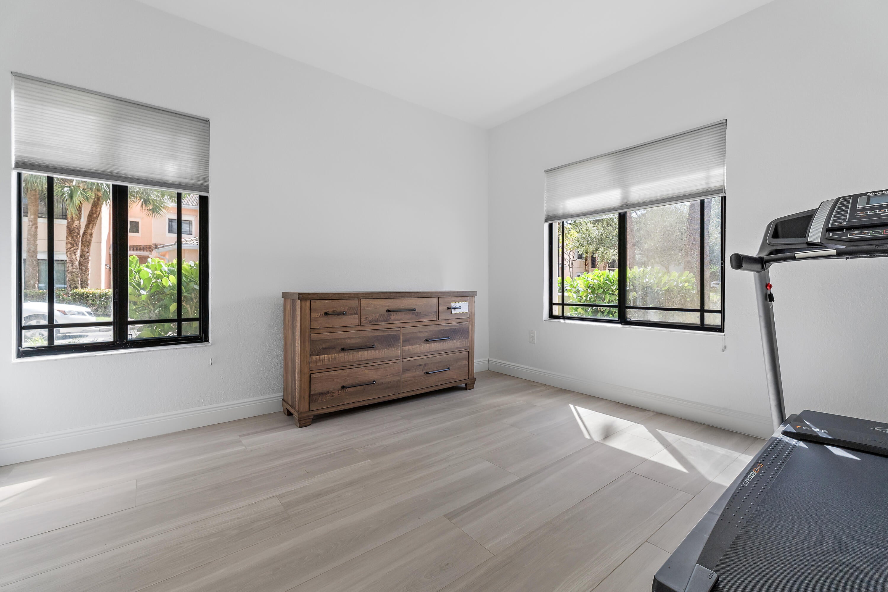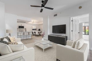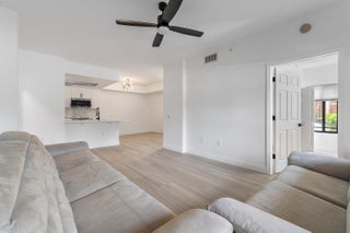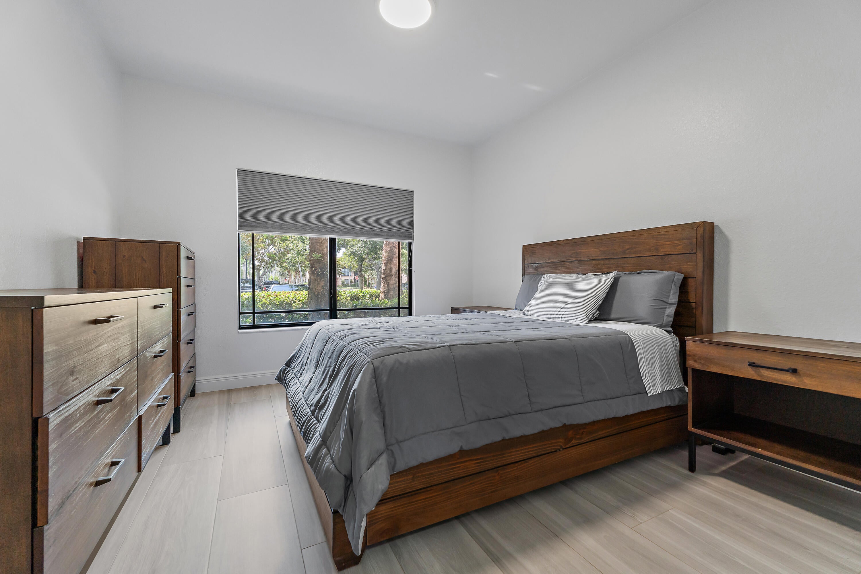 This fully renovated first-floor two-bedroom, two-bath condo in San Matera offers a modern, turnkey lifestyle in a gated, pet-friendly community. The wide-open kitchen has been completely reinvented with white shaker cabinetry, quartz countertops, stainless steel appliances, and a brand-new stove. Wide plank, gray wood-look tile flooring flows seamlessly throughout, giving the home a clean and contemporary aesthetic. Both bathrooms complement the home's updates with white shaker vanities, sleek black accents, and beautifully reimagined showers featuring charcoal large-format tile walls and pebblestone floors for a spa-inspired finish. Additional peace of mind comes with an HVAC system (2018) and water heater (2021), with the entire HVAC system--includingductwork professionally cleaned within the past month. San Matera residents enjoy resort-style amenities, including a sparkling pool, fitness center, community room, sauna, tennis, and pickleball. Ideally located near premier shopping, dining, and Jupiter's famous beaches, this condo combines stylish living, everyday convenience, and the very best of South Florida.
