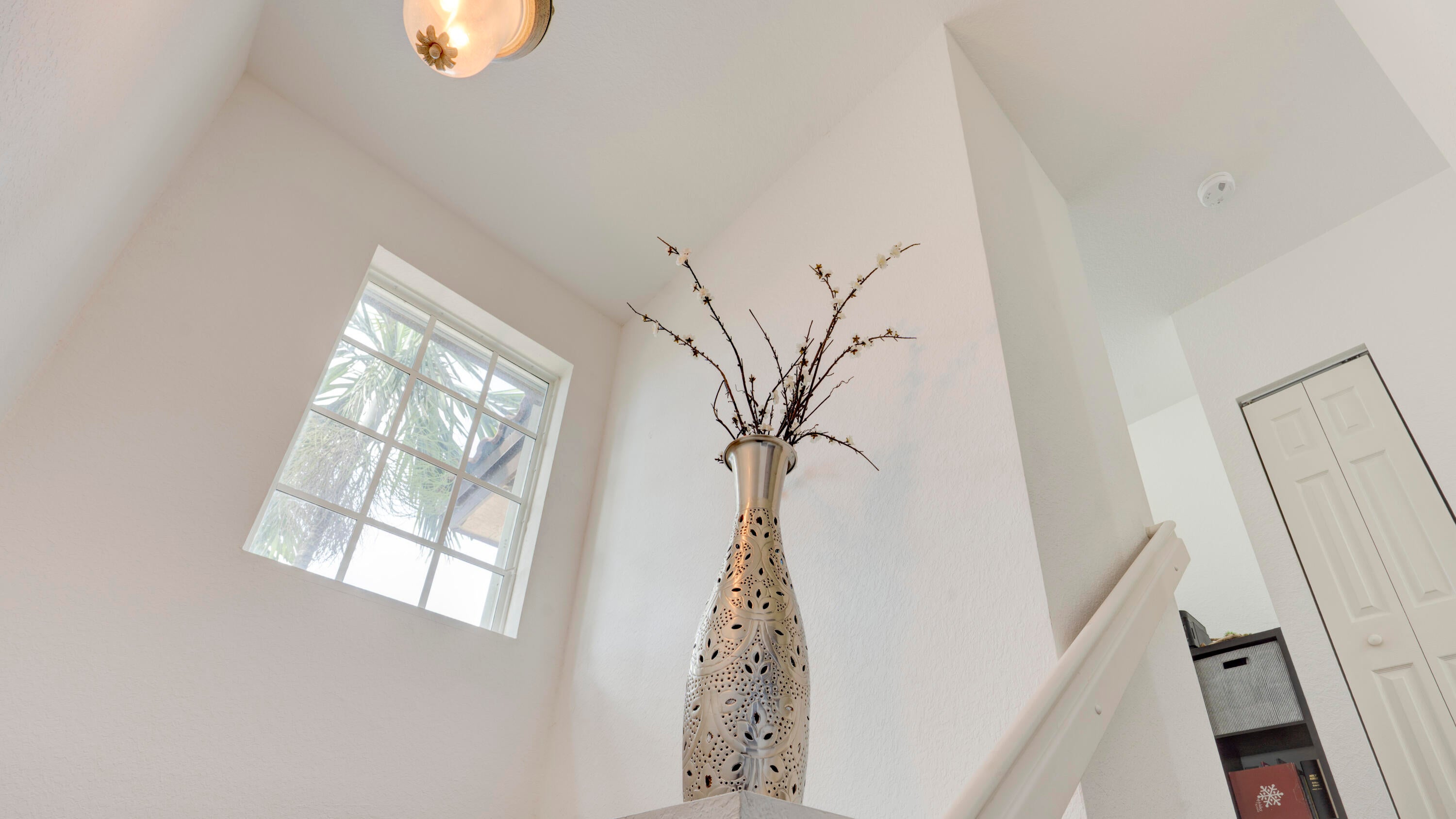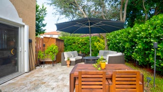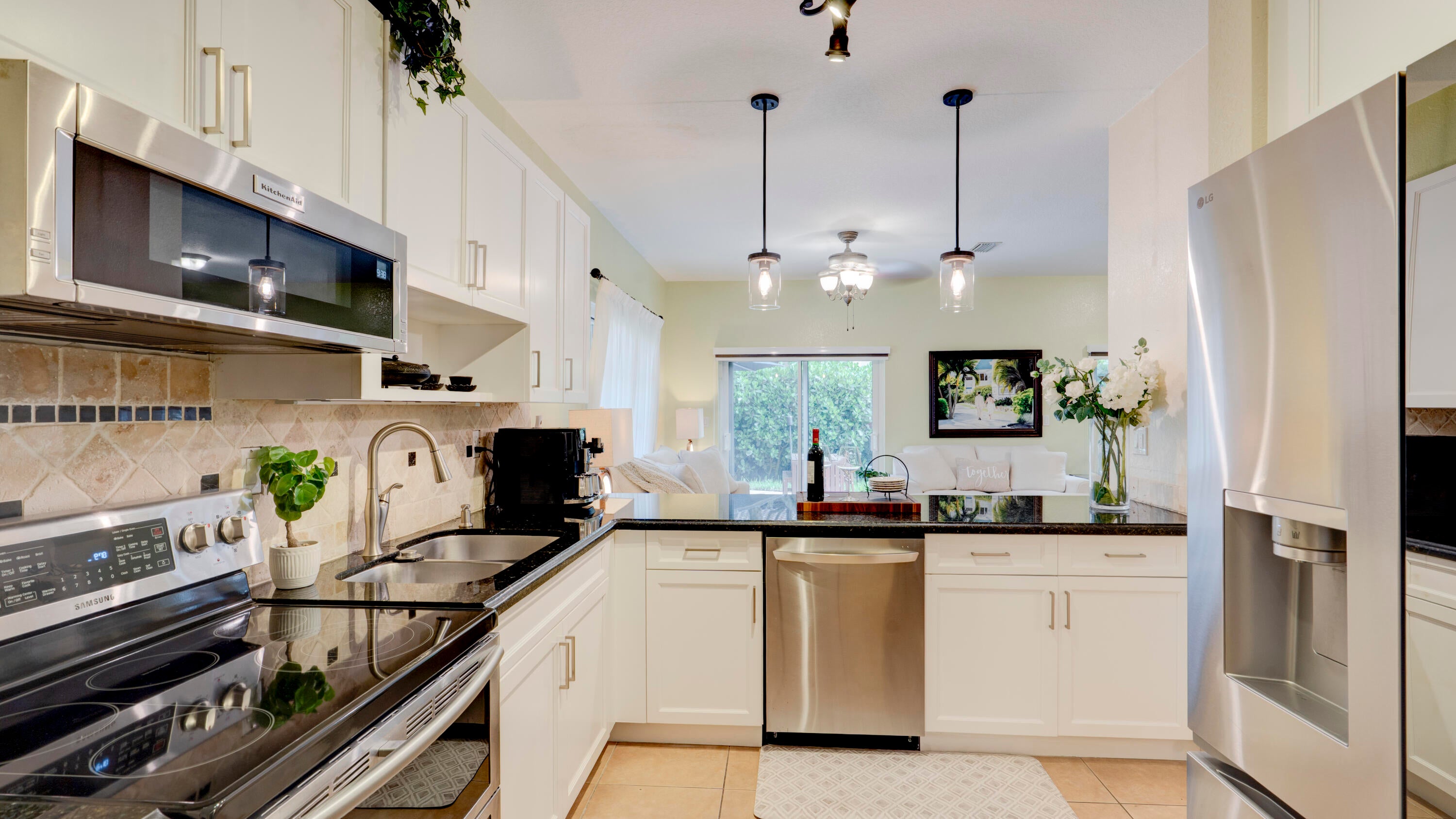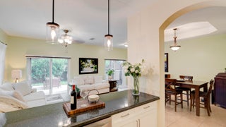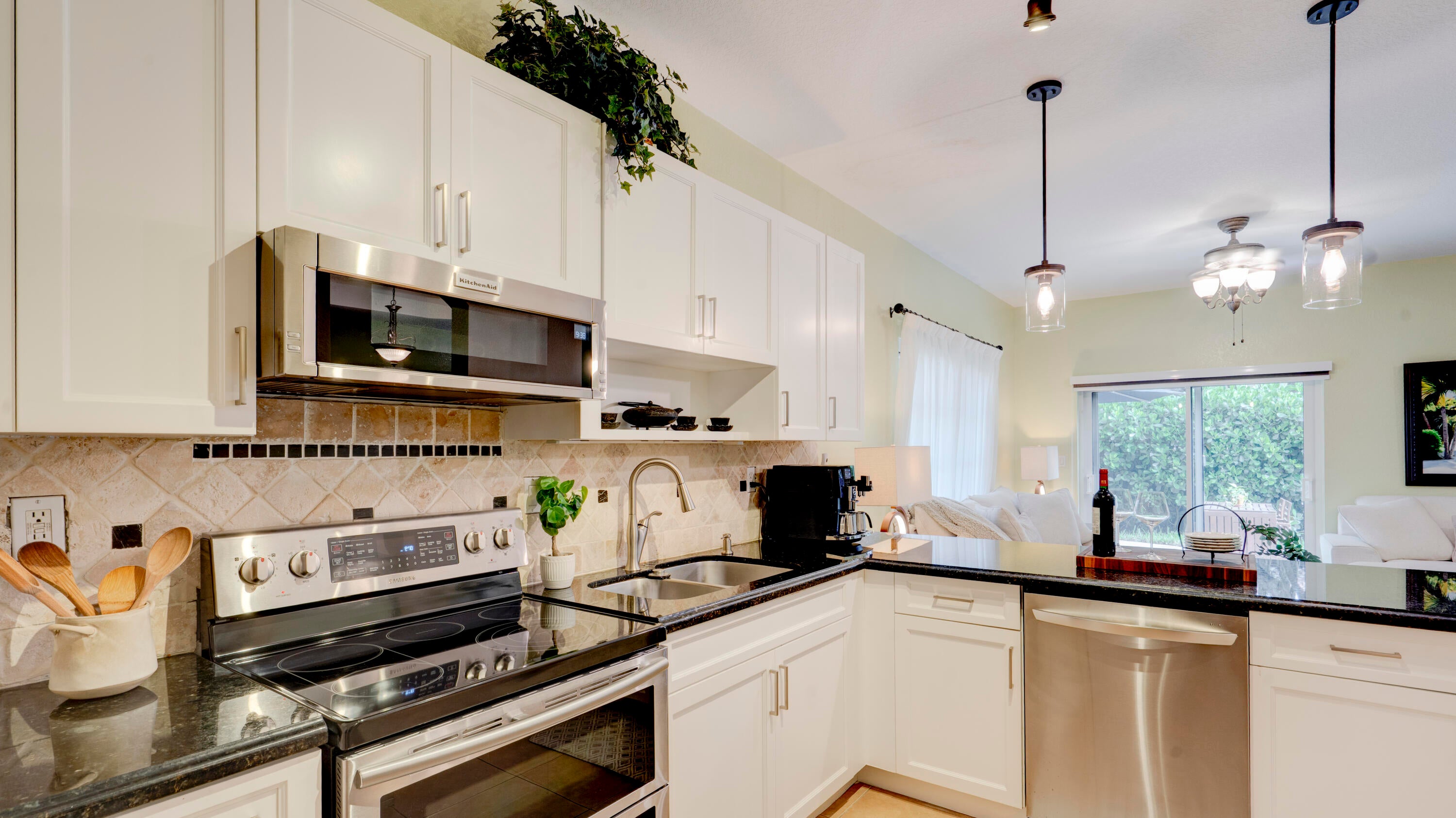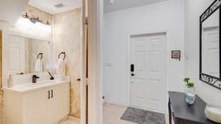 Beautiful corner-lot home featuring soaring ceilings, tray-ceiling dining, and master suite with garden tub. Kitchen boasts granite counters, remodeled cabinetry, SS appliances including new fridge, plus washer/dryer combo. Baths upgraded with quartz, cabinets, and new toilets. Modern touches include new laminate floors, stamped driveway, window treatments, and smart home features: Ecobee thermostat, Ring doorbell, outdoor cameras. Built for efficiency with impact windows/doors, accordion shutters, 2018 high-efficiency A/C under warranty, attic insulation, and full re-pipe. Backyard oasis offers travertine tile, lighting, mature Clusia hedges, and peaceful park views. Community amenities include clubhouse, fitness center, and pool. Move-in ready!Beautiful Corner-Lot Home with Modern Upgrades, Smart Features, and Park Views. This move-in ready corner-lot home combines comfort, efficiency, and style with thoughtful updates inside and out. Soaring high ceilings and a tray-ceiling dining area add openness and charm. The master suite features a garden bathtub, while the kitchen offers granite counters, remodeled cabinetry, and stainless steel appliances including a recently purchased refrigerator. The bathrooms showcase quartz counters, upgraded cabinets, and all new toilets, and the home also includes a recently purchased washer-dryer combo and waste disposal. Additional updates include modern window treatments, new laminate floors upstairs and on the staircase, and a designer stamped driveway and walkway for added curb appeal. Smart home features include an Ecobee thermostat, network-ready outdoor cameras, and a Ring doorbell. Built for efficiency and durability, the home also offers impact doors and windows with accordion shutters, a 2018 high-efficiency A/C with remaining warranty, blown-in attic insulation, and a complete re-pipe of the interior. The backyard retreat is perfect for entertaining or relaxing, with Mediterranean, travertine tile, tasteful outdoor lighting, and mature Clusia hedges for natural privacy. Backing directly onto a park, the outdoor space offers peaceful views and year-round serenity. A community-maintained irrigation system keeps the front, side, and backyard lush at all times. The property is part of a quiet, meticulously maintained community with a clubhouse offering a fitness center, entertainment areas, and a spacious pool. This home blends modern convenience, lasting quality, and lifestyle amenities a rare find that's ready for you to move right in.