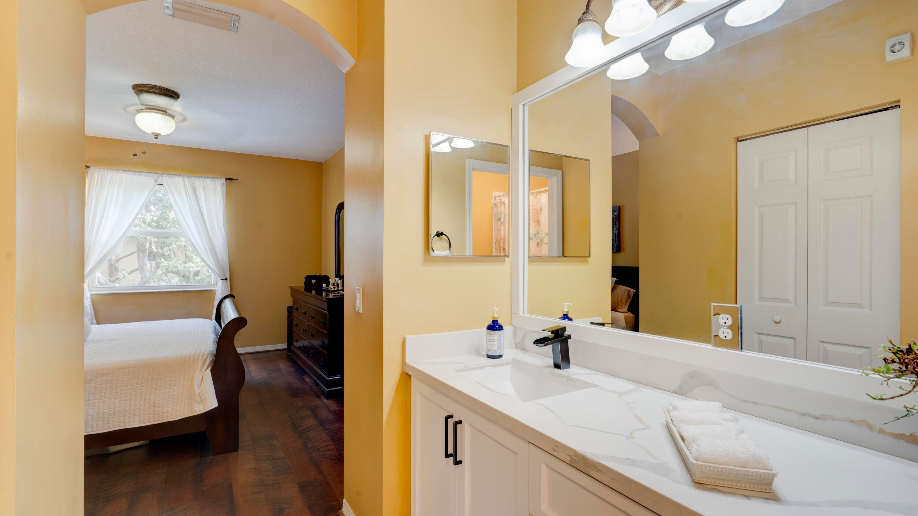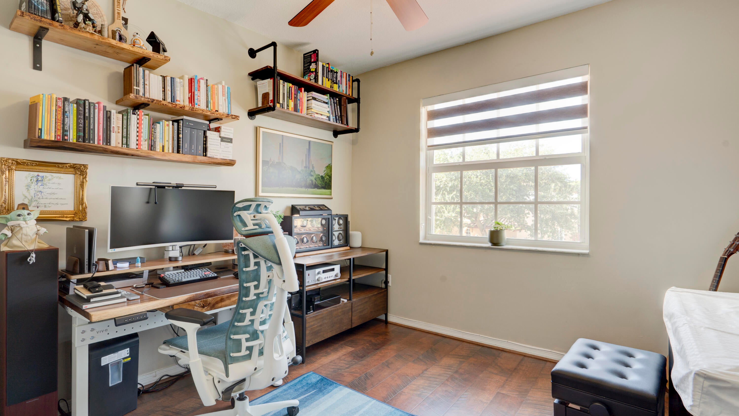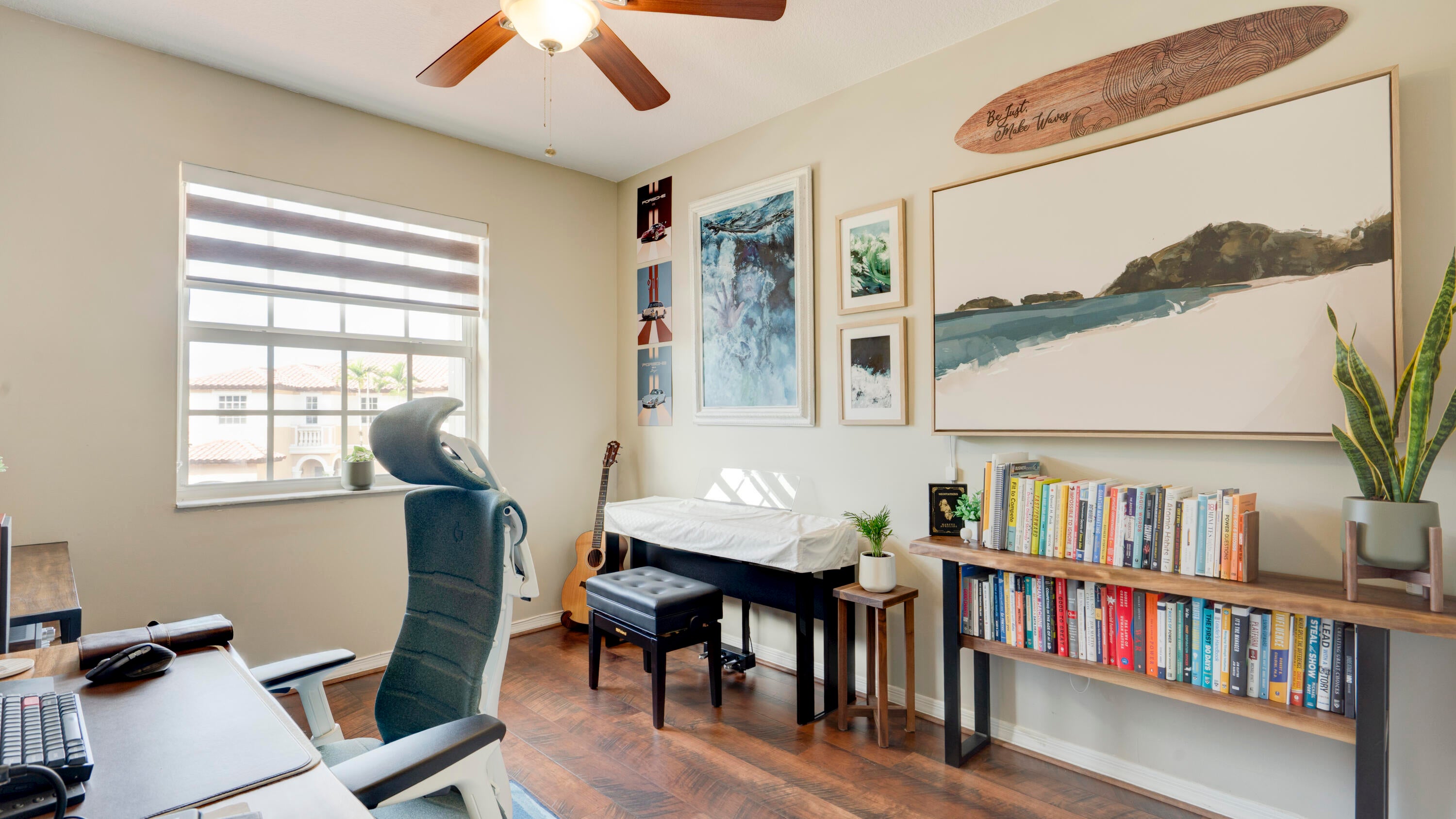 Beautiful corner-lot home featuring soaring ceilings, tray-ceiling dining, and master suite with garden tub. Kitchen boasts granite counters, remodeled cabinetry, SS appliances including new fridge, plus washer/dryer combo. Baths upgraded with quartz, cabinets, and new toilets. Modern touches include new laminate floors, stamped driveway, window treatments, and smart home features: Ecobee thermostat, Ring doorbell, outdoor cameras. Built for efficiency with impact windows/doors, accordion shutters, 2018 high-efficiency A/C under warranty, attic insulation, and full re-pipe. Backyard oasis offers travertine tile, lighting, mature Clusia hedges, and peaceful park views. Community amenities include clubhouse, fitness center, and pool. Move-in ready!Beautiful Corner-Lot Home with Modern Upgrades, Smart Features, and Park Views. This move-in ready corner-lot home combines comfort, efficiency, and style with thoughtful updates inside and out. Soaring high ceilings and a tray-ceiling dining area add openness and charm. The master suite features a garden bathtub, while the kitchen offers granite counters, remodeled cabinetry, and stainless steel appliances including a recently purchased refrigerator. The bathrooms showcase quartz counters, upgraded cabinets, and all new toilets, and the home also includes a recently purchased washer-dryer combo and waste disposal. Additional updates include modern window treatments, new laminate floors upstairs and on the staircase, and a designer stamped driveway and walkway for added curb appeal. Smart home features include an Ecobee thermostat, network-ready outdoor cameras, and a Ring doorbell. Built for efficiency and durability, the home also offers impact doors and windows with accordion shutters, a 2018 high-efficiency A/C with remaining warranty, blown-in attic insulation, and a complete re-pipe of the interior. The backyard retreat is perfect for entertaining or relaxing, with Mediterranean, travertine tile, tasteful outdoor lighting, and mature Clusia hedges for natural privacy. Backing directly onto a park, the outdoor space offers peaceful views and year-round serenity. A community-maintained irrigation system keeps the front, side, and backyard lush at all times. The property is part of a quiet, meticulously maintained community with a clubhouse offering a fitness center, entertainment areas, and a spacious pool. This home blends modern convenience, lasting quality, and lifestyle amenities a rare find that's ready for you to move right in.