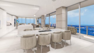 NAUTILUS 220 DEVELOPER IS OFFERING ADDITIONAL $300,000 DESIGN FURNISHING CREDIT on this beautiful Lower Penthouse Residence. Nautilus 220 is a new luxe waterfront development approaching completion alongside a marina with 330 condominium residences in two, 24 story towers, a one- acre outdoor amenity deck, the SeaHawk Prime by David Burke restaurant, retail, a cafe and office suites. Everything you need in one place, resort-style living perfected. Large corner residence with very generous terrace features East/SE views. Beautifully appointed with 11ft ceilings, hurricane impact glass, full Miele Appliance package, wine cooler, waterfall quartz kitchen island, countertops with European cabinetry, den, oversized primary suite with soaking tub.Very generous terrace features North/Northeast water, and city views. N220 boasts a 1-acre outdoor amenity deck with a resort pool, sundeck, spa, fire pit, yoga deck, putting green, off-leash dog park, and 2 floors of indoor amenities with a spin studio, yoga studio, sauna and steam rooms, mini-bowling, theater lounge, golf + sports simulator, music studio, club room, billiards and card tables, kids' playroom, and teen gaming room, and much more including a rooftop lap pool and spa with 360-degree panoramic views. Additional services include Marina access, 24-hour onsite security and management. With waterfront restaurants, retail, offices, café, private beach club, N220 is your destination for luxury living. Our Lobby with 18ft voluminous ceilings and amenities areas designed by the renowned Interiors by Steven G. provide a grand arrival into your new home. Our 330 residences offer 2- 3 bedrooms, multiple floorplan options, and multiple views. Very pet friendly community.