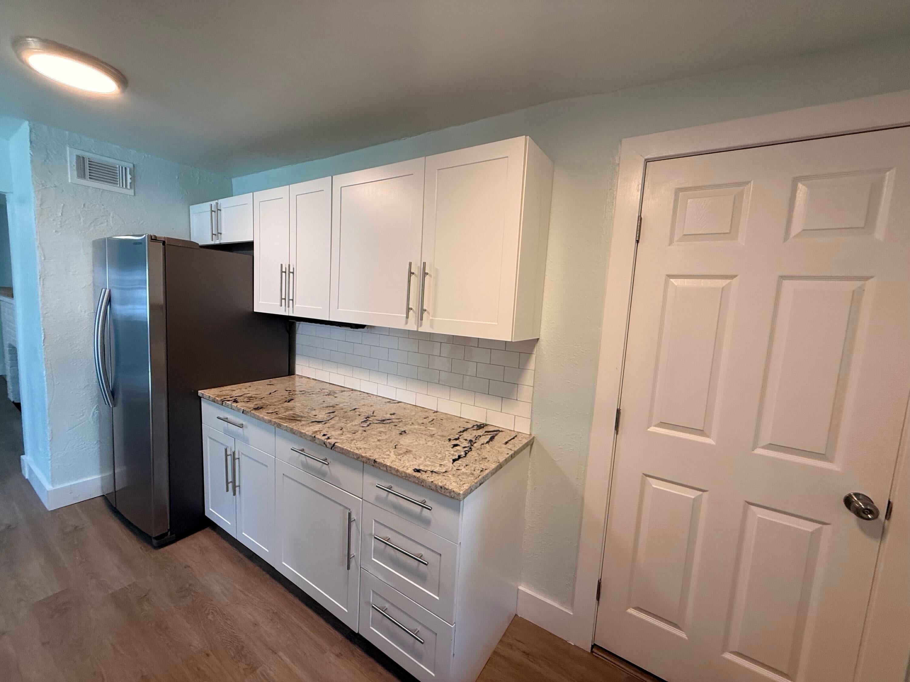 CHARMING OLD SPANISH STYLE DUPLEX IN COLONIAL ESTATES, JUST A SHORT DRIVE FROM DOWN TOWN WEST PALM BEACH AND PALM BEACH ISLAND. THIS COMPLETELY RECENTLY REMODELLED DUPLEX IS READY FOR OCCUPANCY. MAIN SIDE IS A 2 BEDROOM AND 1 BATH WITH NICE LIVING AREA. BACK UNIT IS A 1 BED & 1 BATH. BOTH UNITS HAVE CENTRAL A/C UNITS. ROOF WAS JUST RESEALED WITH A 10 YEAR WARRANTY COMMERCIAL GRADE SEALER. ALL NEW IMPACT WINDOWS. BOTH UNITS HAVE WHITE SHAKER STYLE KITCHENS WITH GRANITE COUNTER TOPS AND STAINLESS STEEL APPLIANCES. ALL NEW FLOORING THROUGH OUT. NEW BATHS, PLUMBING, TRIM, INTERIOR DOORS, BASEBOARDS AND UPDATED ELECTRICAL. FRONT AND BACK YARD NEW SOD INSTALLED THIS WEEK. BACK YEARD COMPLETELY FENCED IN. TWO STORAGE SHEDS. READY FOR NEW OCCUPANTS.