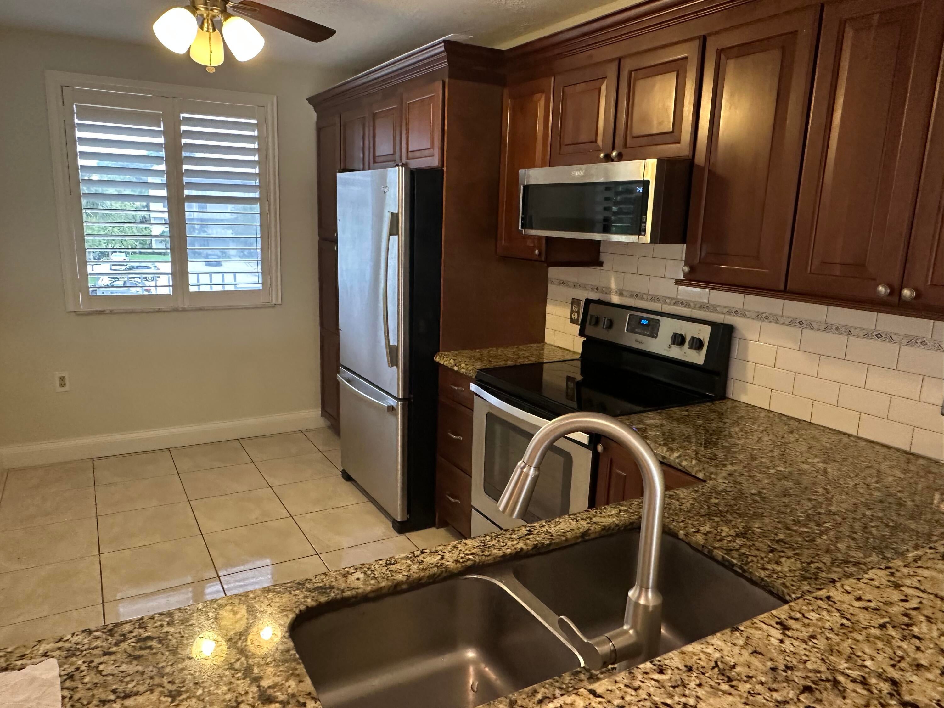 End Unit Condo in West Palm Beach! Enjoy golf course views and stunning sunsets from your private balcony in this beautifully maintained, fully furnished 2-bedroom, 2-bathroom end unit. Featuring tile flooring throughout, an oversized interior laundry, storage room or office space, and bright, open living spaces, this condo is move-in ready and perfect for comfortable living. Ideally located near top dining, shopping, the Palm Beach Outlets, I-95, PBIA, and just minutes to the beach. Easy to show and available for immediate move-in--don't miss out!