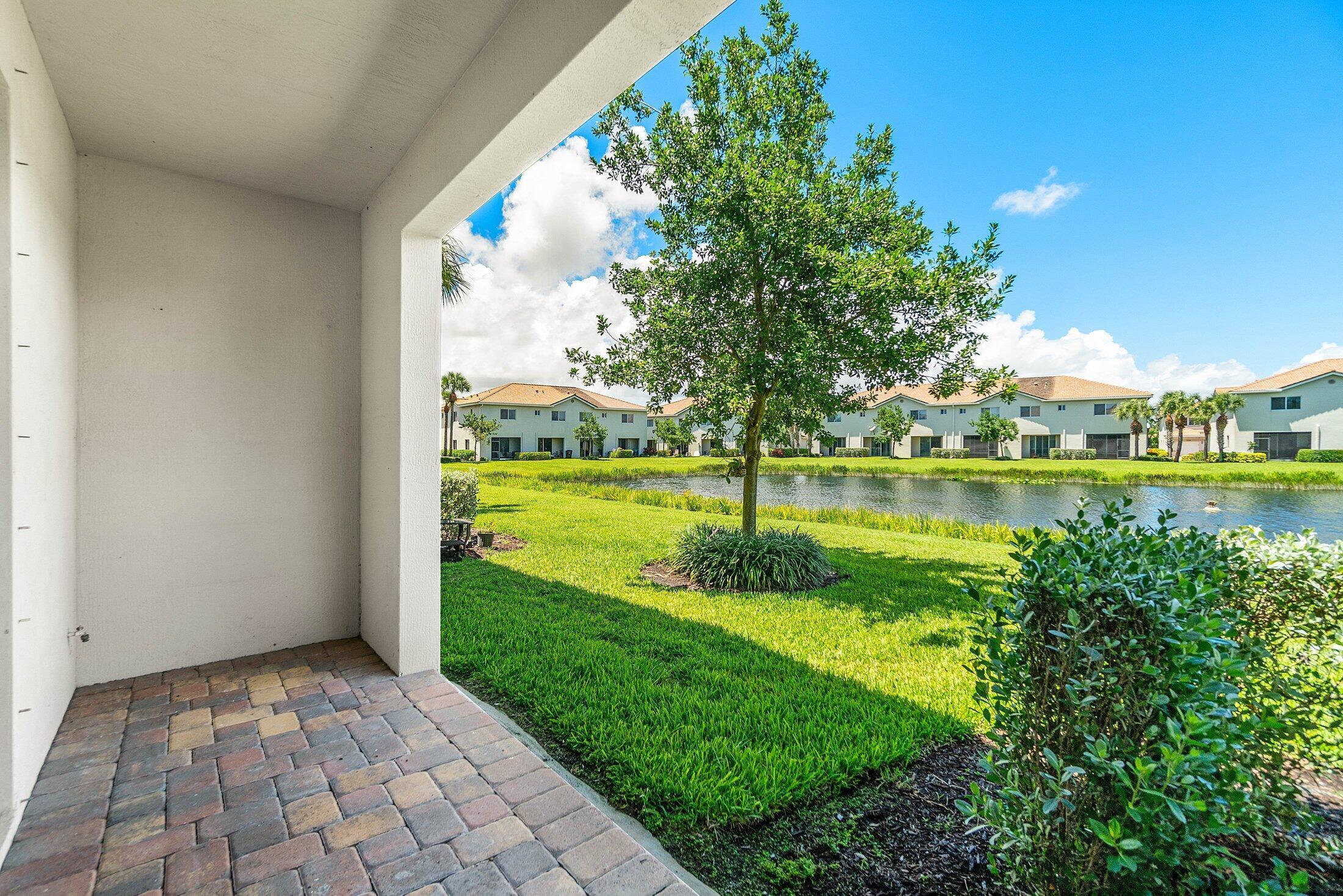 Welcome to this stylish waterfront home, built by D.R. Horton in 2017! This residence combines modern design with move-in-ready comfort! The upgraded kitchen boasts sleek finishes and stainless steel appliances, opening to a bright living area with wood-look porcelain tile floors and abundant natural light. The primary suite offers a fully renovated bathroom with a walk-in shower, designer tile, and premium fixtures. All bedrooms are generously sized with ample storage, and the in-unit washer and dryer add everyday convenience. Step outside to a private patio with tranquil water and fountain views, perfect for relaxing or entertaining. Ideally located near shopping, dining, and major highways, this home blends style, low-maintenance living, and a desirable waterfront lifestyle!
