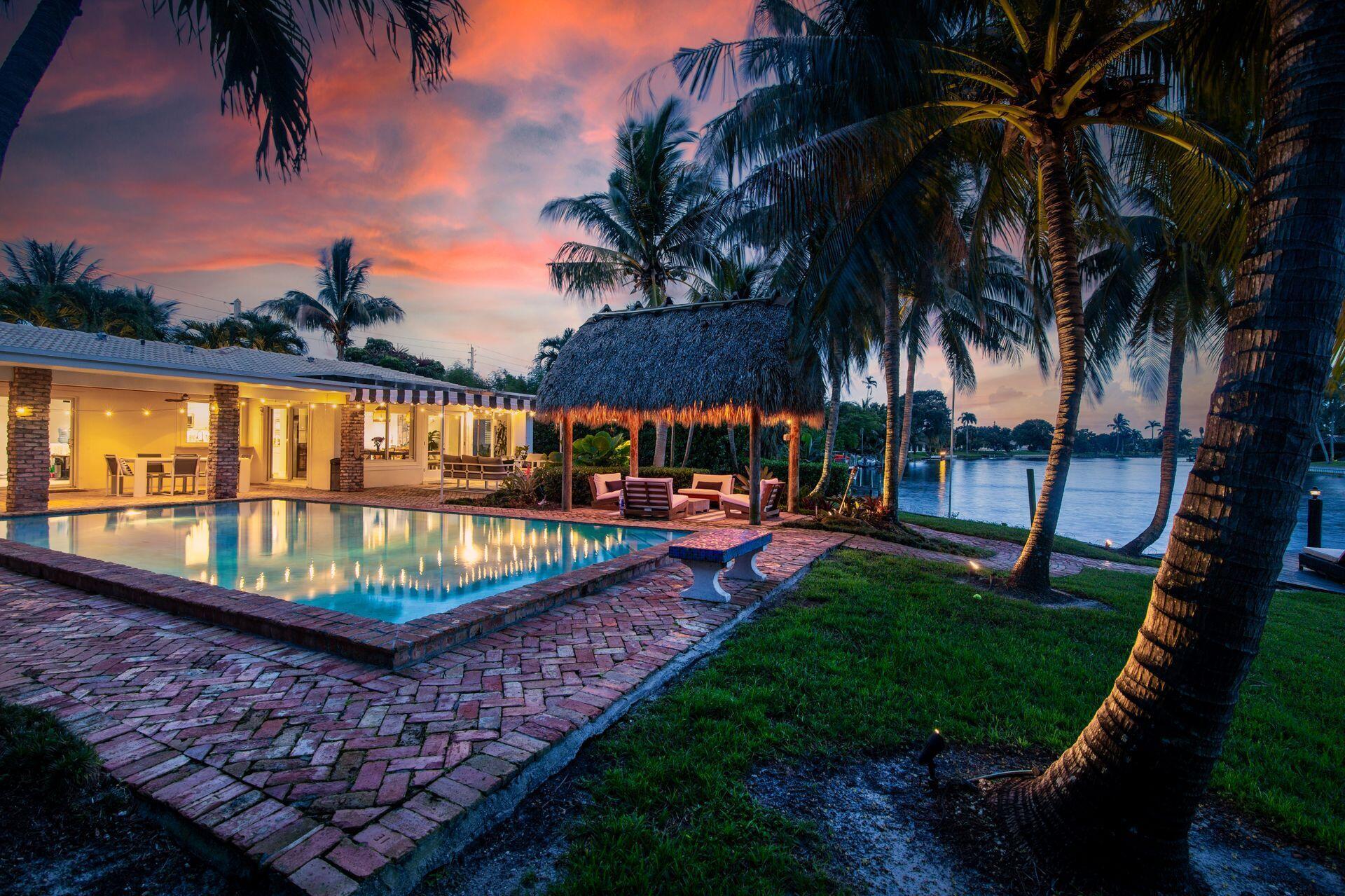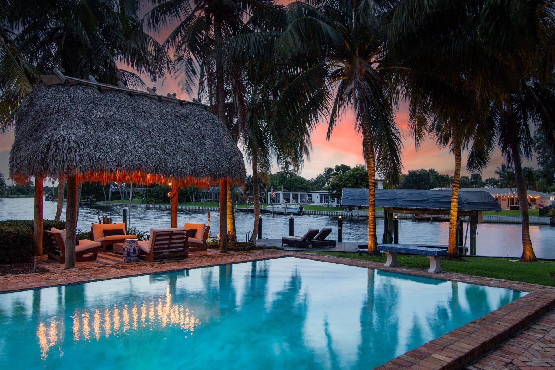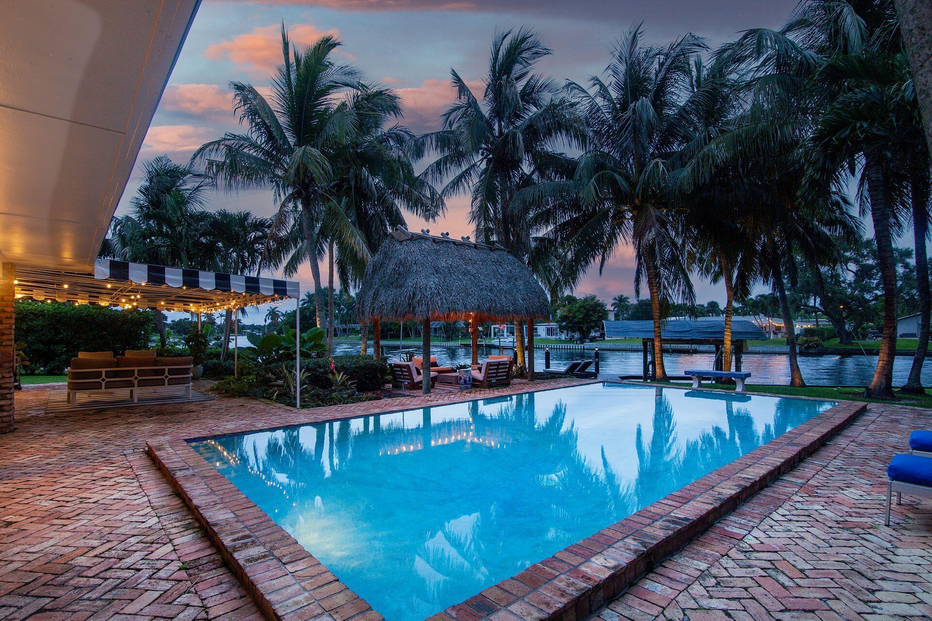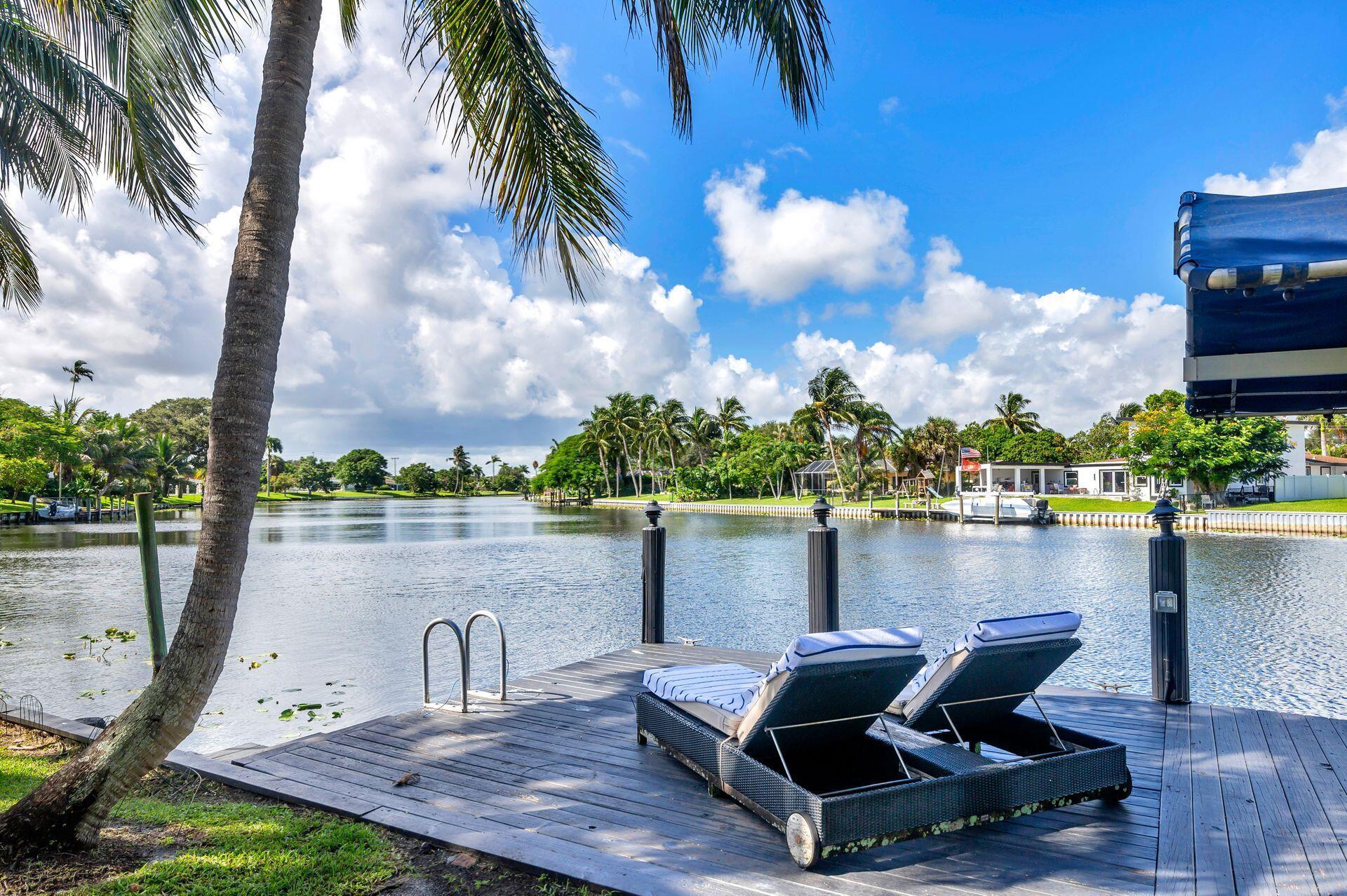 7813 PINE TREE LANE Spectacular waterfront home with a one-of-a-kind resort-style backyard! Bring your boat, jet skis or paddle board to your own piece of paradise! Ideal home for entertaining and enjoying true South Florida living. Over 120 ft of direct water frontage on the lake in Lake Clarke Shores. Oversized dock with a boathouse & boat lift, dock offers convenient steps down for those paddle boarders or canoers. Home was converted into a 2/3 but Landlord is in the process to making it back to a 3 bedroom, 3 full bath home - ready by November. Offered fully furnished or unfurnished. Primary suite with king size bed, stunning bathroom and gigantic oversized walk-in closet. The guest suite has two full-sized beds and en-suite bathroom. Full-sized summer kitchen with built-in grill.
