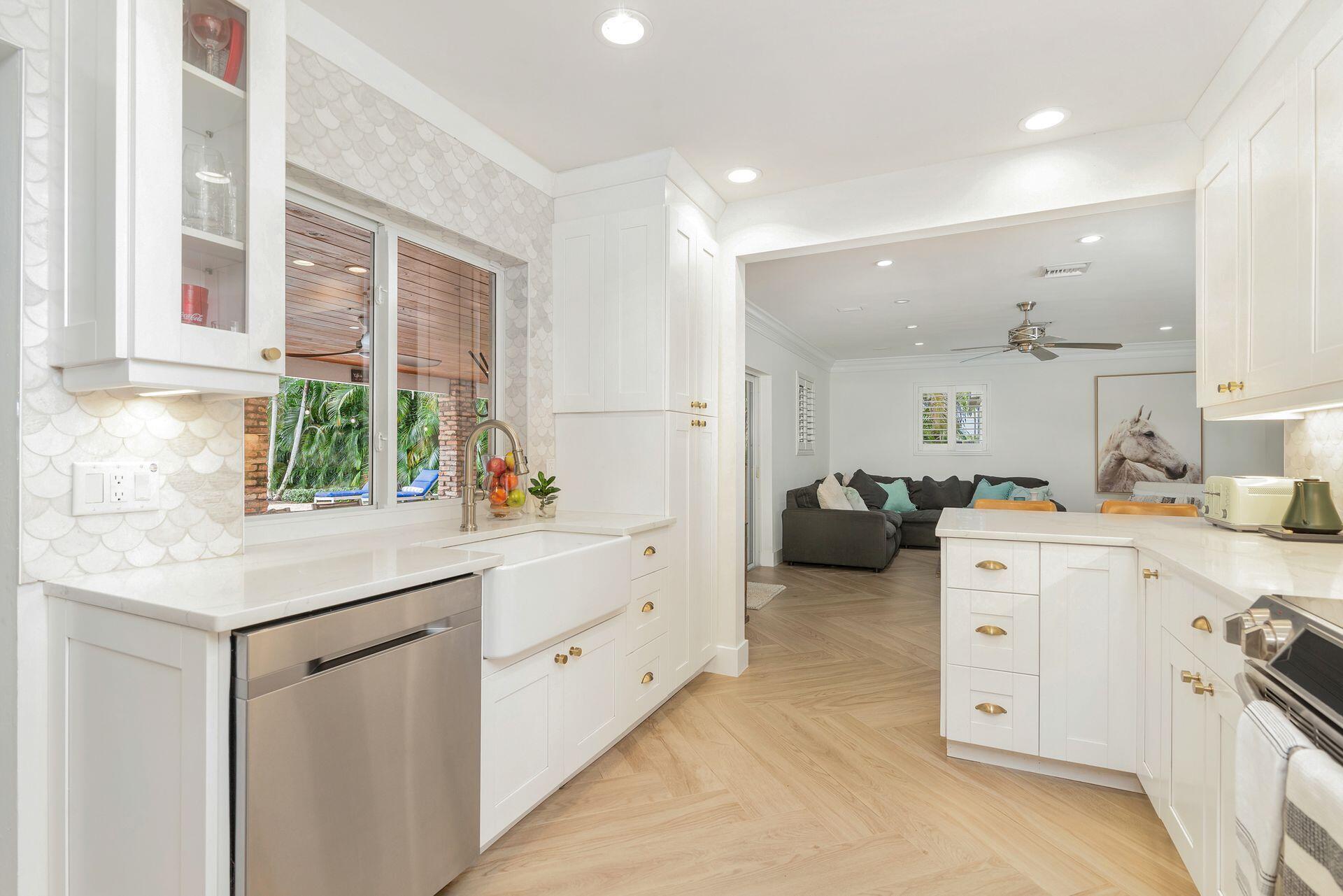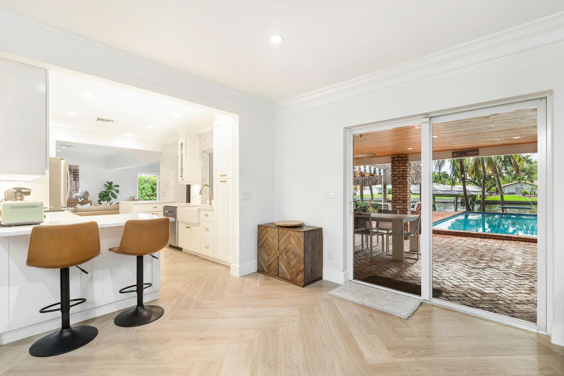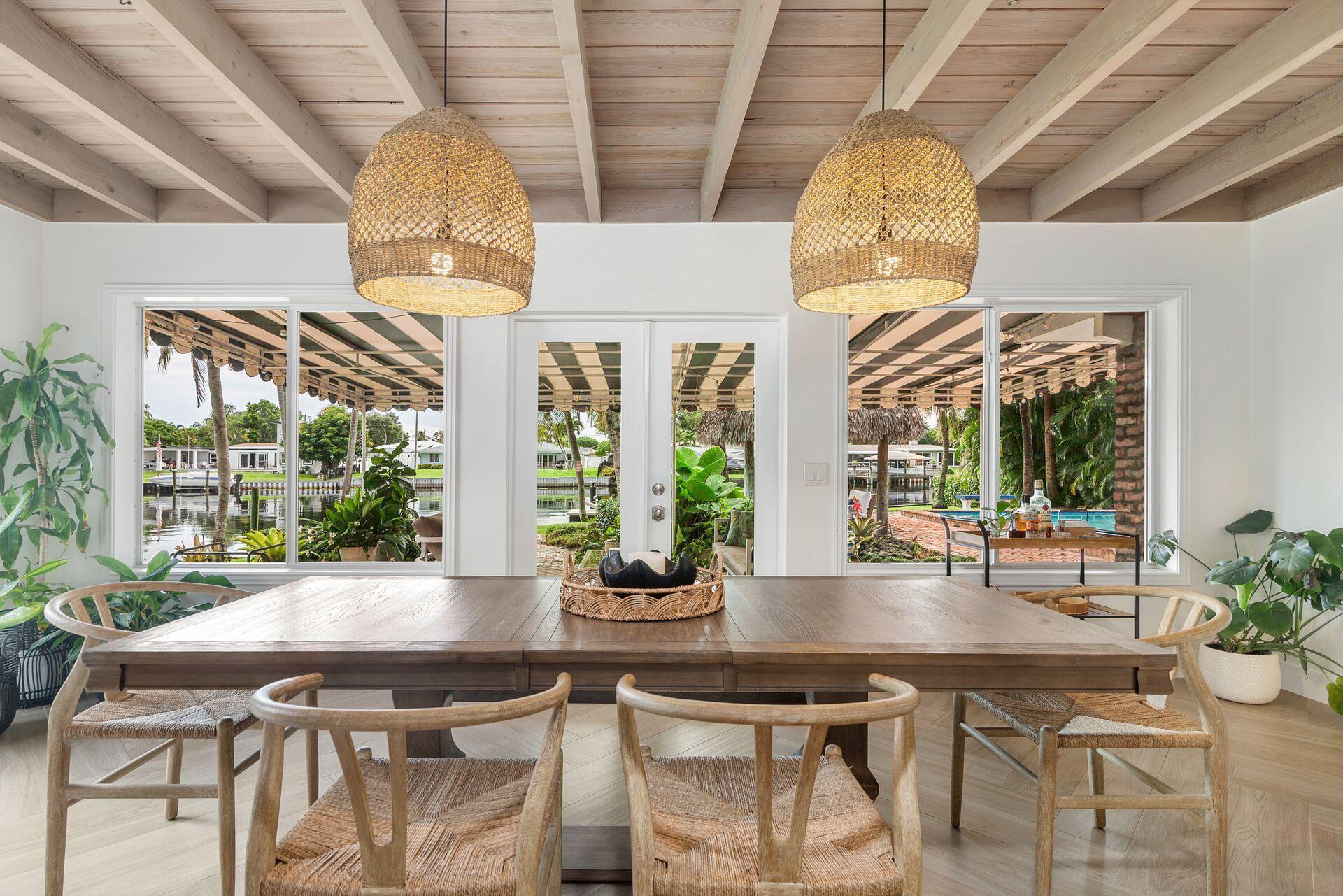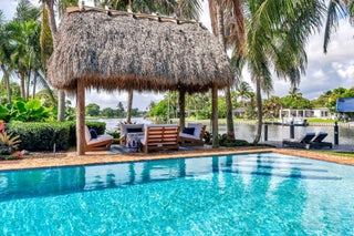 7813 PINE TREE LANE Spectacular waterfront home with a one-of-a-kind resort-style backyard! Bring your boat, jet skis or paddle board to your own piece of paradise! Ideal home for entertaining and enjoying true South Florida living. Over 120 ft of direct water frontage on the lake in Lake Clarke Shores. Oversized dock with a boathouse & boat lift, dock offers convenient steps down for those paddle boarders or canoers. Home was converted into a 2/3 but Landlord is in the process to making it back to a 3 bedroom, 3 full bath home - ready by November. Offered fully furnished or unfurnished. Primary suite with king size bed, stunning bathroom and gigantic oversized walk-in closet. The guest suite has two full-sized beds and en-suite bathroom. Full-sized summer kitchen with built-in grill.