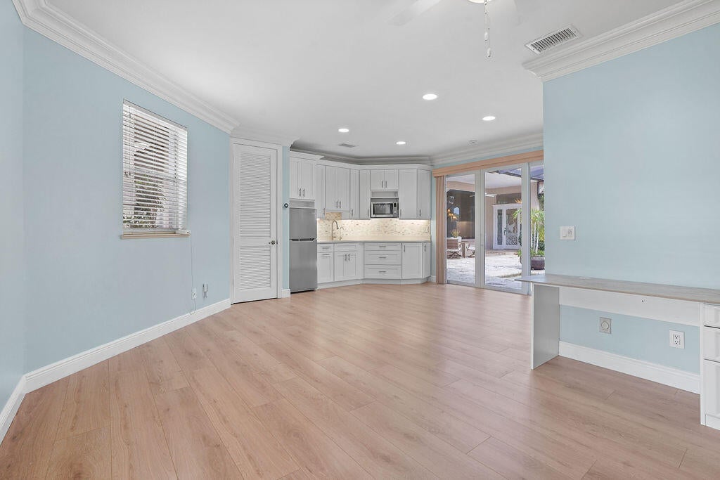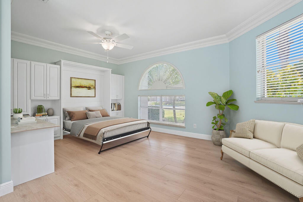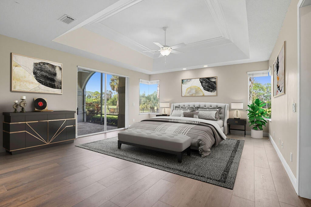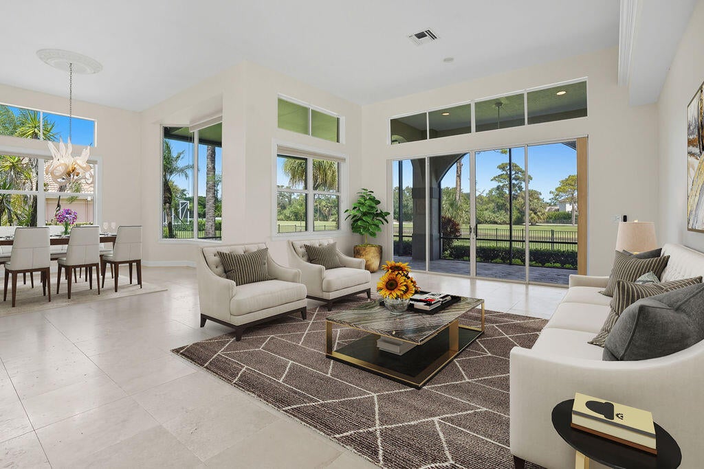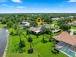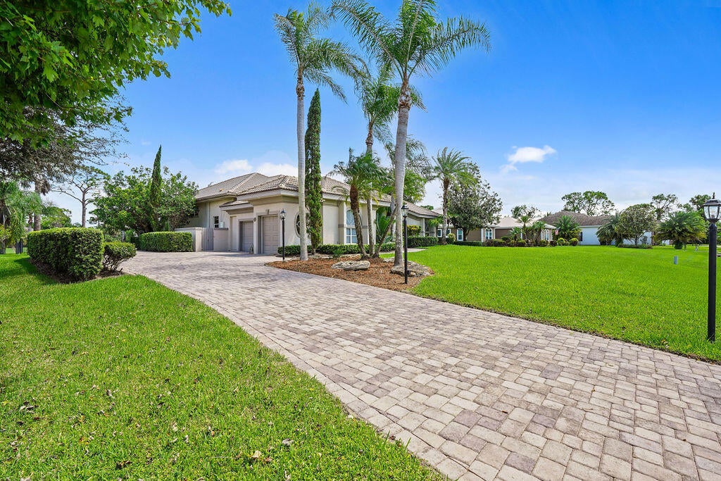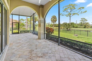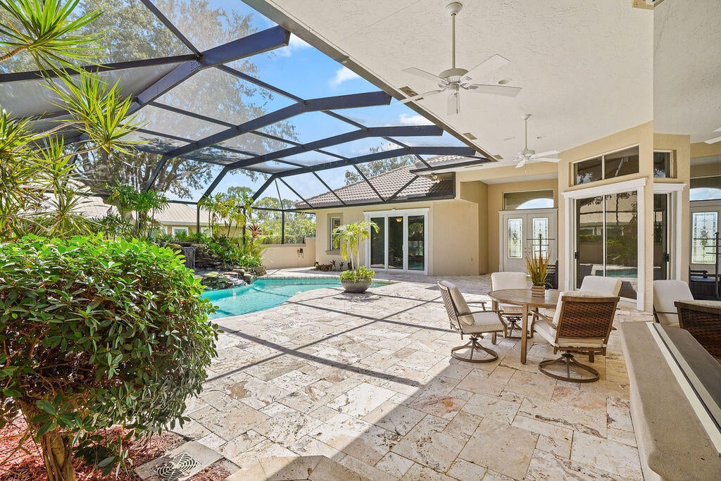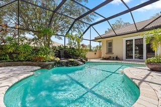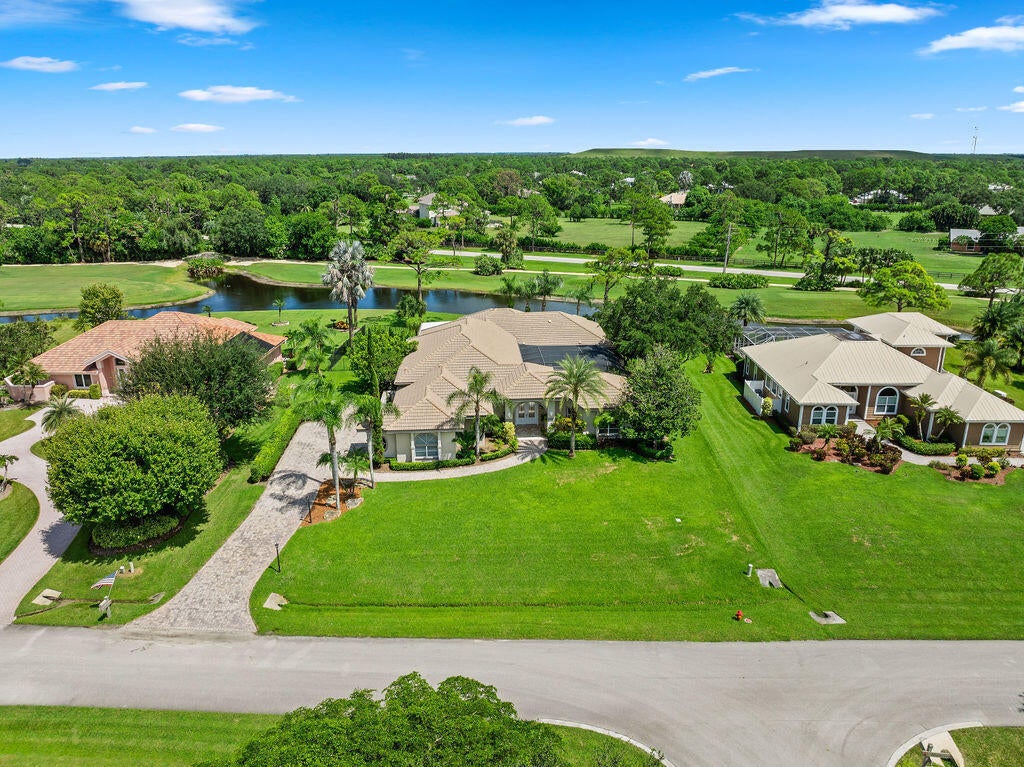 Welcome to 10255 SW Stones Throw Terrace, an exceptional residence located in the highly sought-after gated golf community of Cobblestone in Palm City. This expansive courtyard pool home is designed for both elegance and versatility, offering a 2 bedroom, 2.5 bath main house along with a fully renovated guest house featuring its own bathroom and kitchenette.At the heart of the home is a freeform heated pool with a screened enclosure, perfect for entertaining or enjoying peaceful Florida evenings. A separate screened lanai extends the living space and provides sweeping views of the 8th hole, tranquil lake, and golf course, where you can often spot native wildlife from birds to deer. Inside, the main residence boasts an expansive floor plan with volume ceilings, large butted windows allowtons of natural light, tile flooring throughout living areas, and wood floors and vinyl planking in the sitting/tv room in the primary second bedroom and pool house. Carefully curated upgrades include custom light fixtures, crown molding, and an air-conditioned storage/craft room. The guest retreat is thoughtfully updtaed with custom built-in cabinets, a Murphy bed, a sleek new kitchenette equipped with a micro/air fryer/convection oven, two-burner induction cooktop, and apartment-size refrigeratorall overlooking the sparkling pool. This home is as practical as it is beautiful, featuring: Whole-house generator 500-gallon propane tank Gas stove, oven and dryer Tankless water heater 3-zone A/C system Seven-zone sprinkler system New pool pump New attic insulation through the entire house New electrical panels and sub panels (2023) Full house water softener R/O for fridge line, drinking water and guest house Nest Thermostat Blending privacy, comfort, and resort-style living, this Cobblestone estate is the perfect place to call home. Golf and social memberships available.
